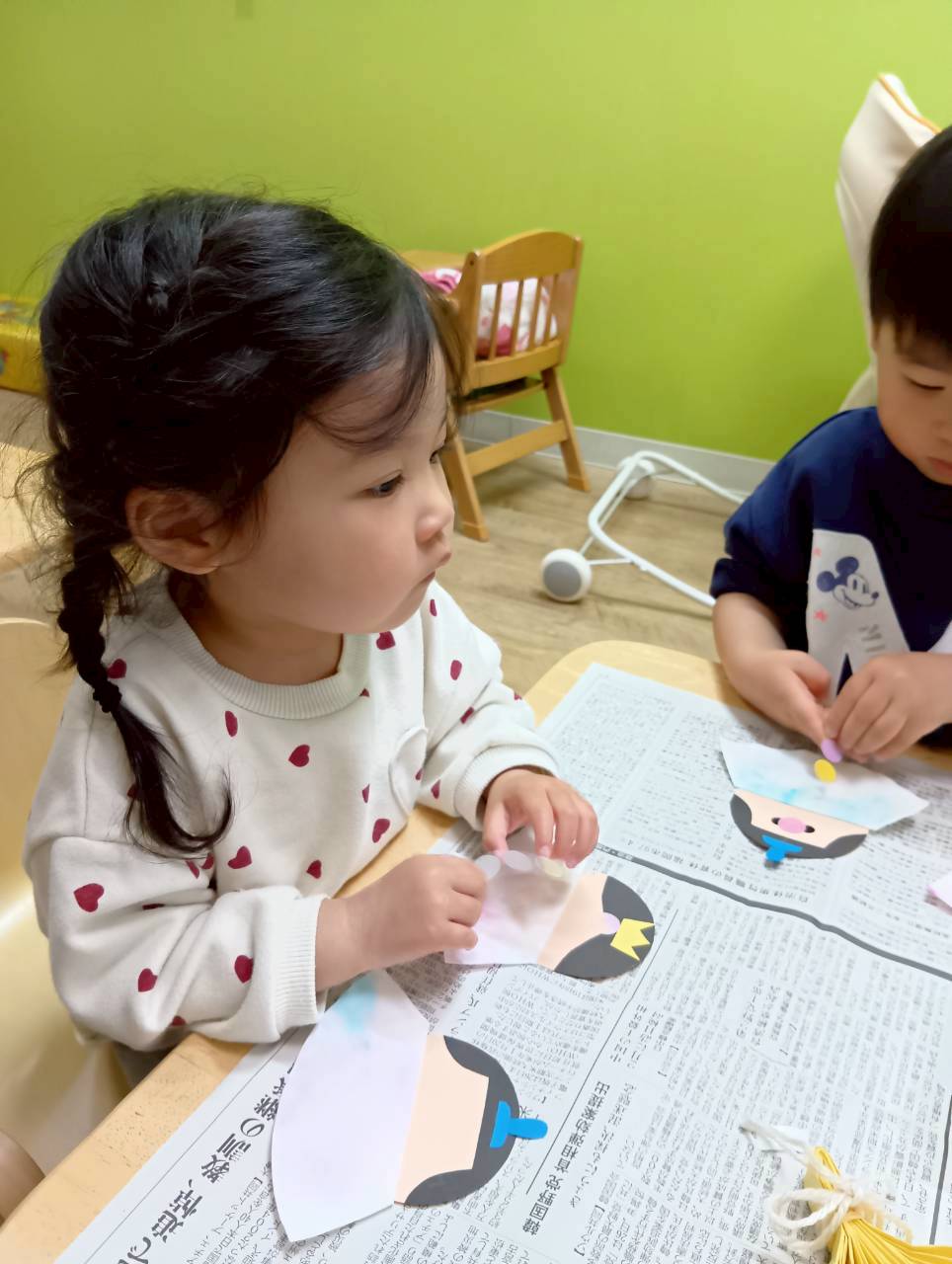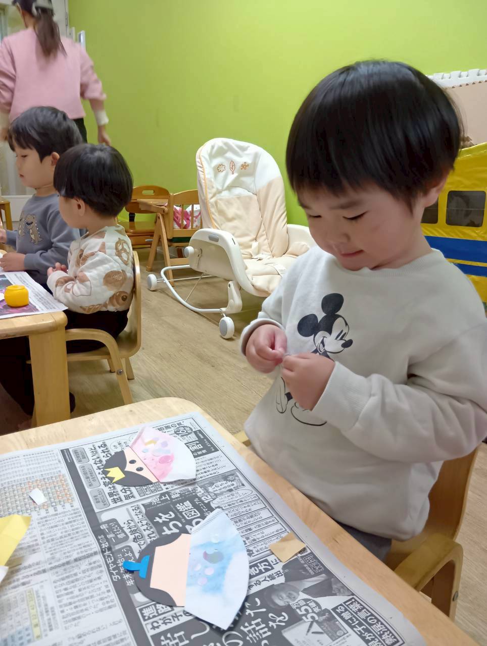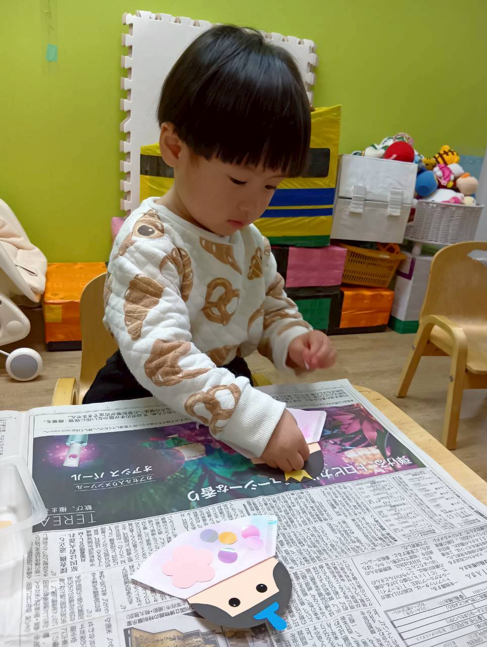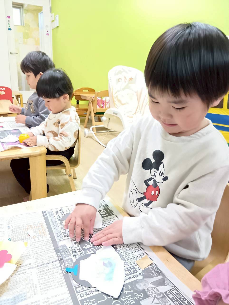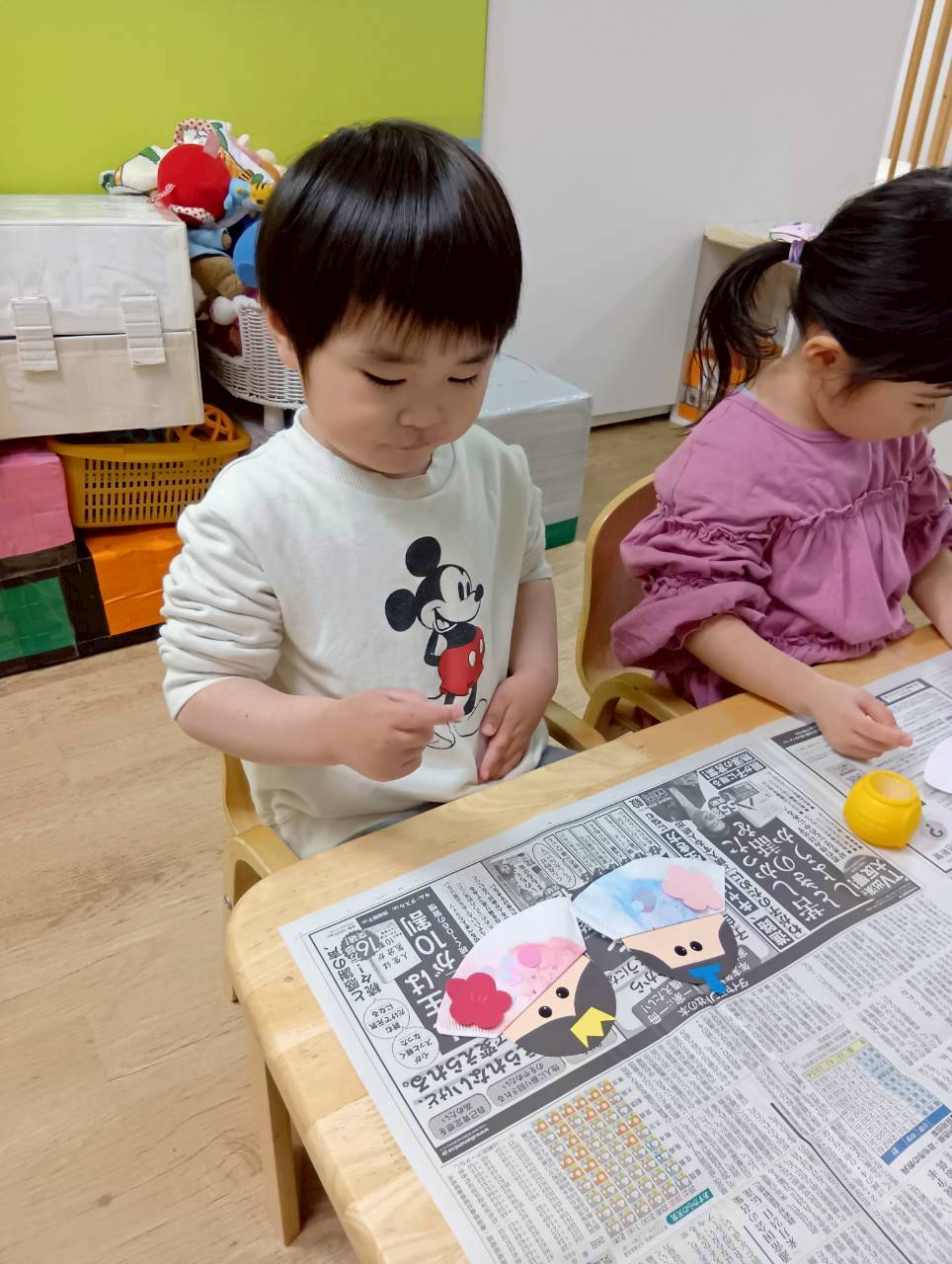 2歳児さんは糊貼りにもチャレンジしましたよ⭐