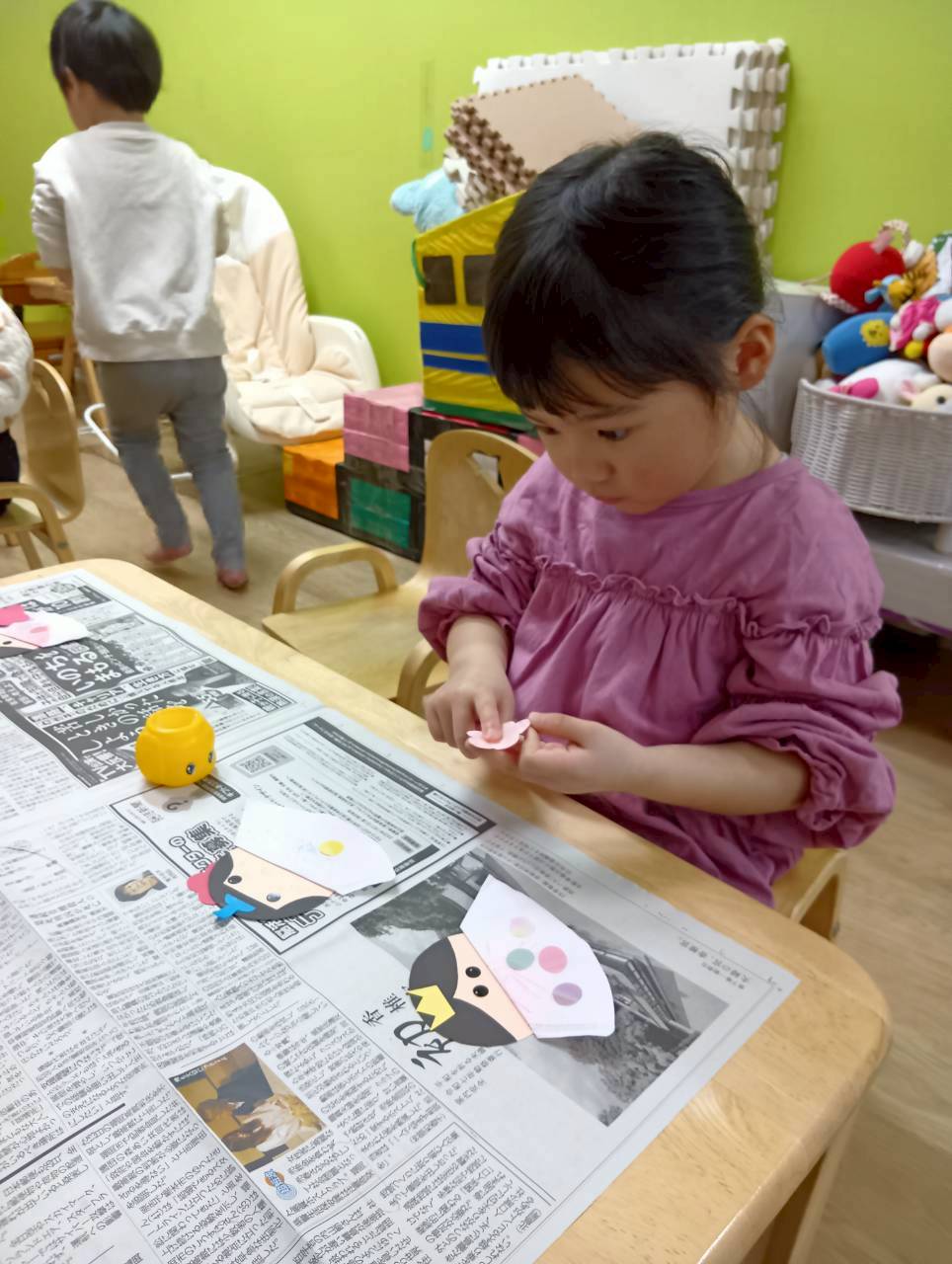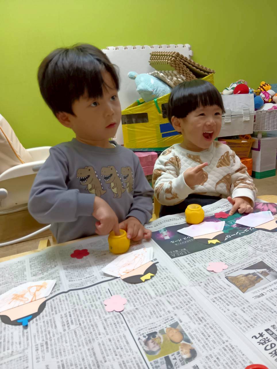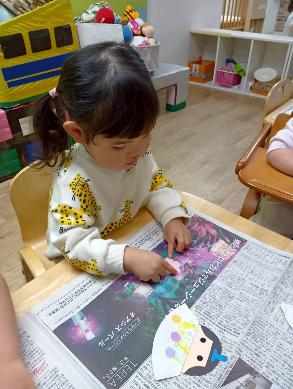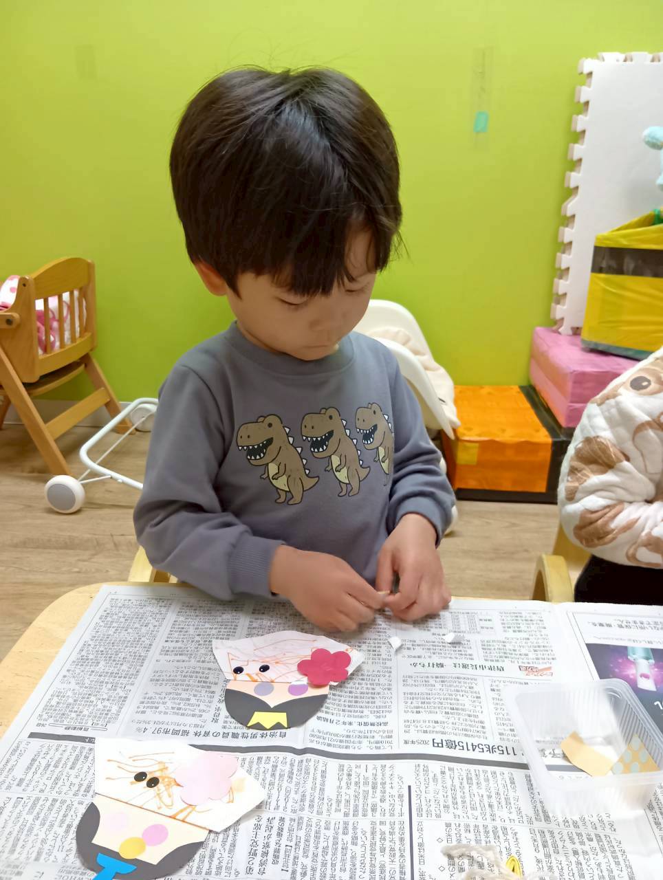 2歳児さんは糊貼りにもチャレンジしましたよ⭐