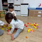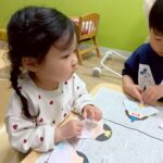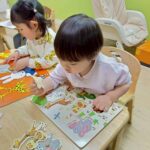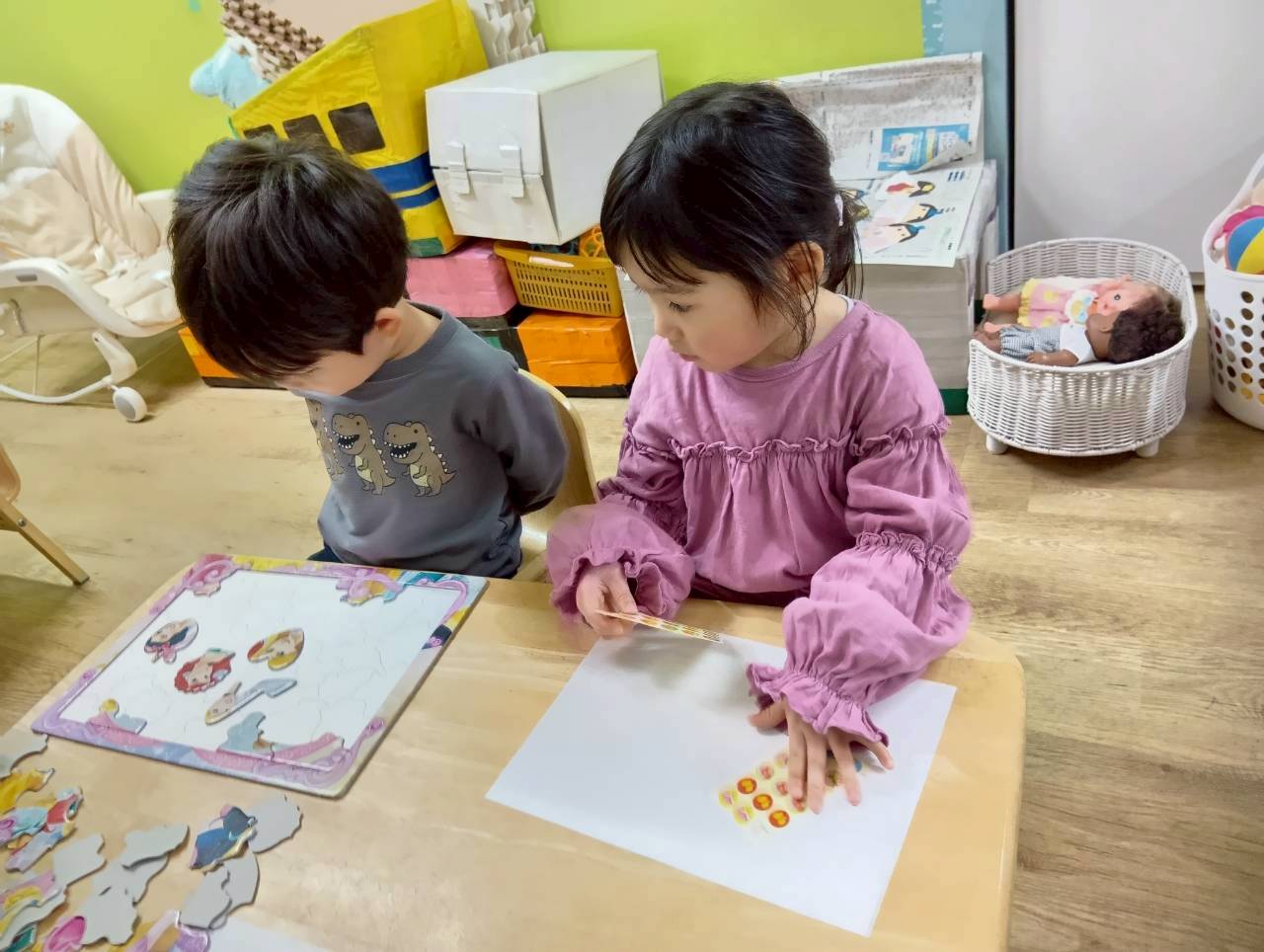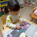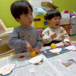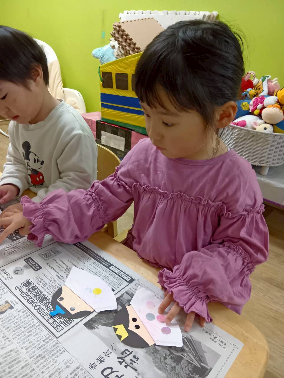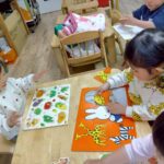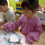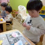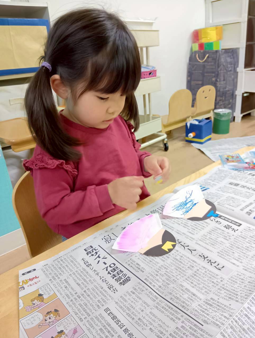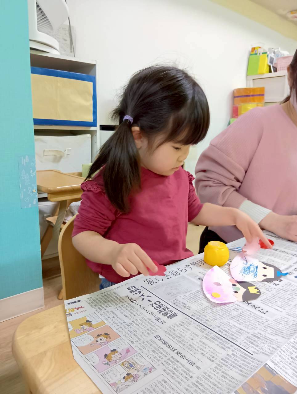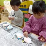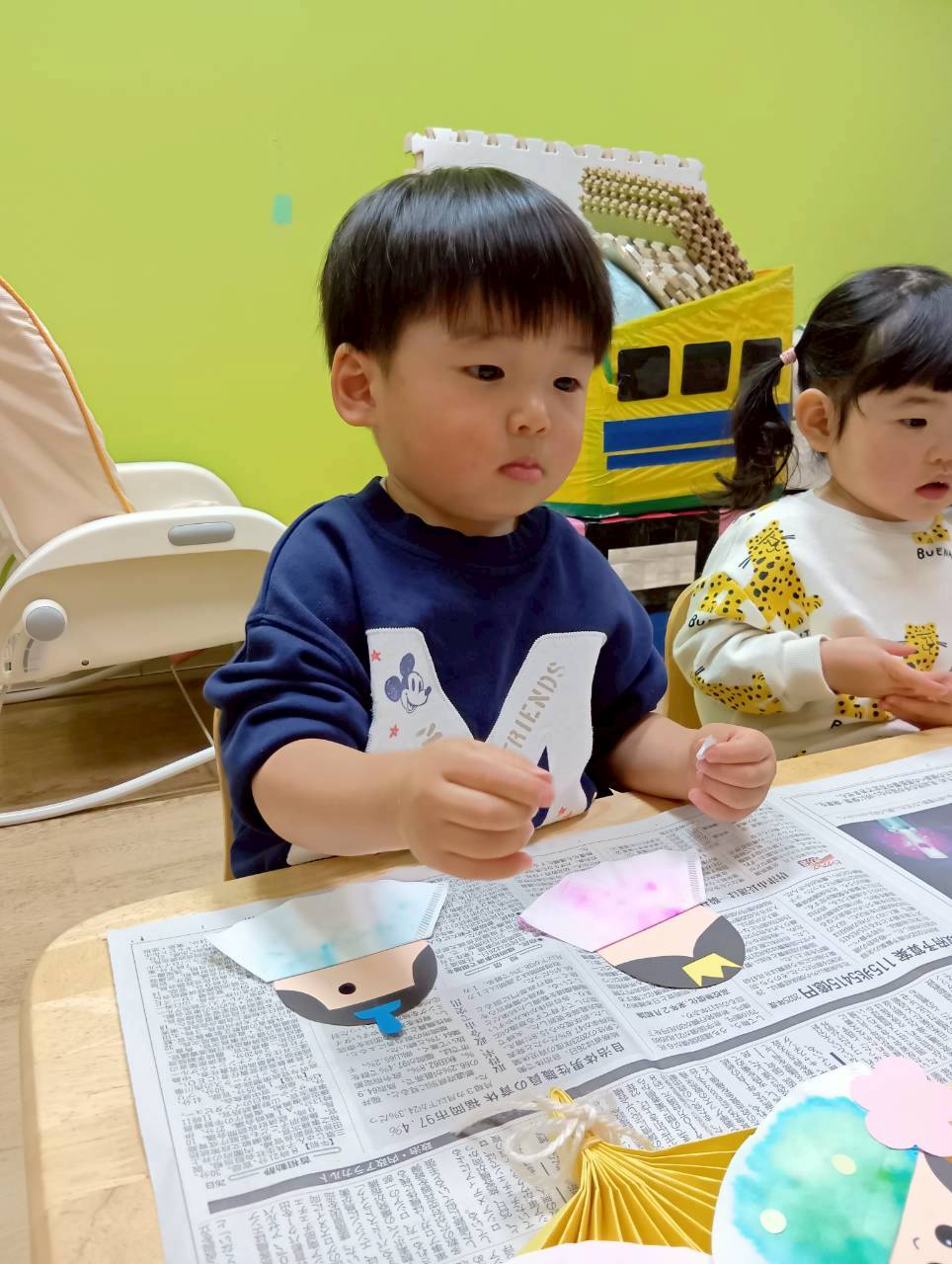 2歳児さんは糊貼りにもチャレンジしましたよ⭐
