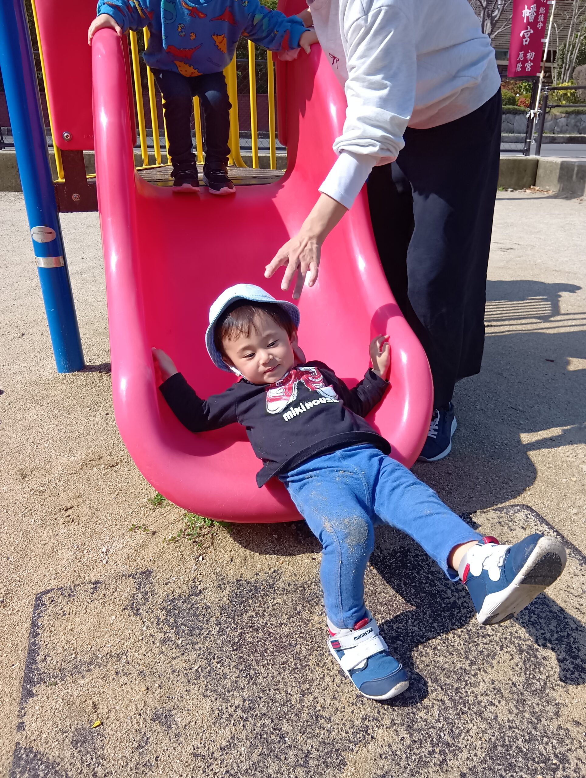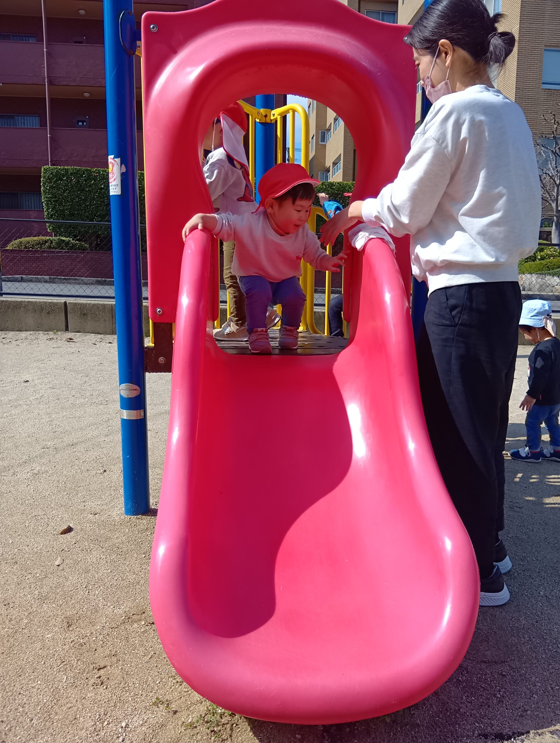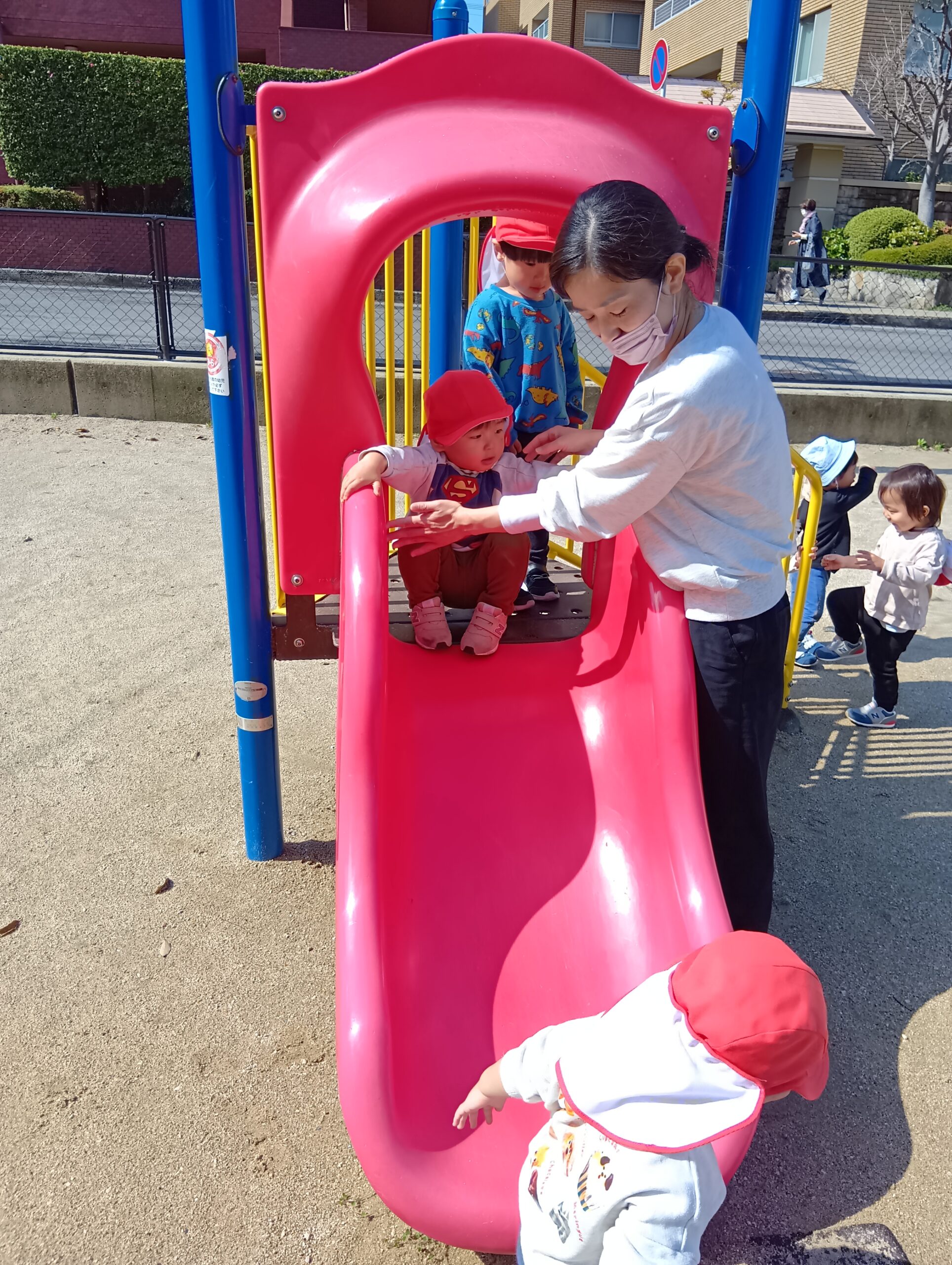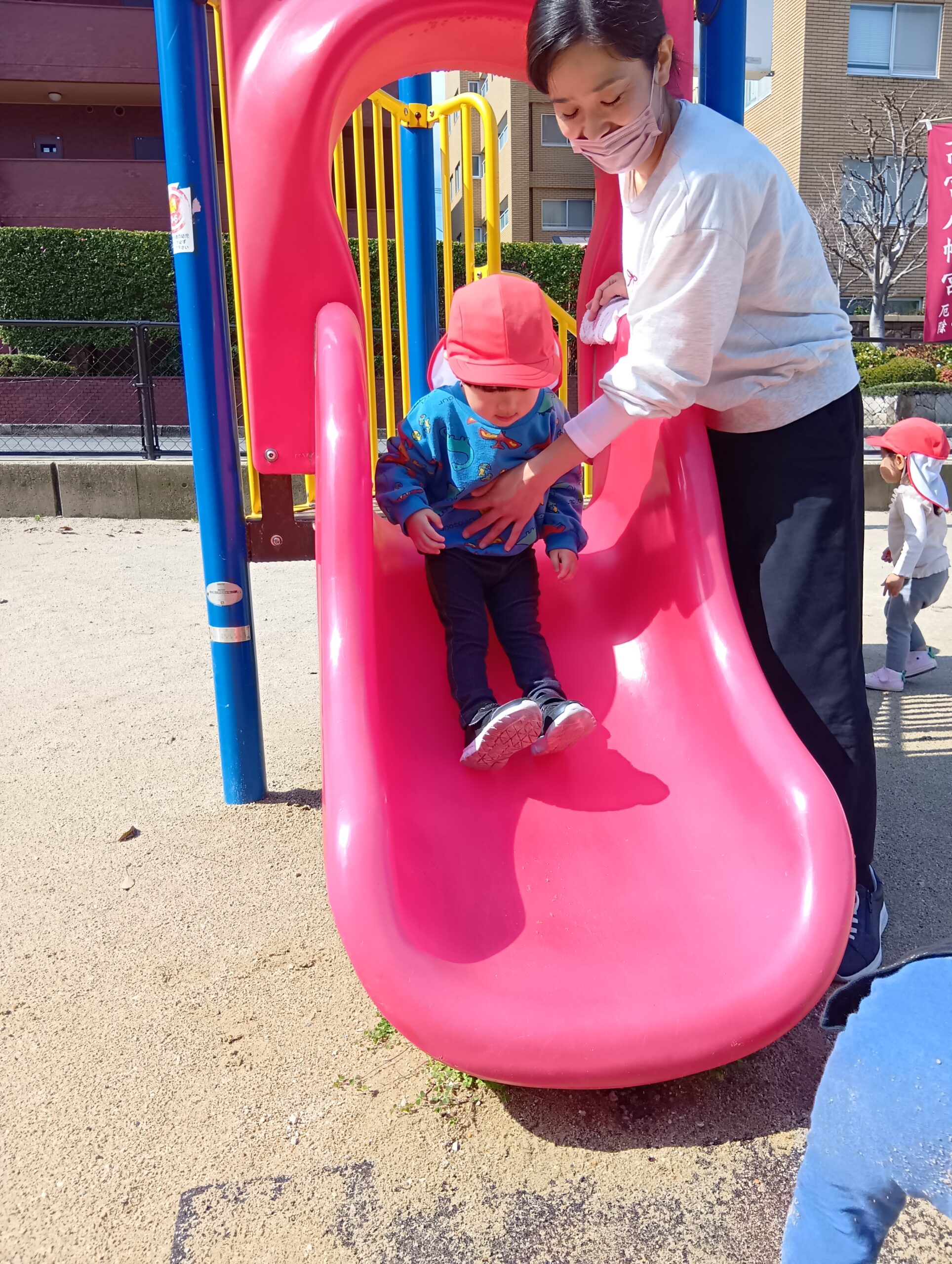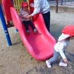 今日は、いつもより気温も高く、子ども達は「あついね〜」と言いながら少し汗ばみながら元気いっぱいに体を動かして遊んでいた子ども達でした❣️