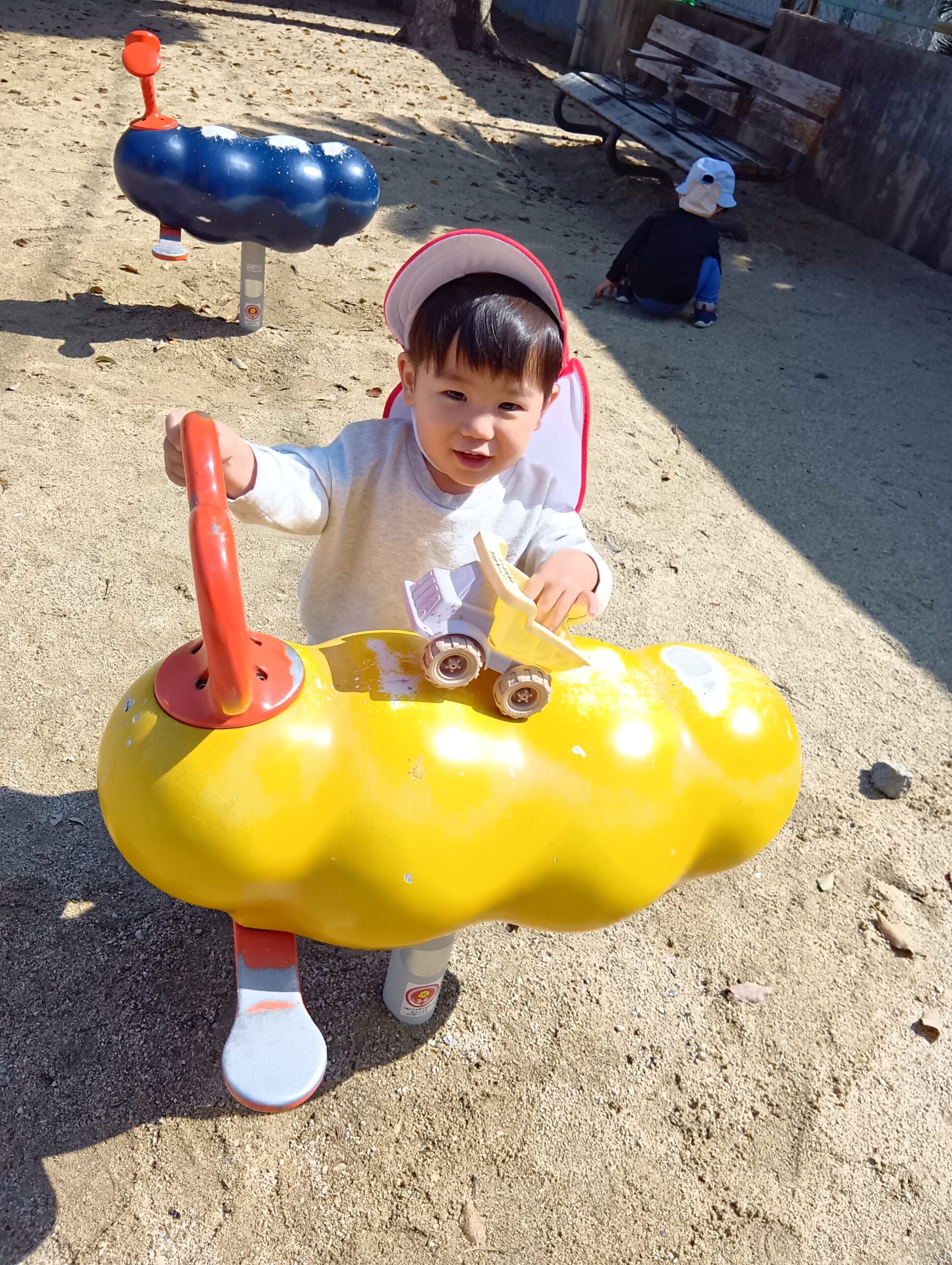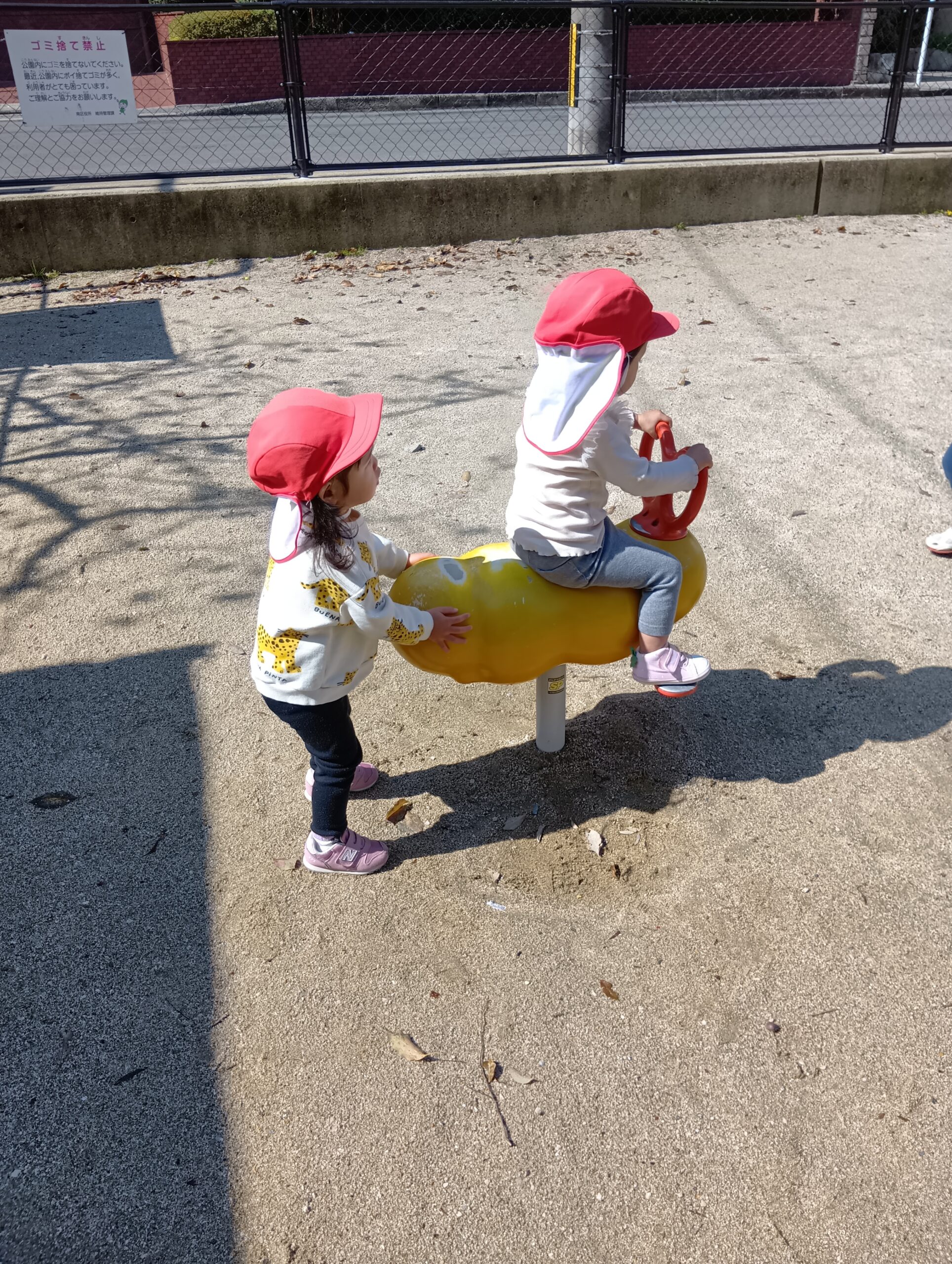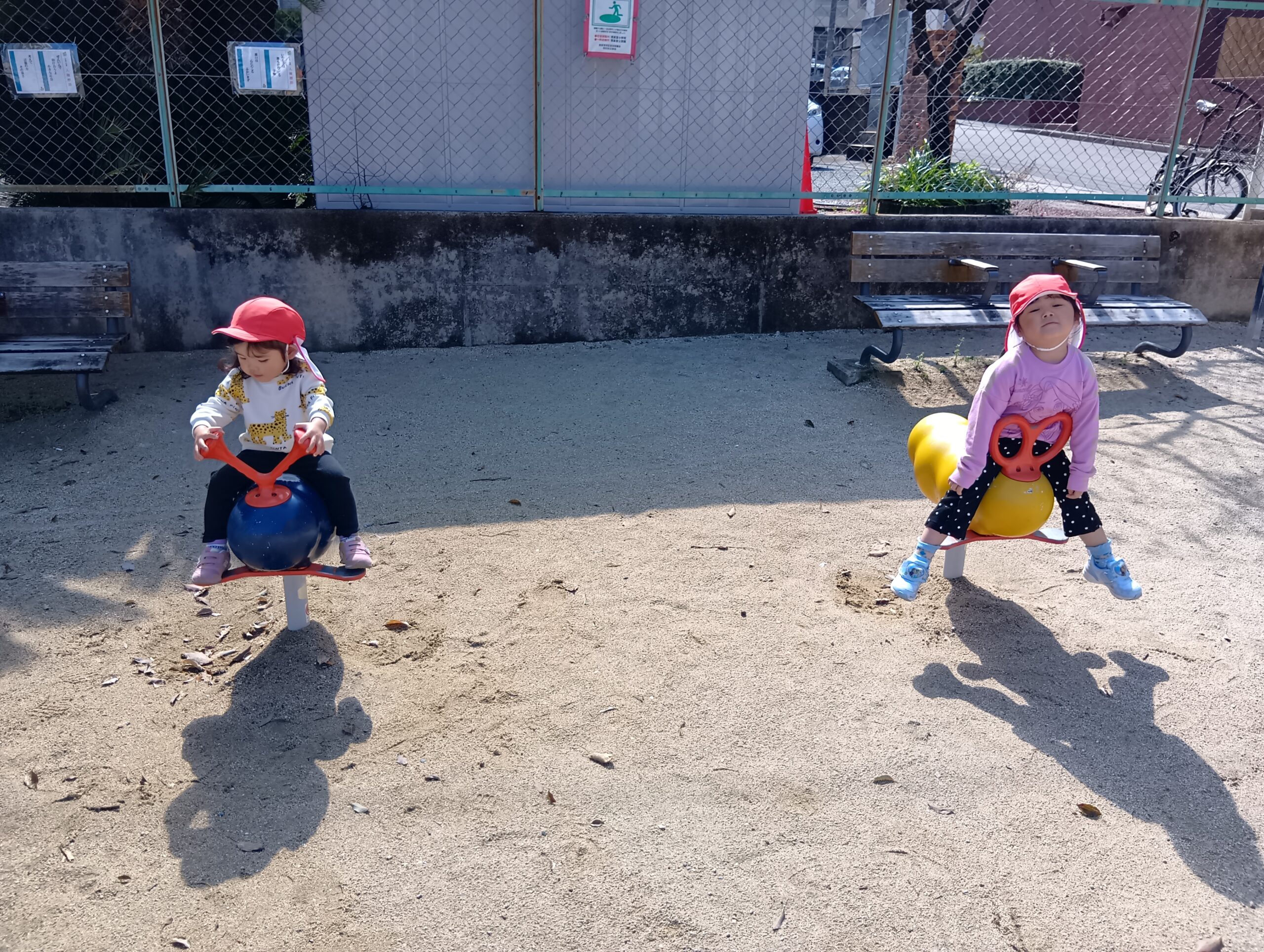 公園では、砂場やすべり台、ゆらゆら揺れる遊具に乗り楽しみました❣️