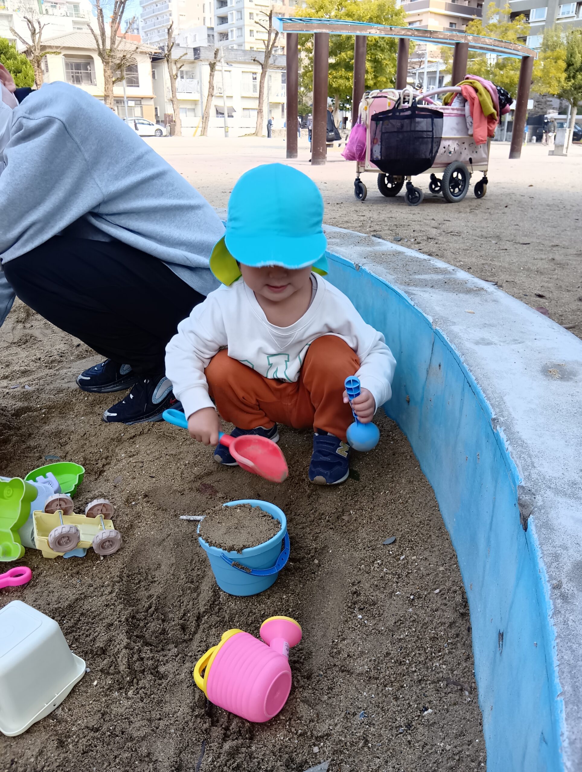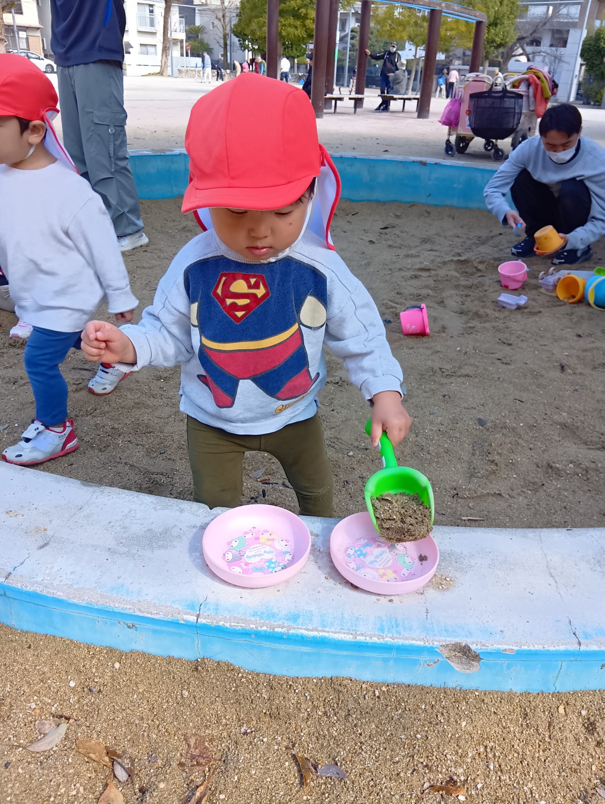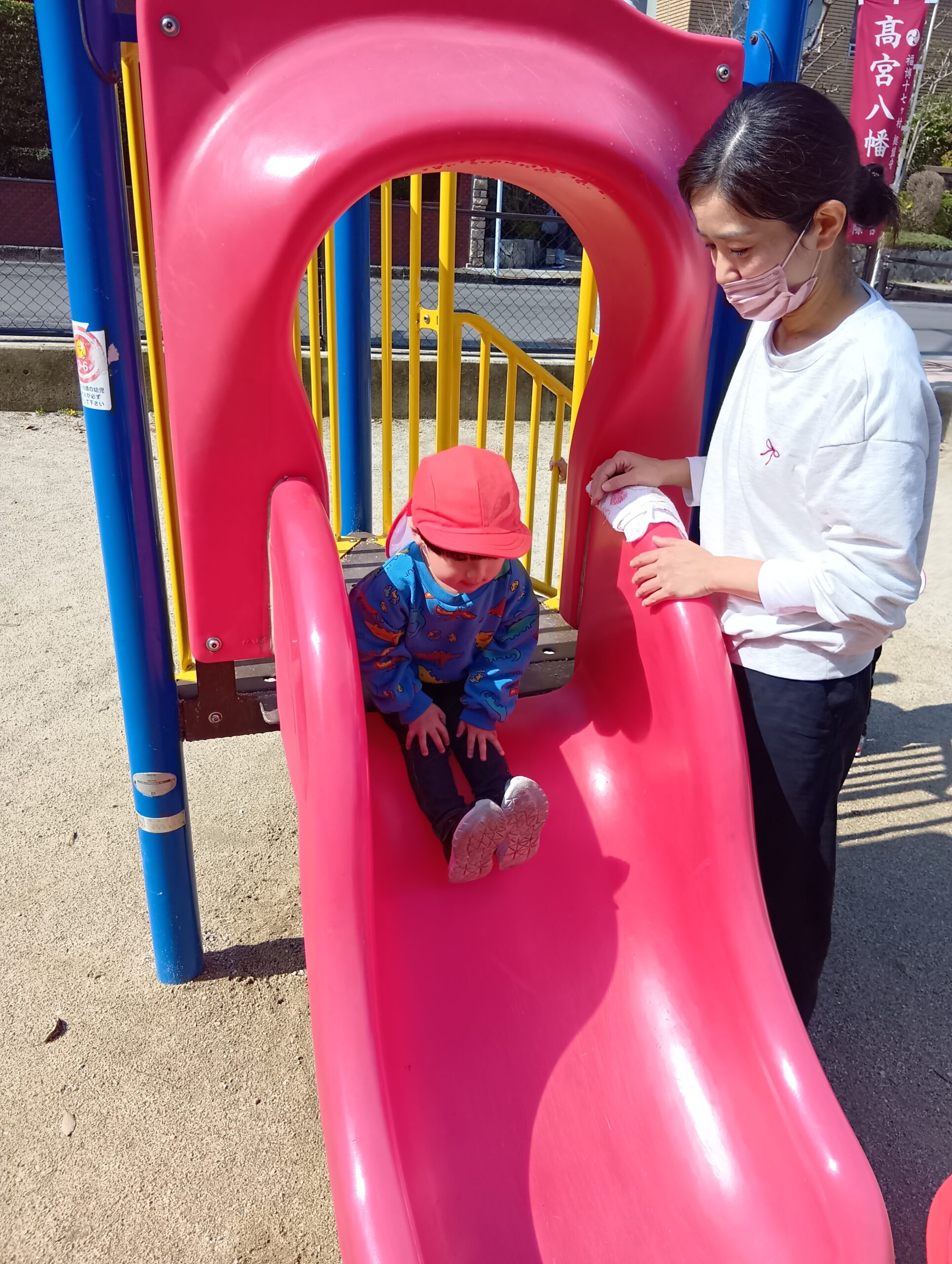 公園では、砂場やすべり台、ゆらゆら揺れる遊具に乗り楽しみました❣️