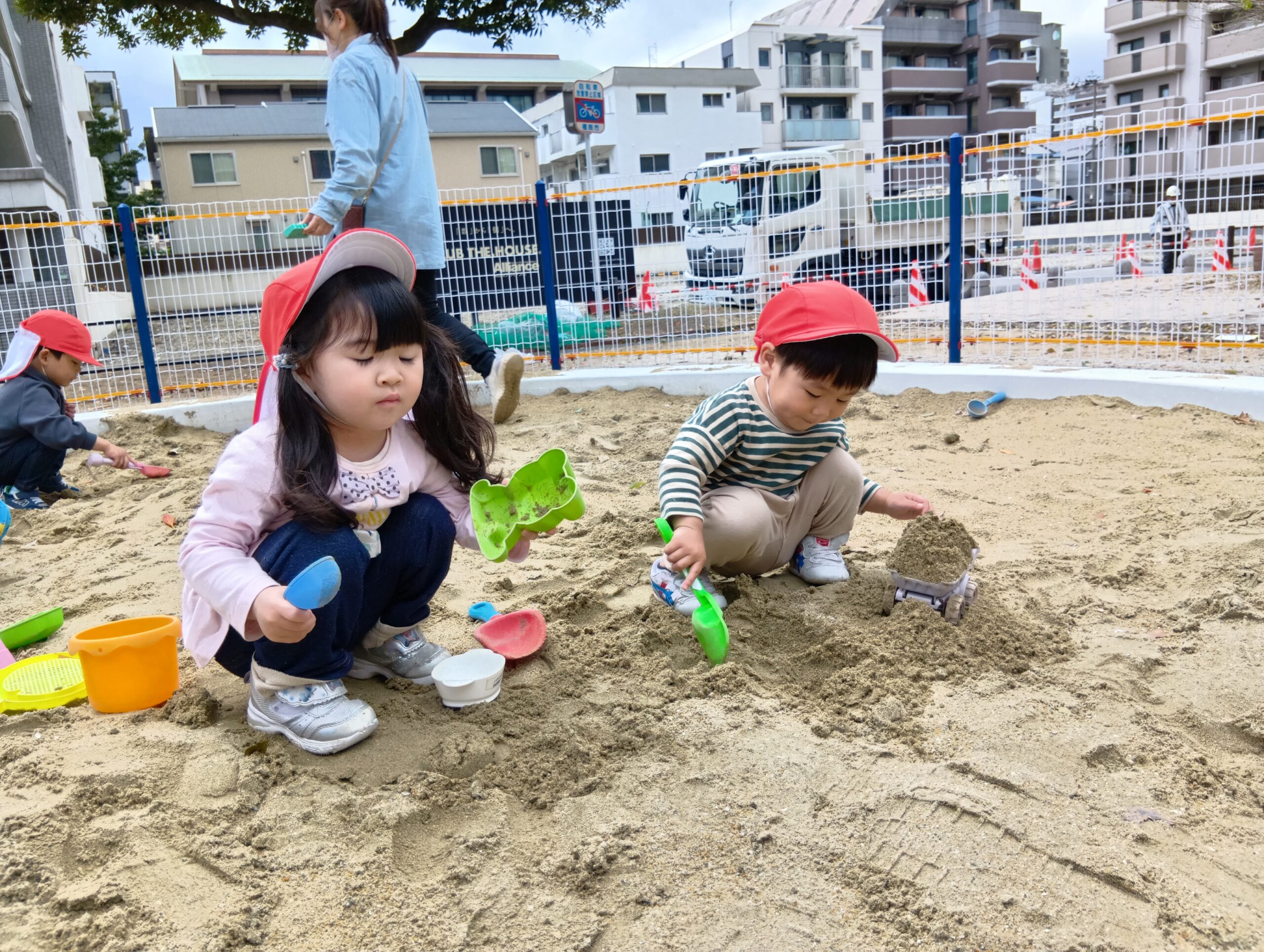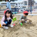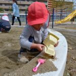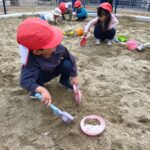 保育士と一緒にお山を作ったり、型取りをしたりして楽しんでいた子ども達です❣️