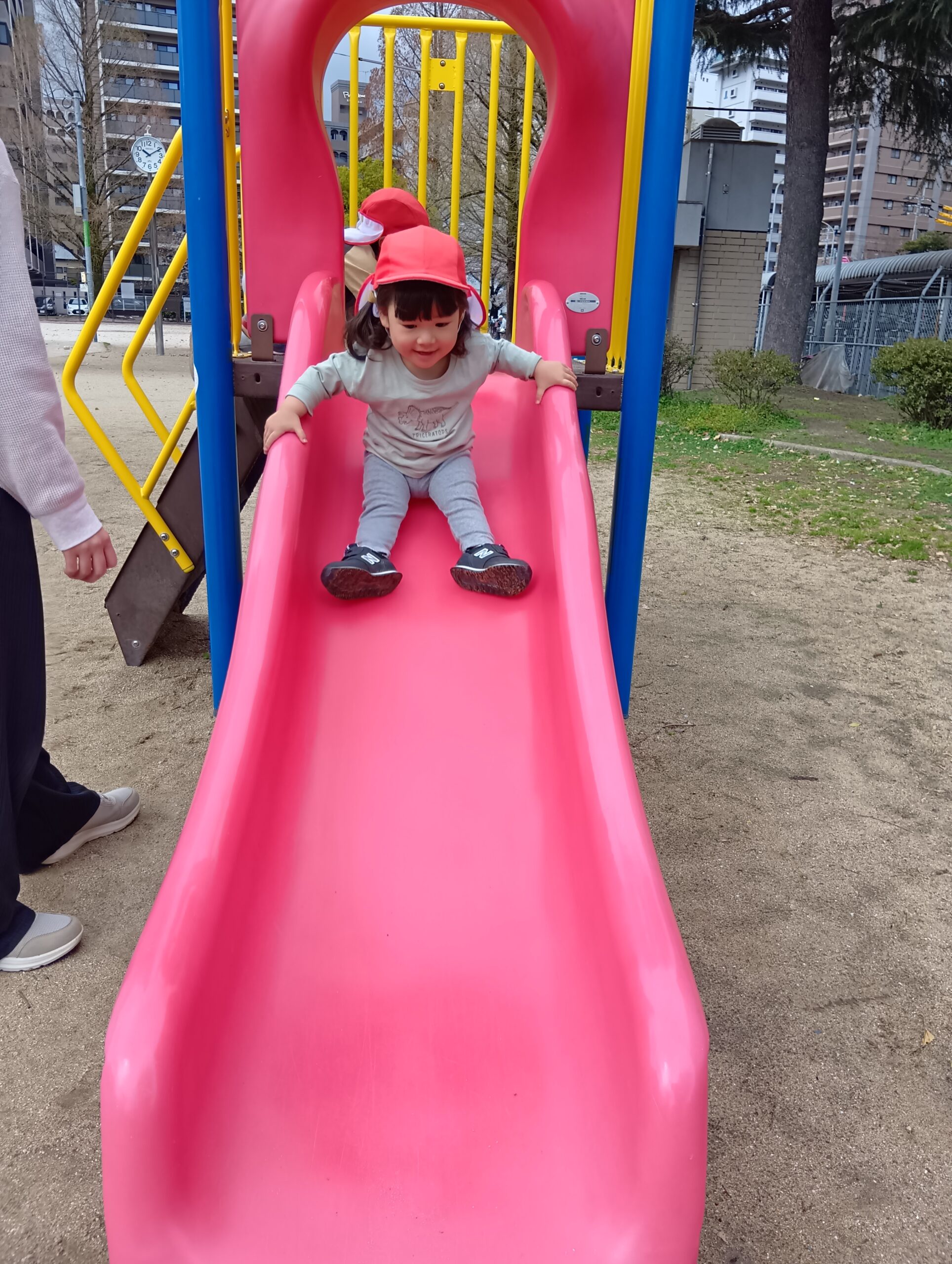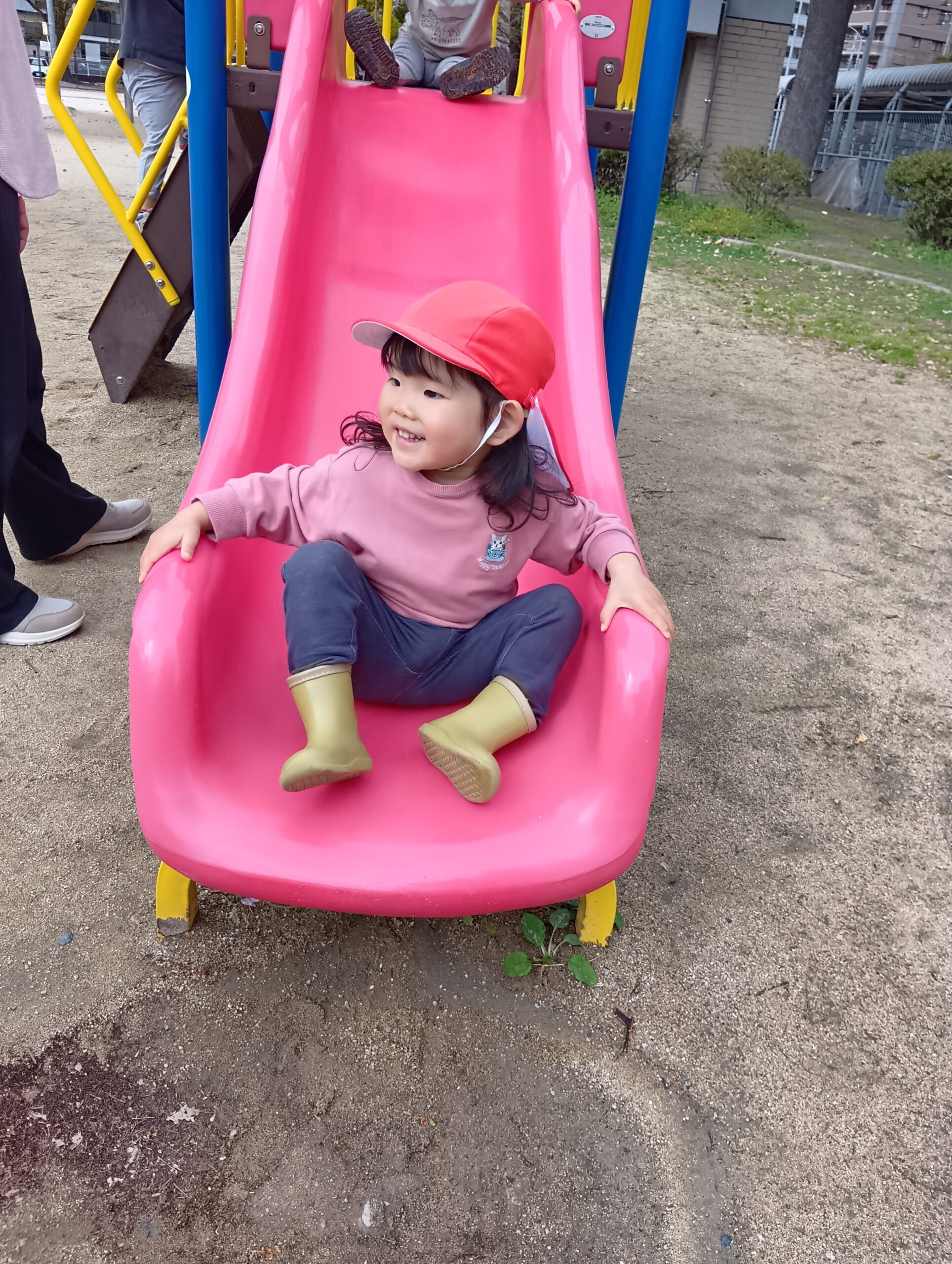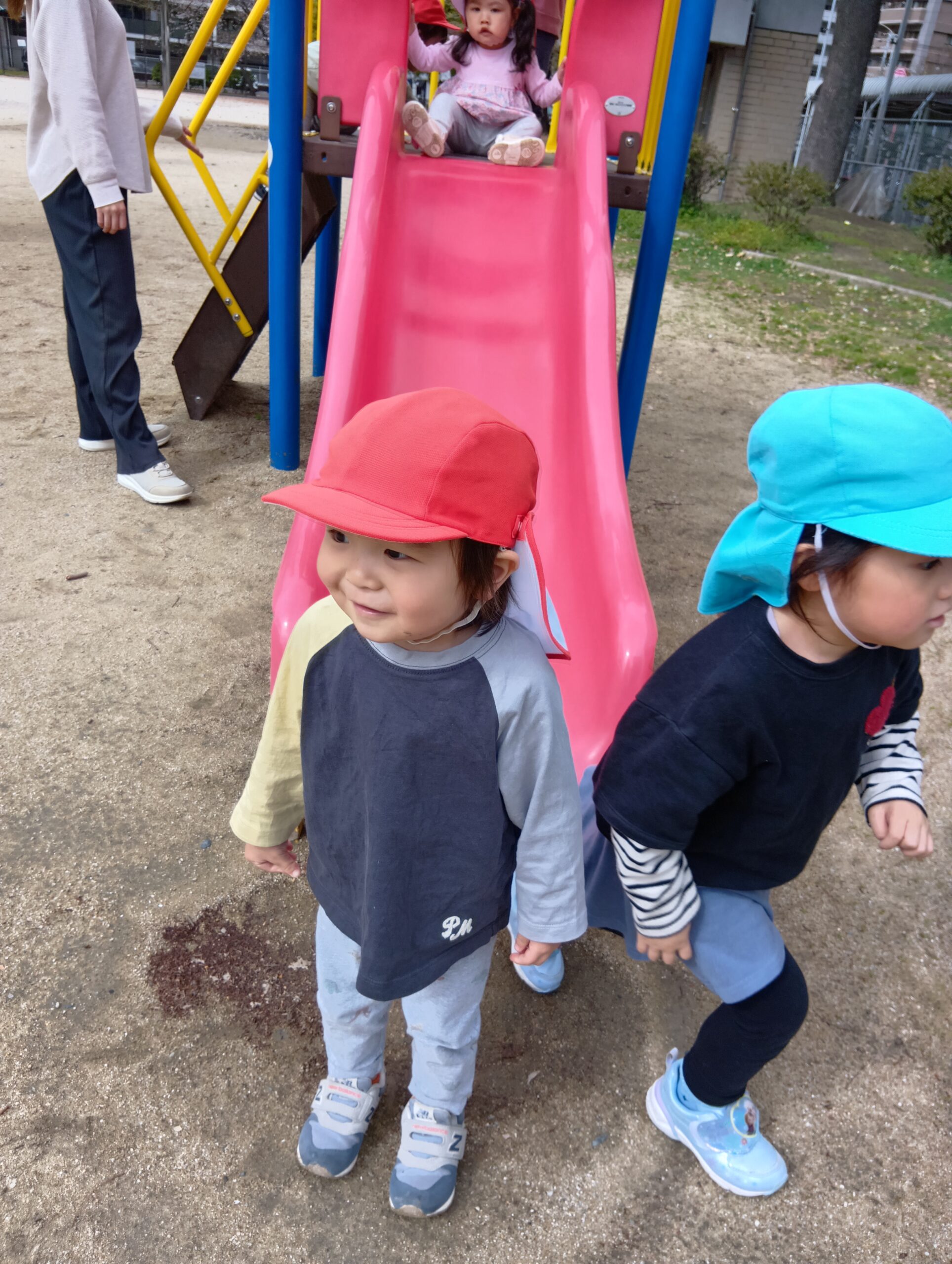 すべり台の一番上から「やっほ〜!」と手を振ったり、「楽しいね!」と友達同士で会話する姿も見られました☺️