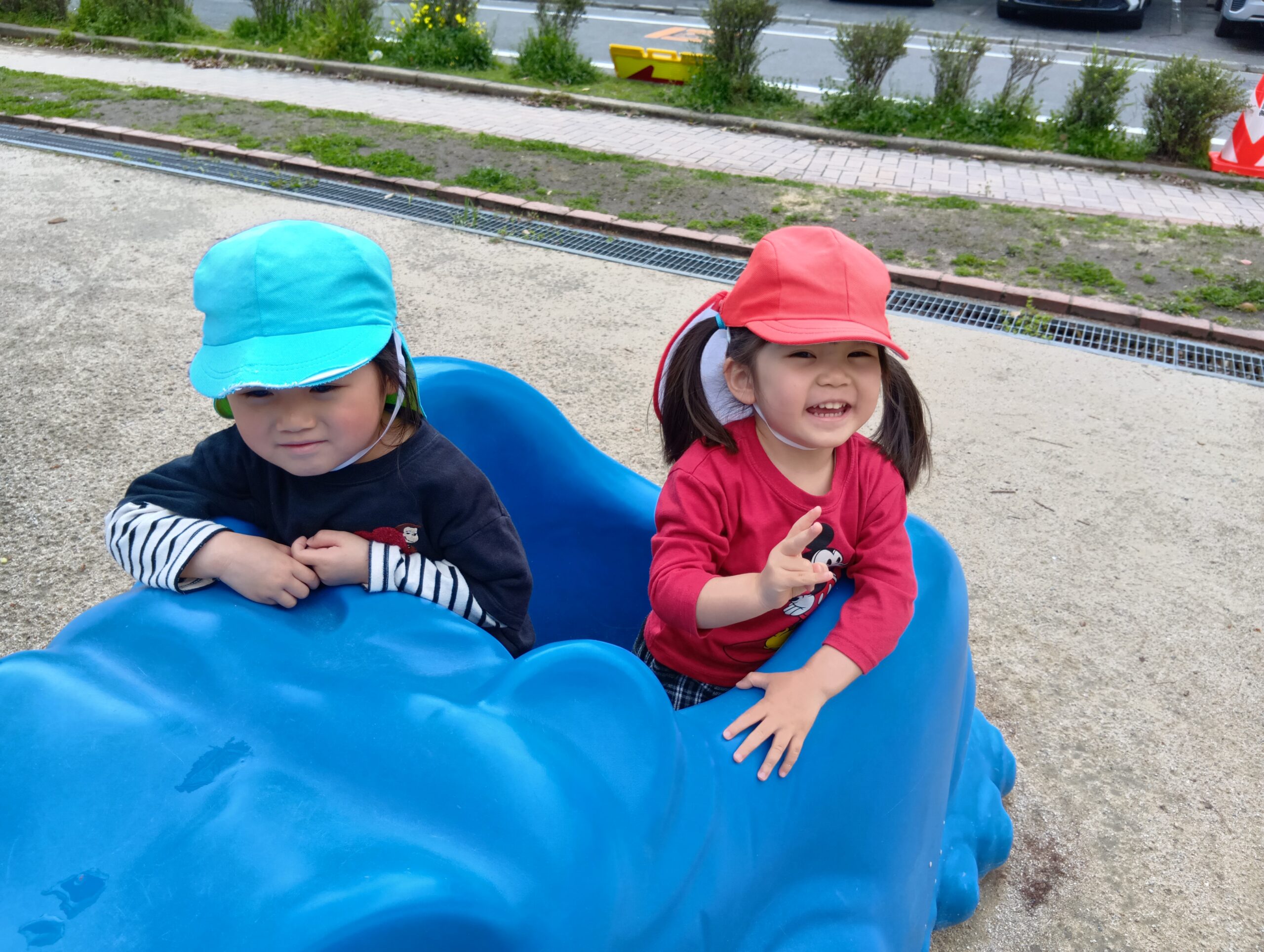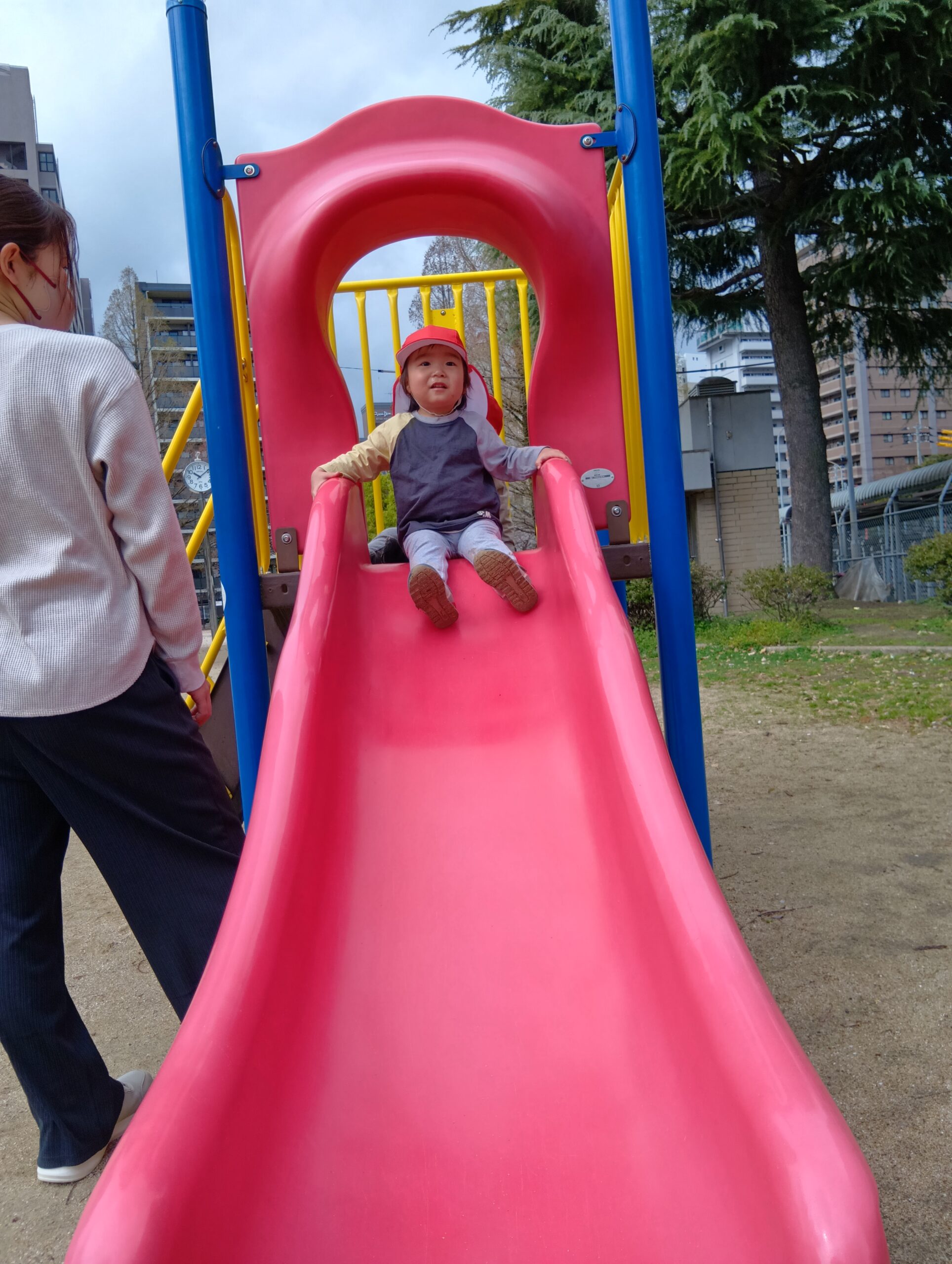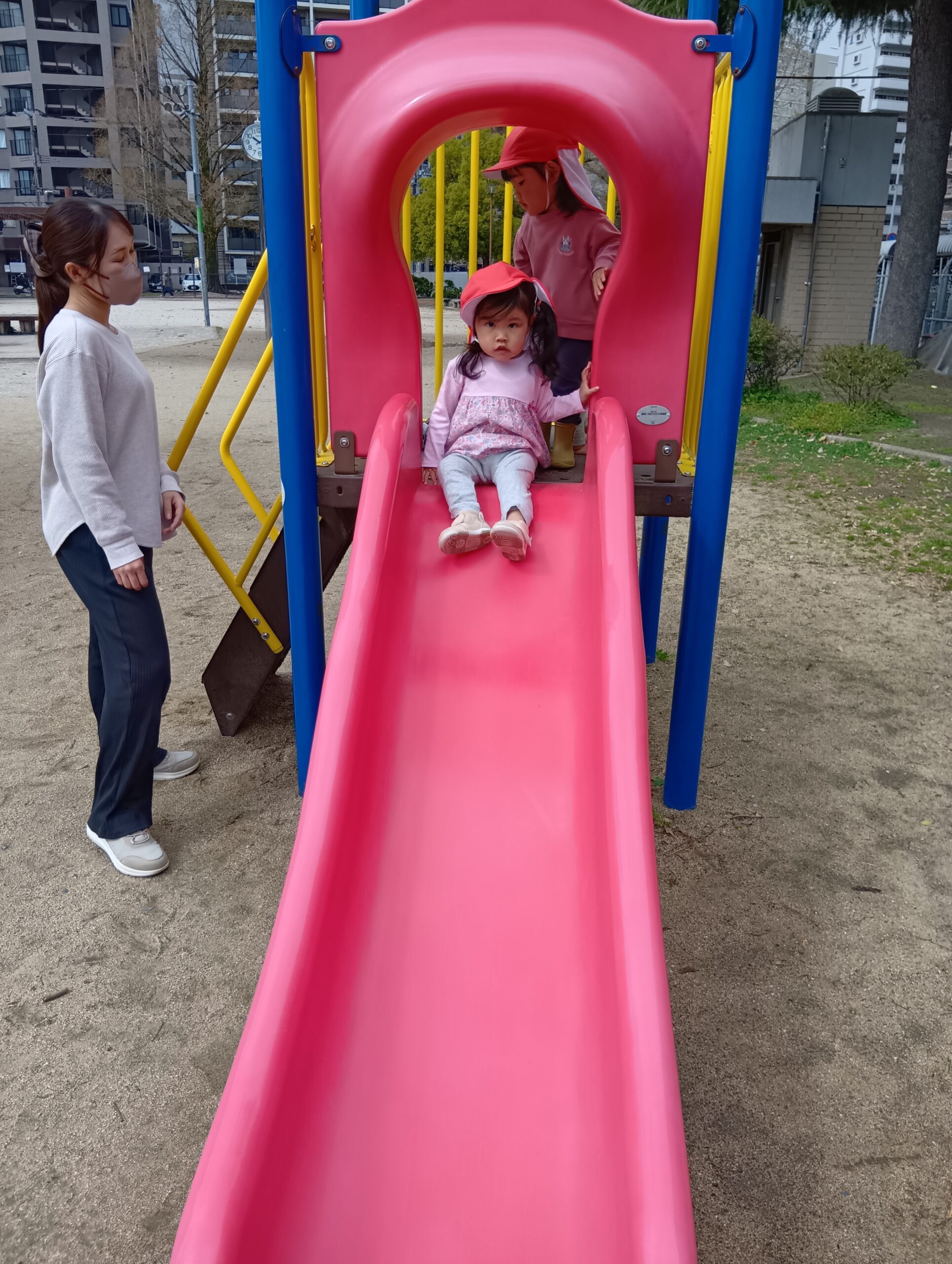 すべり台の一番上から「やっほ〜!」と手を振ったり、「楽しいね!」と友達同士で会話する姿も見られました☺️