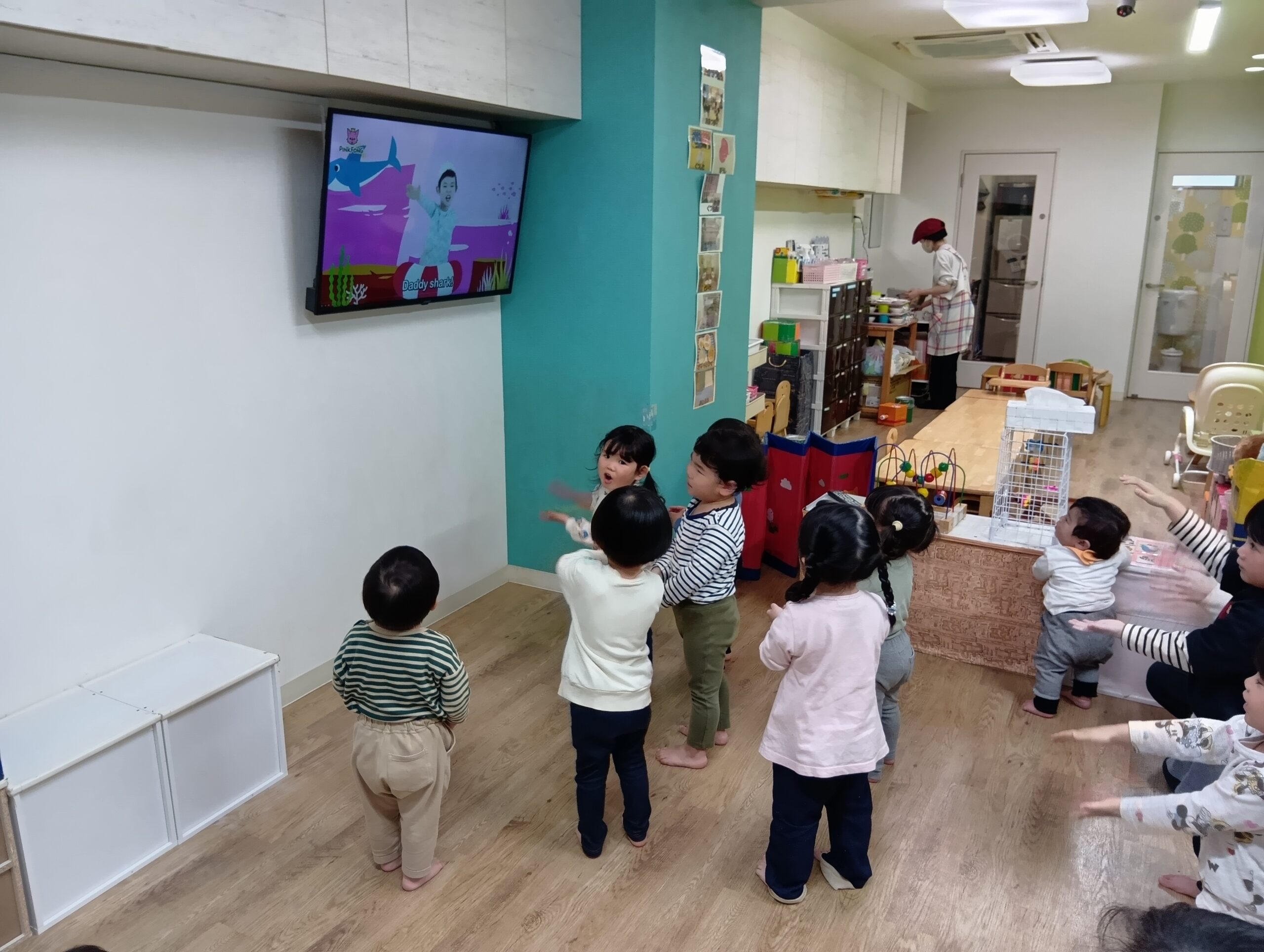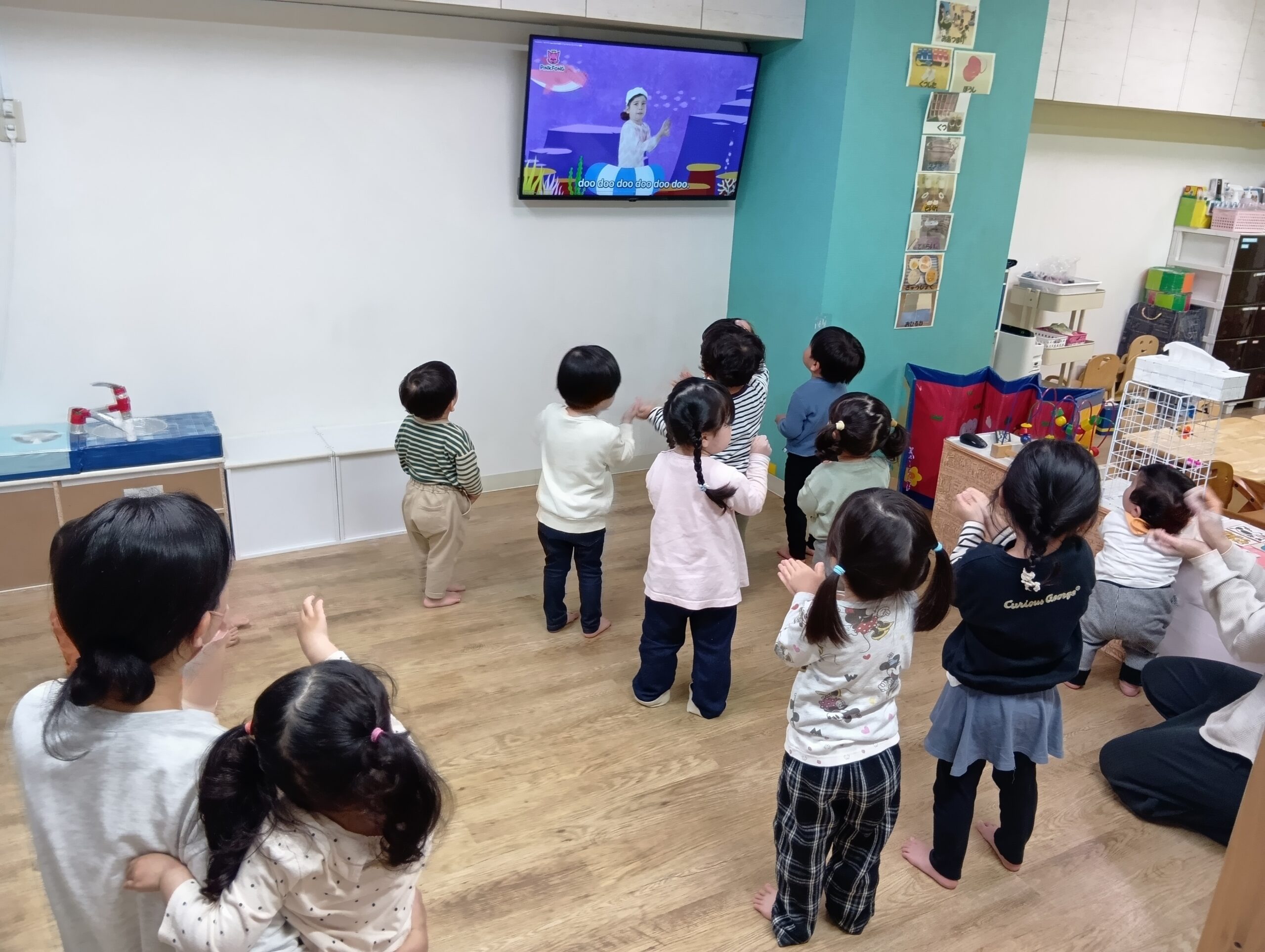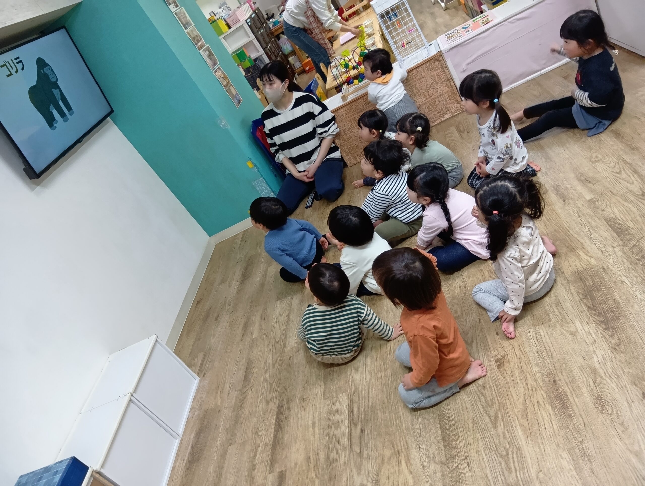たくさん遊んだ後は、保育園に戻り、自由遊びをしたり、英語もしました!