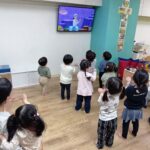 英語では、「ベイビーシャーク」、「モンキーバナナ」を踊りました!