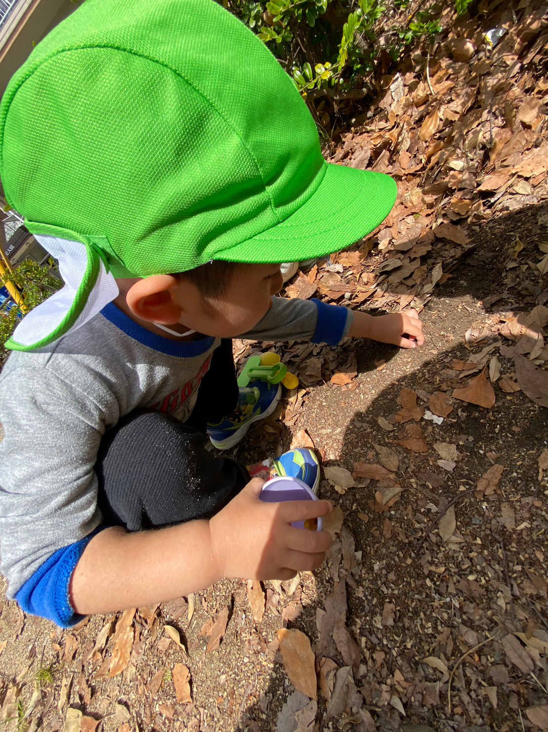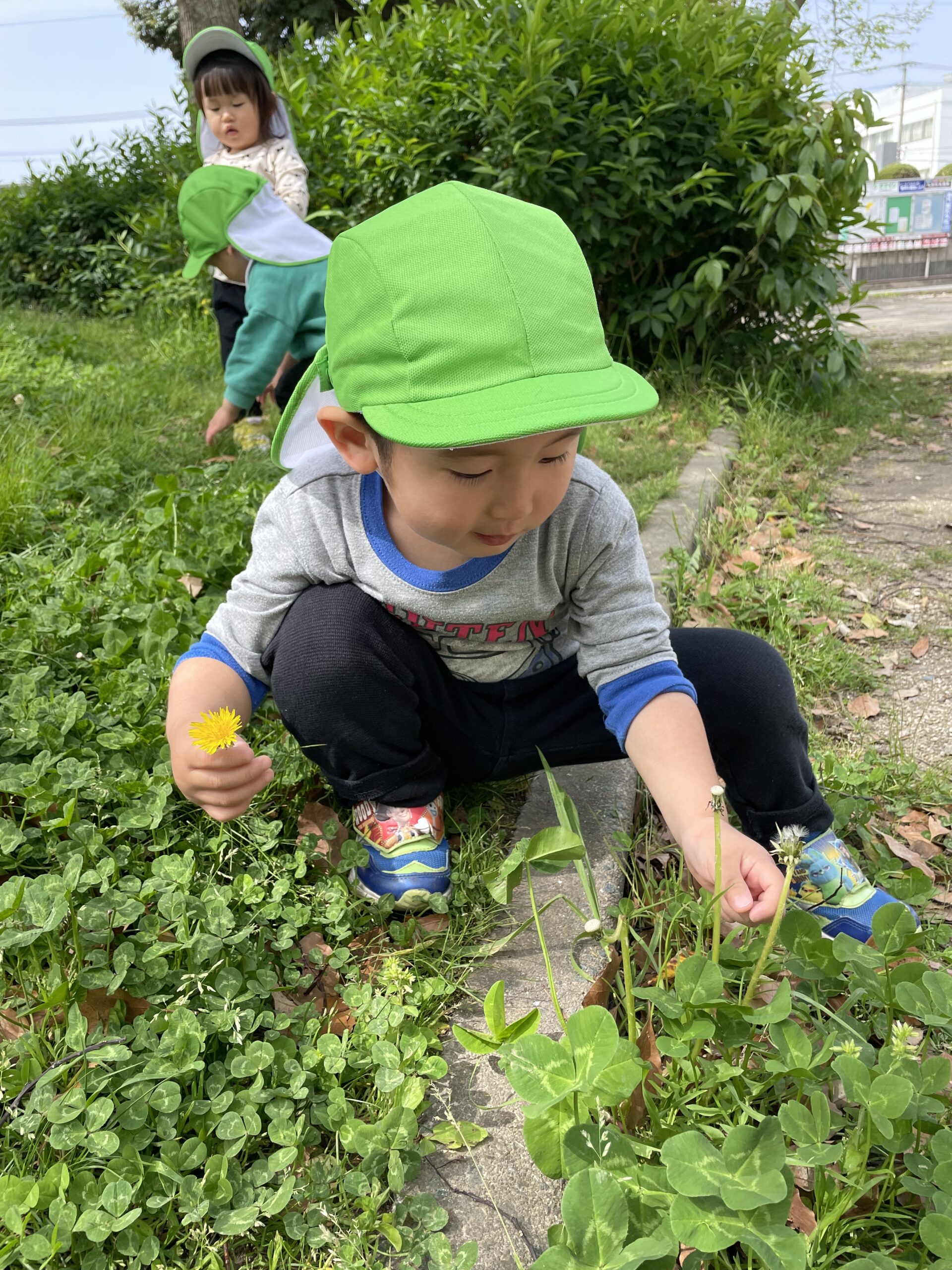 たんぽぽ見つけたり、枯葉をめくると、ダンゴムシの赤ちゃん発見したり、楽しみました😊