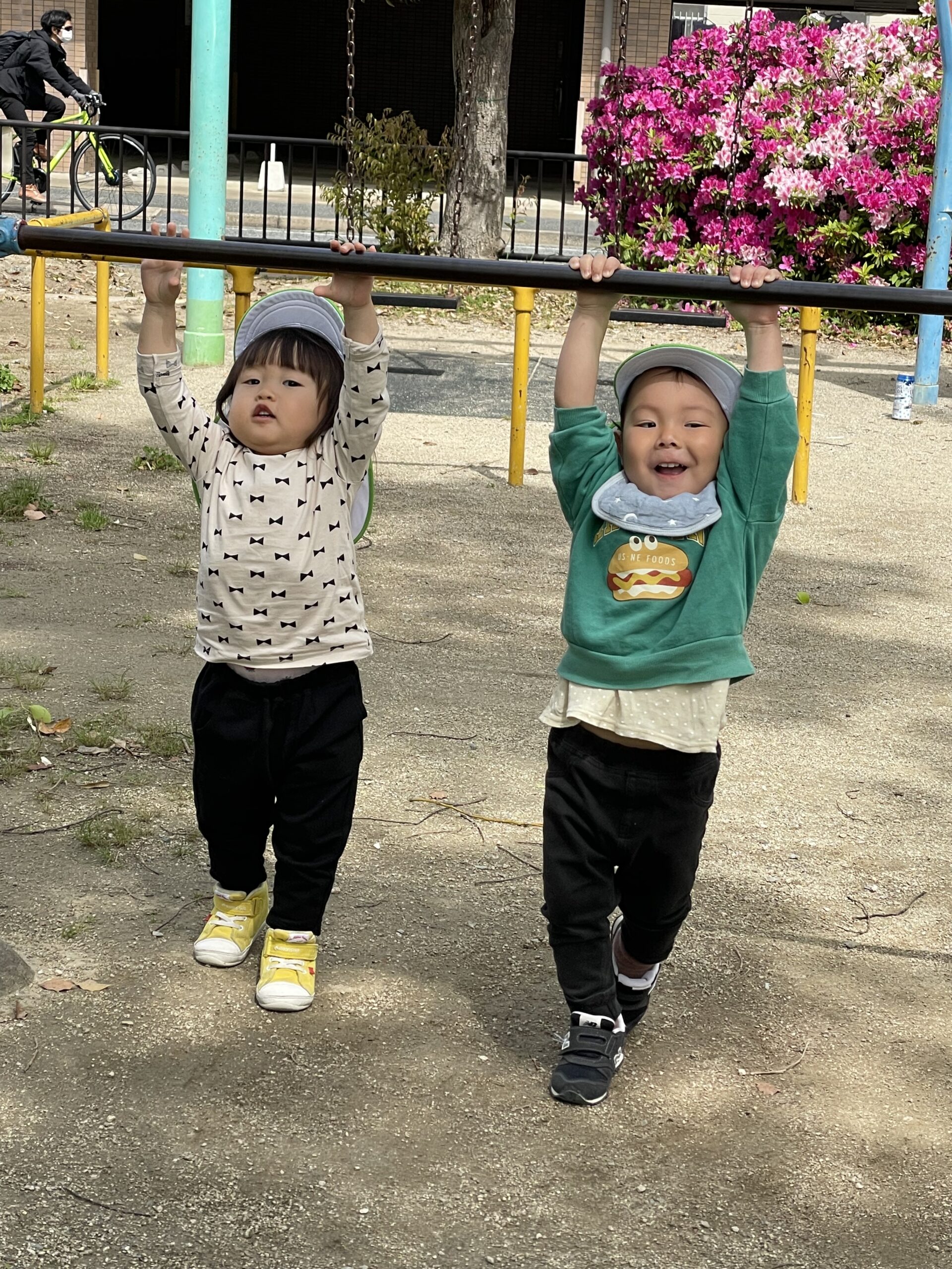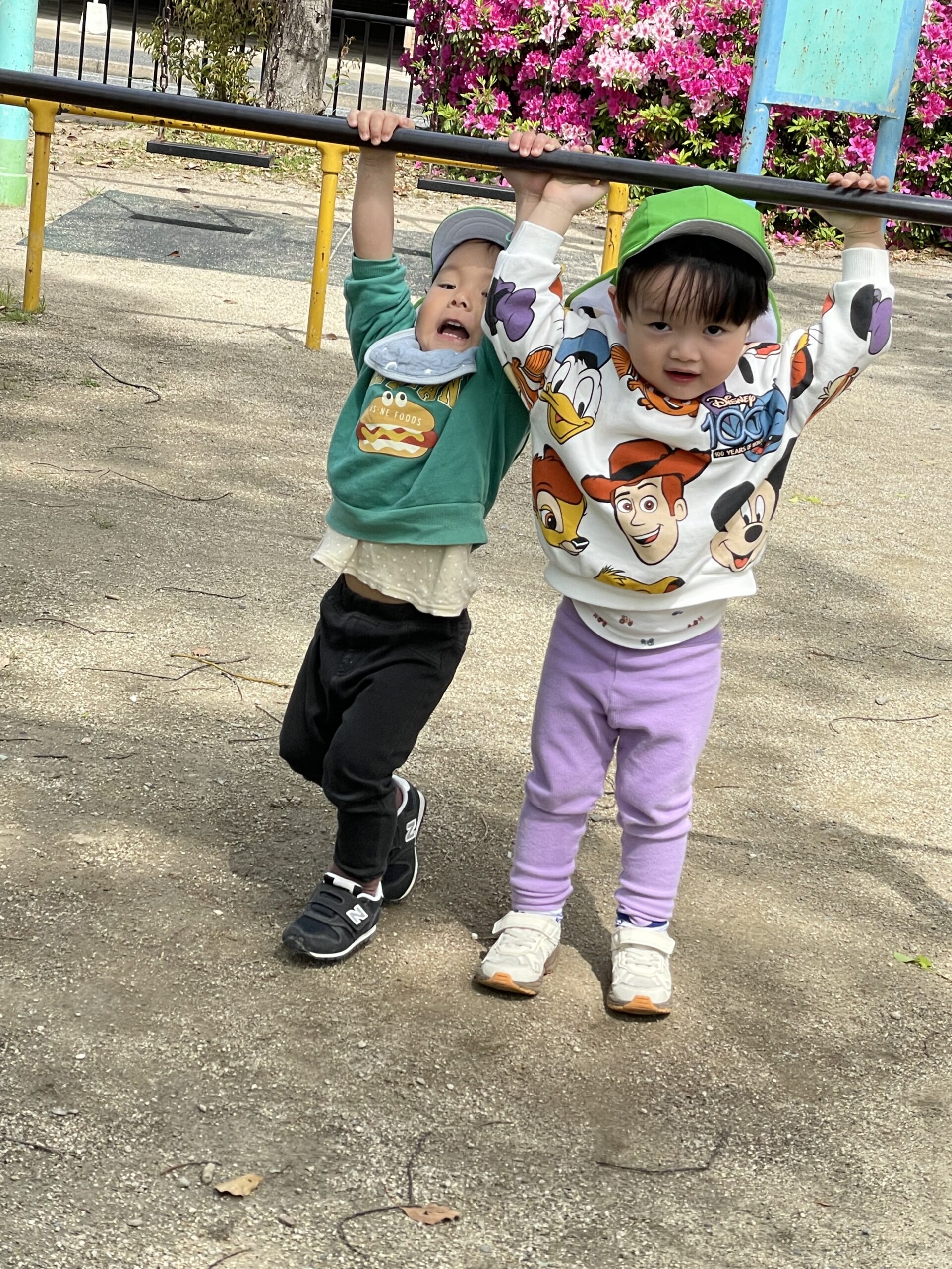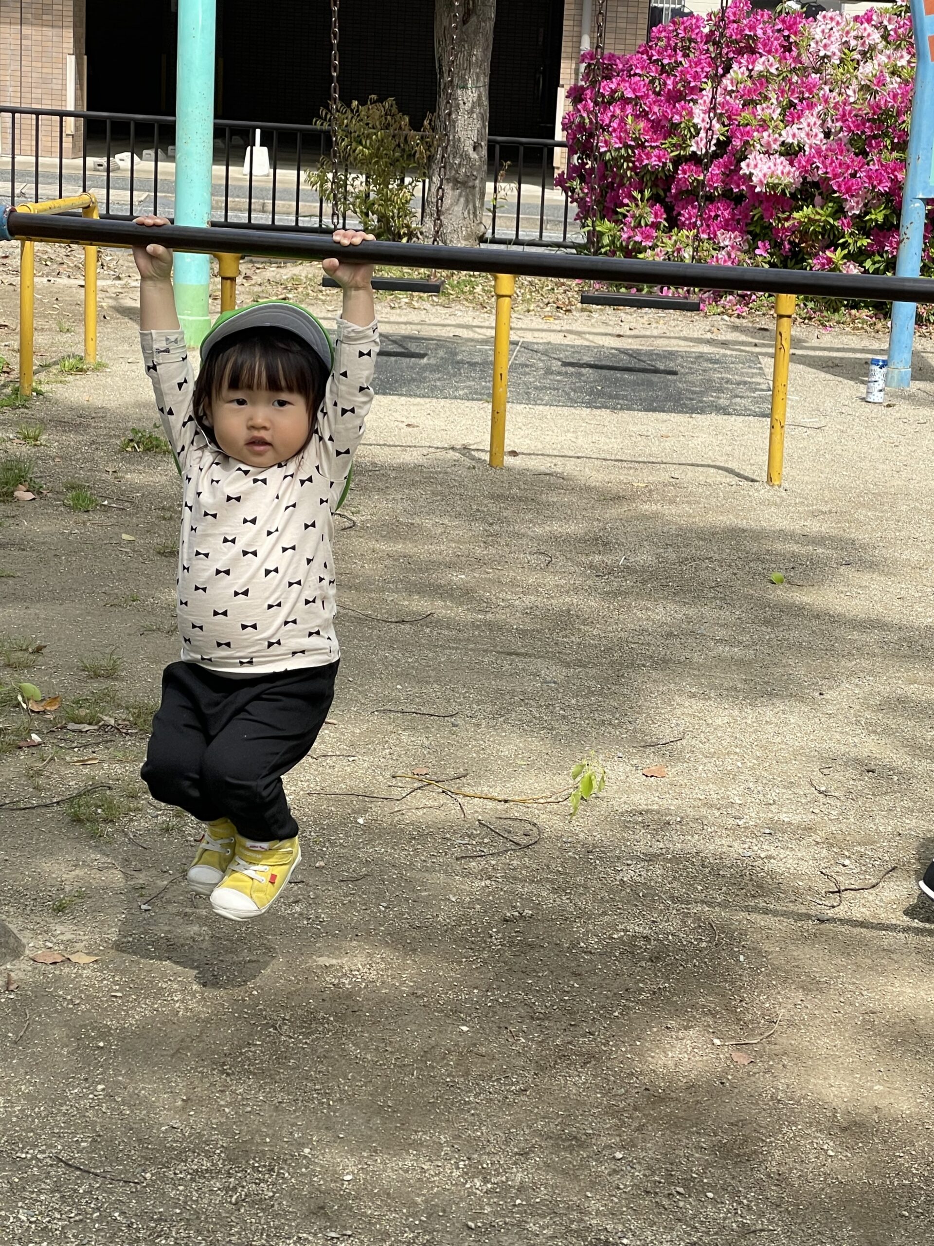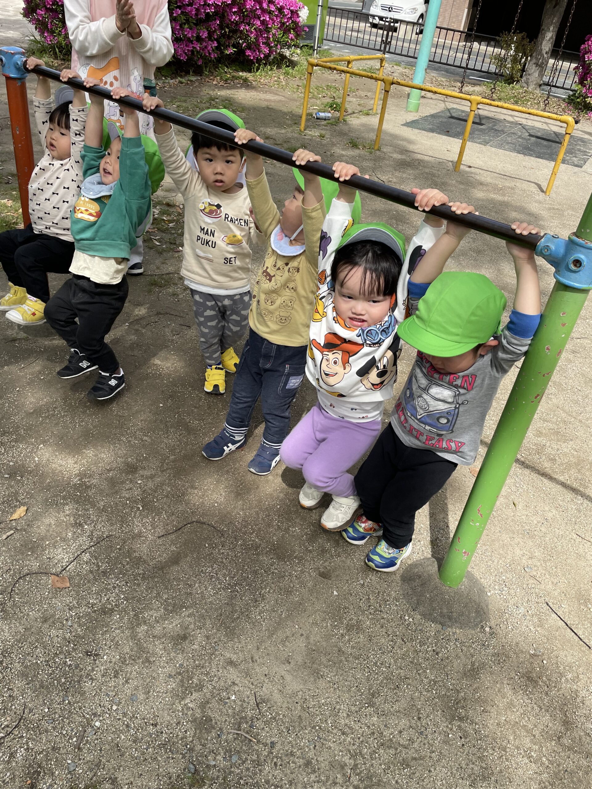 鉄棒ぶら下がり~~🙌元気いっぱいです😄
