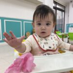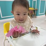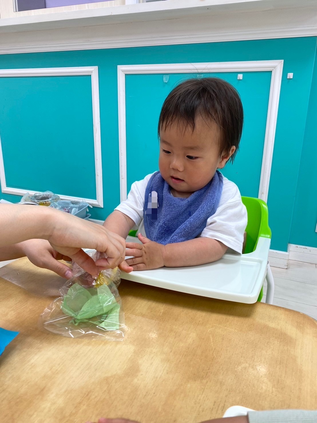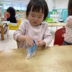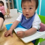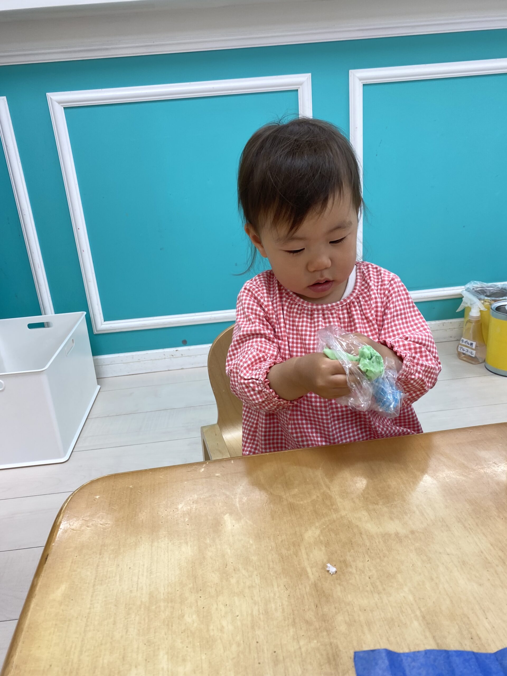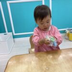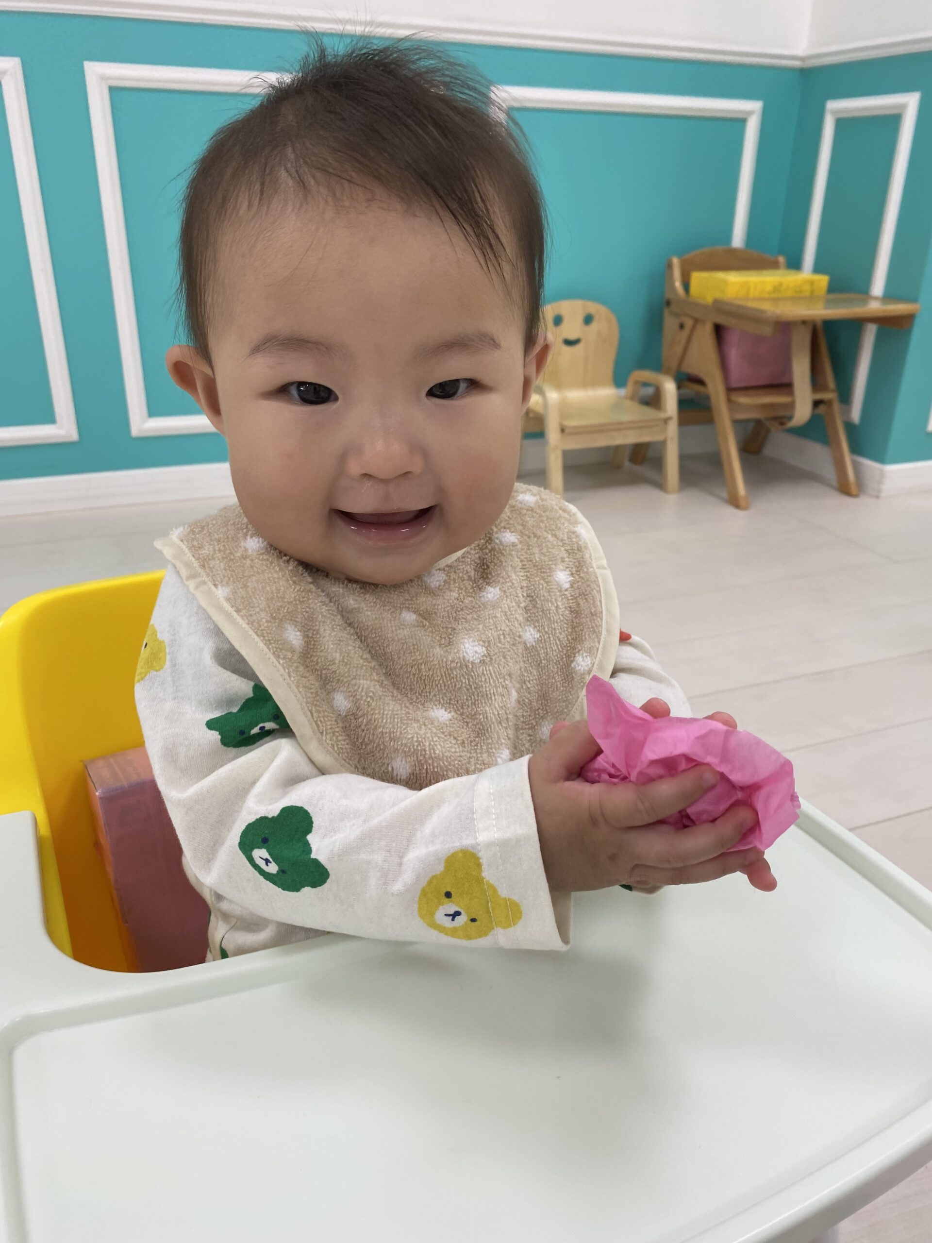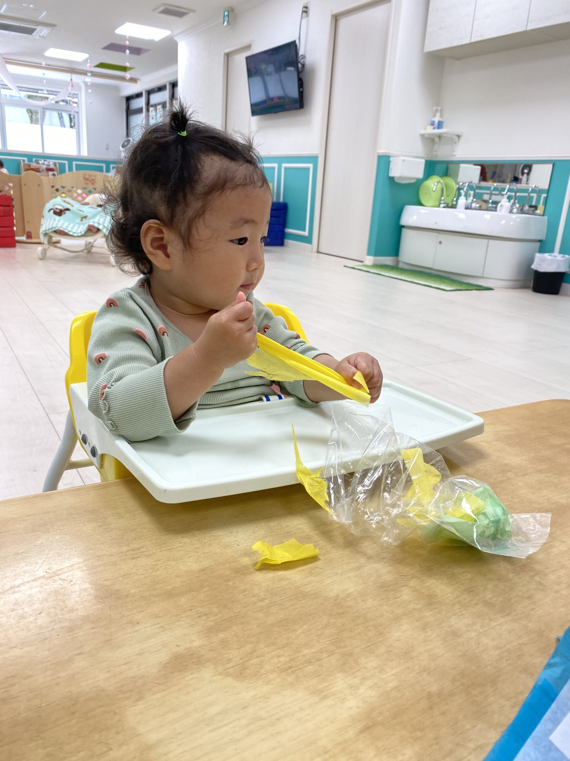 初めてのお花紙を不思議そうに見つめて、
