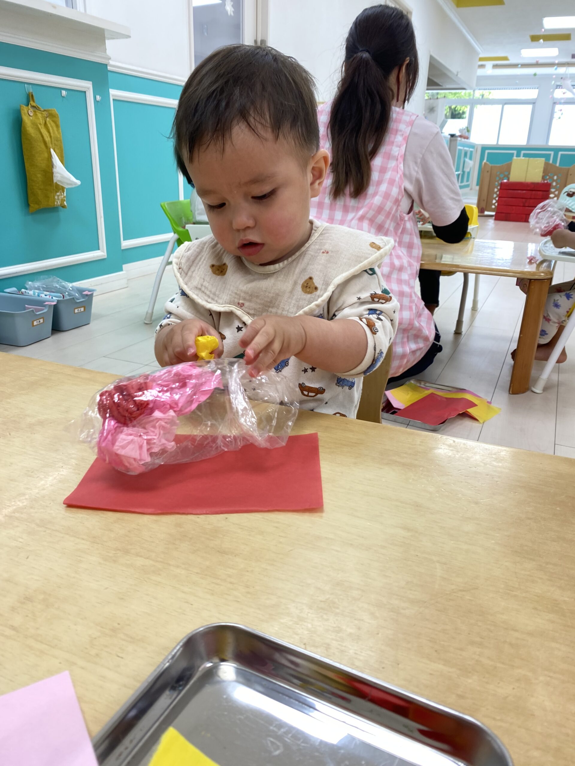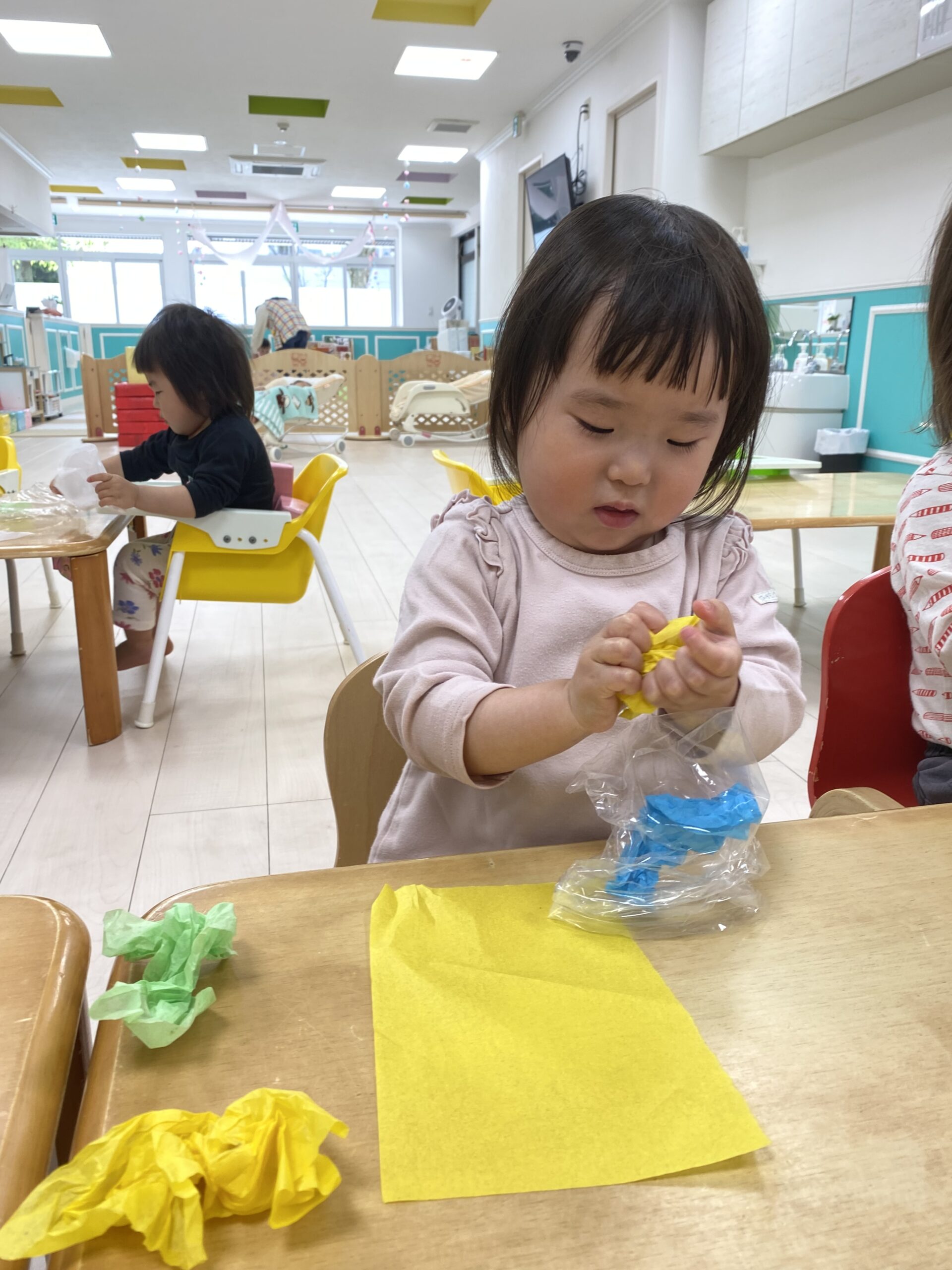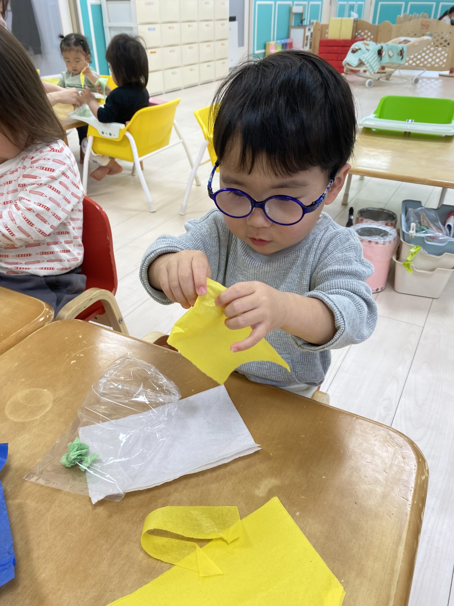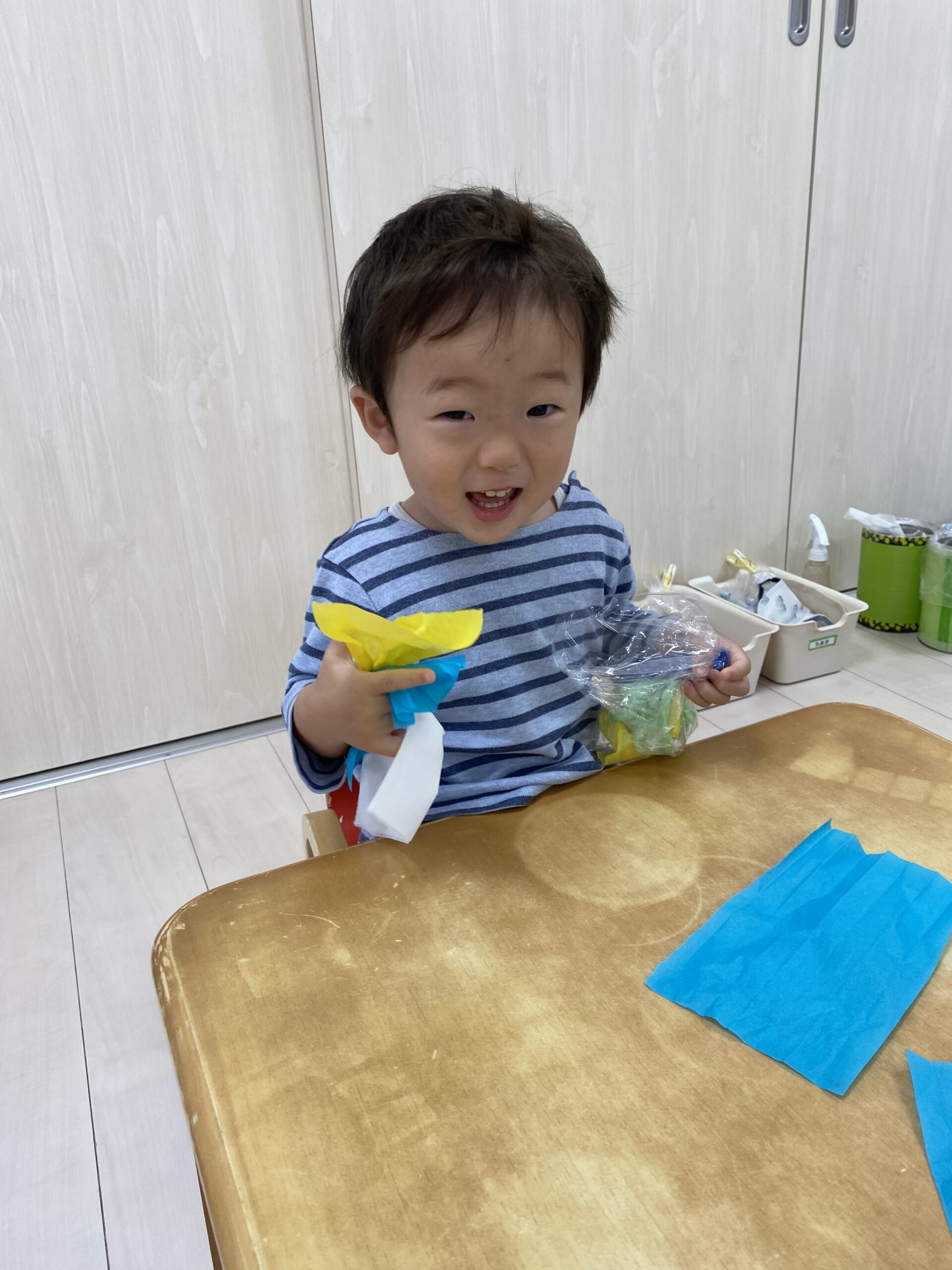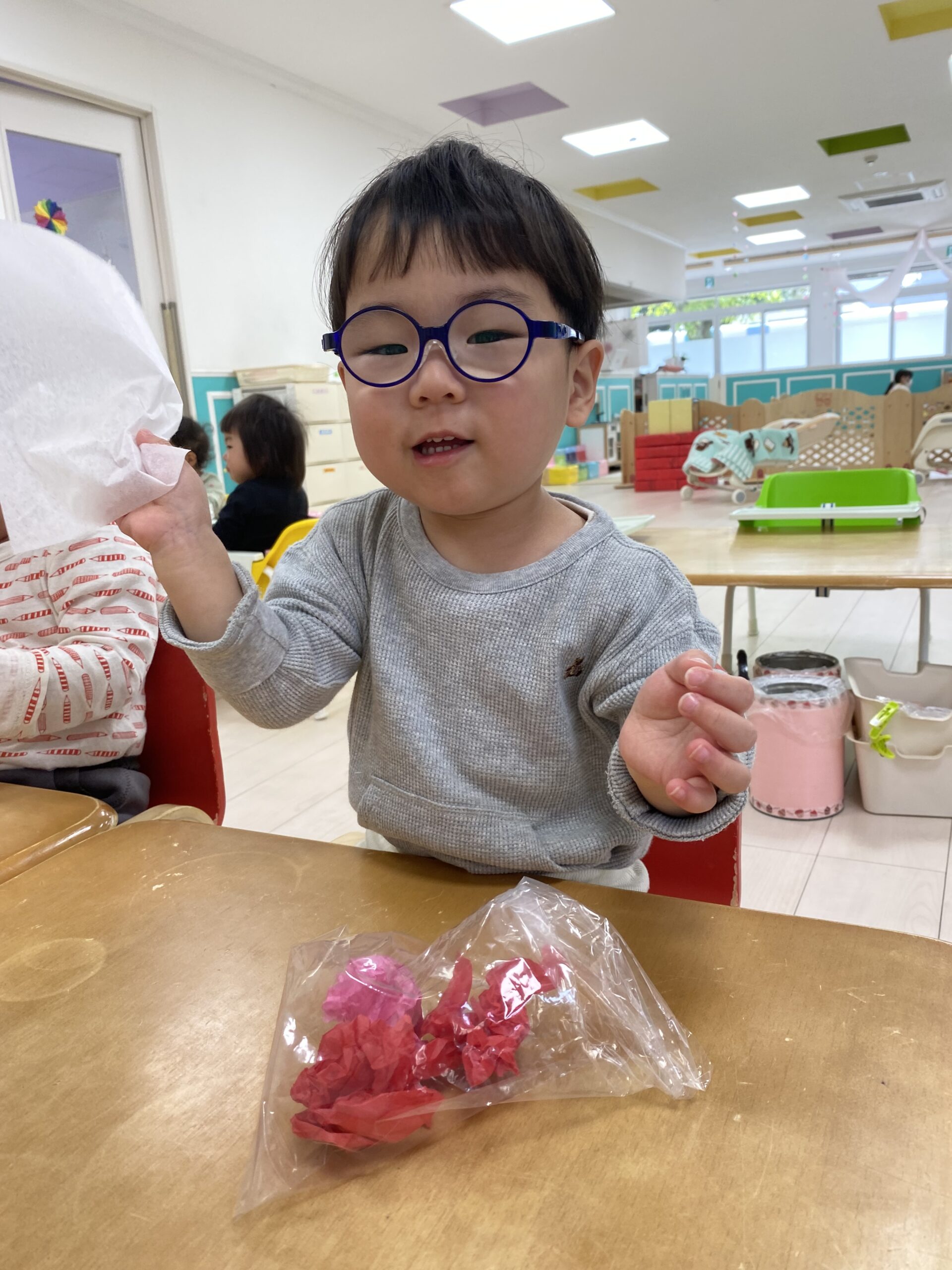 お花紙の手触りや、くしゅくしゅと音を楽しんでいます😊