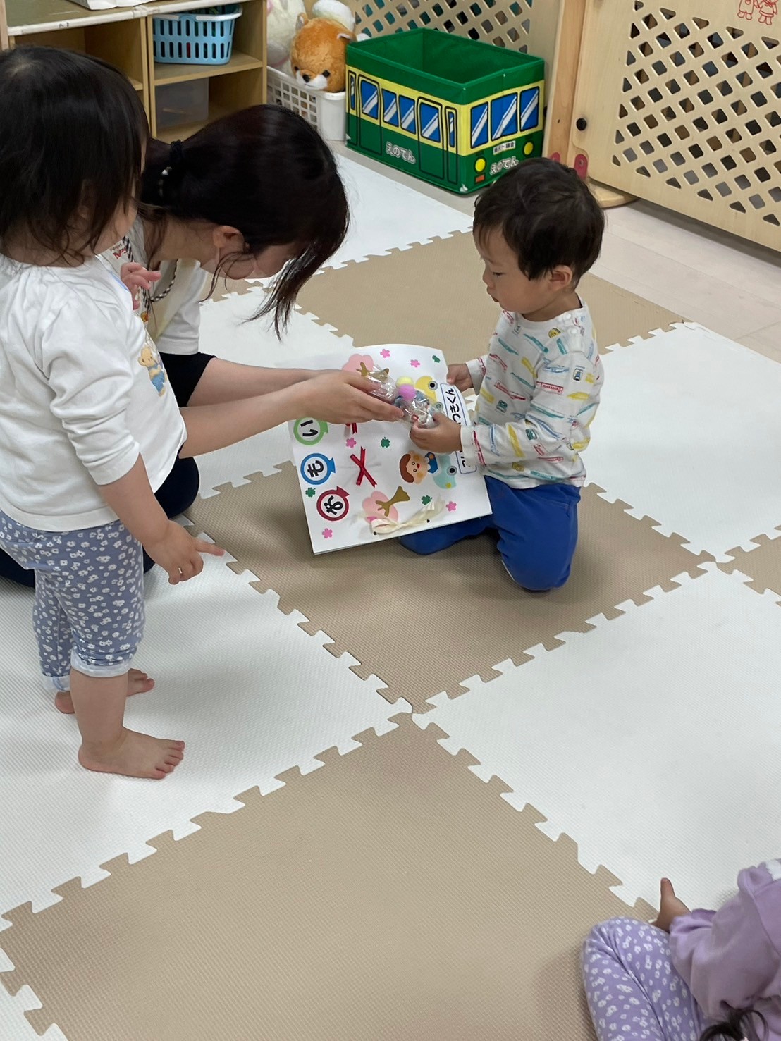退園するお友だちからみんなへプレゼントがあり、「どーぞ!」と言いながら一人ひとりに渡していましたよ🎀