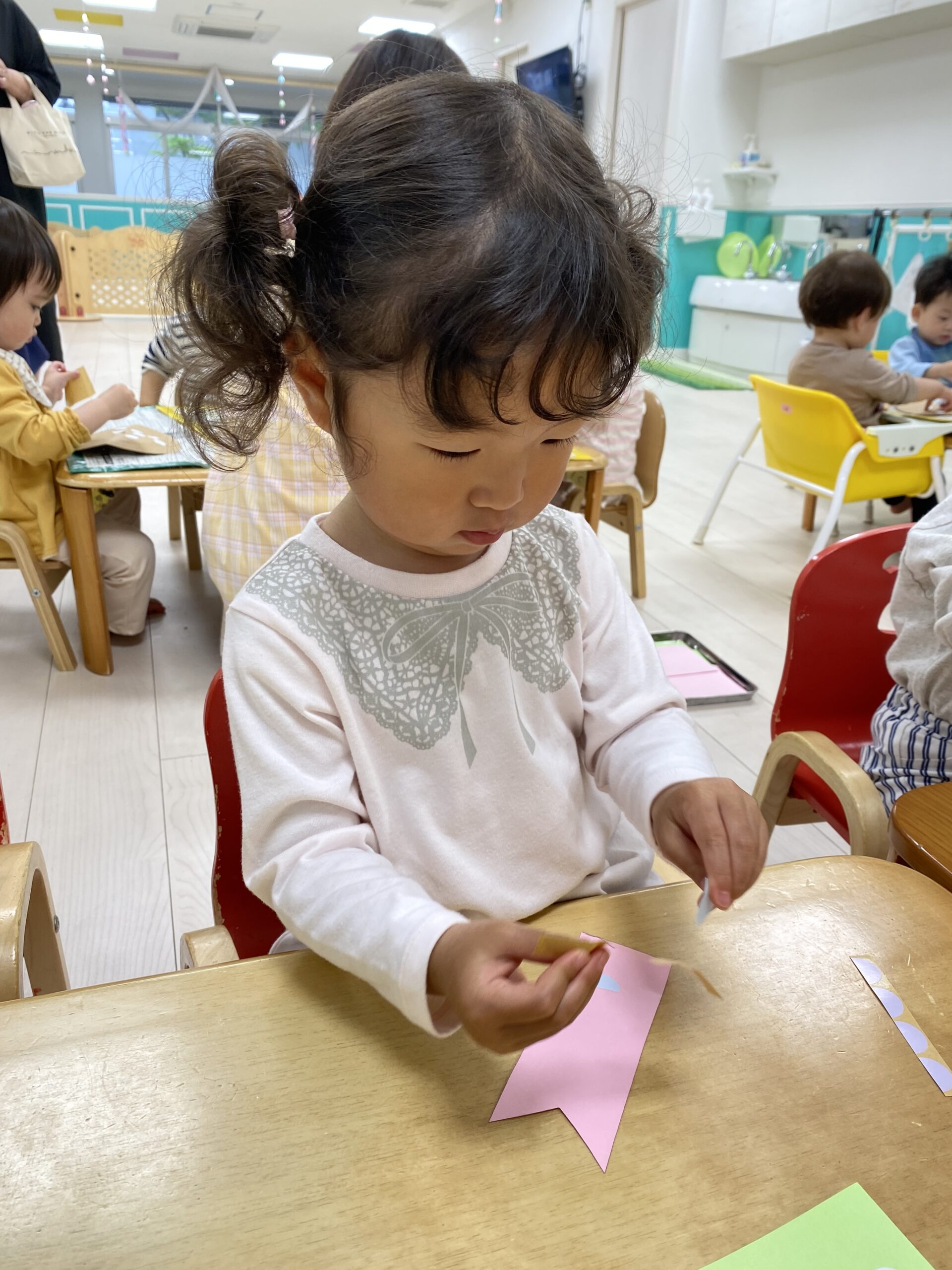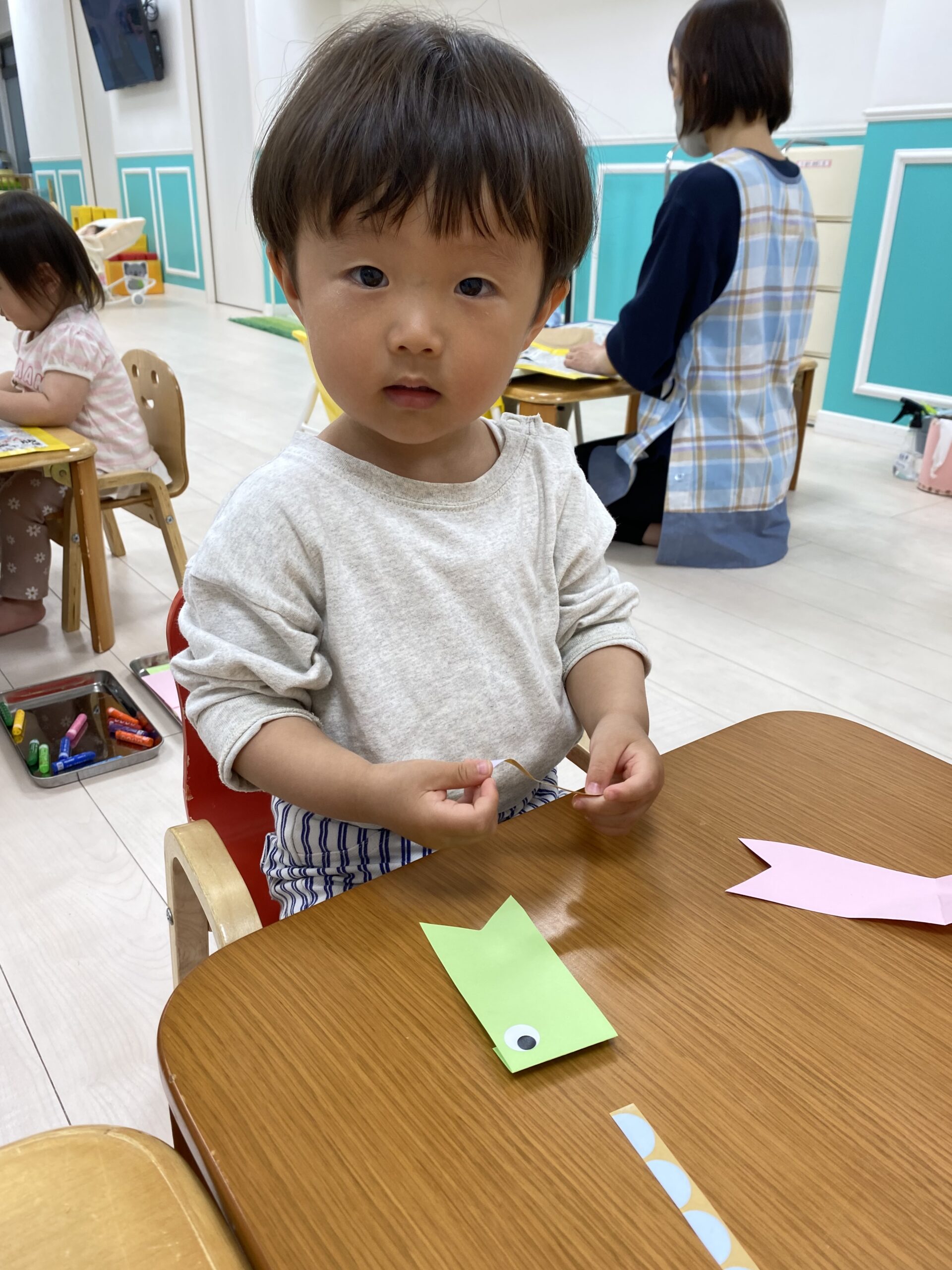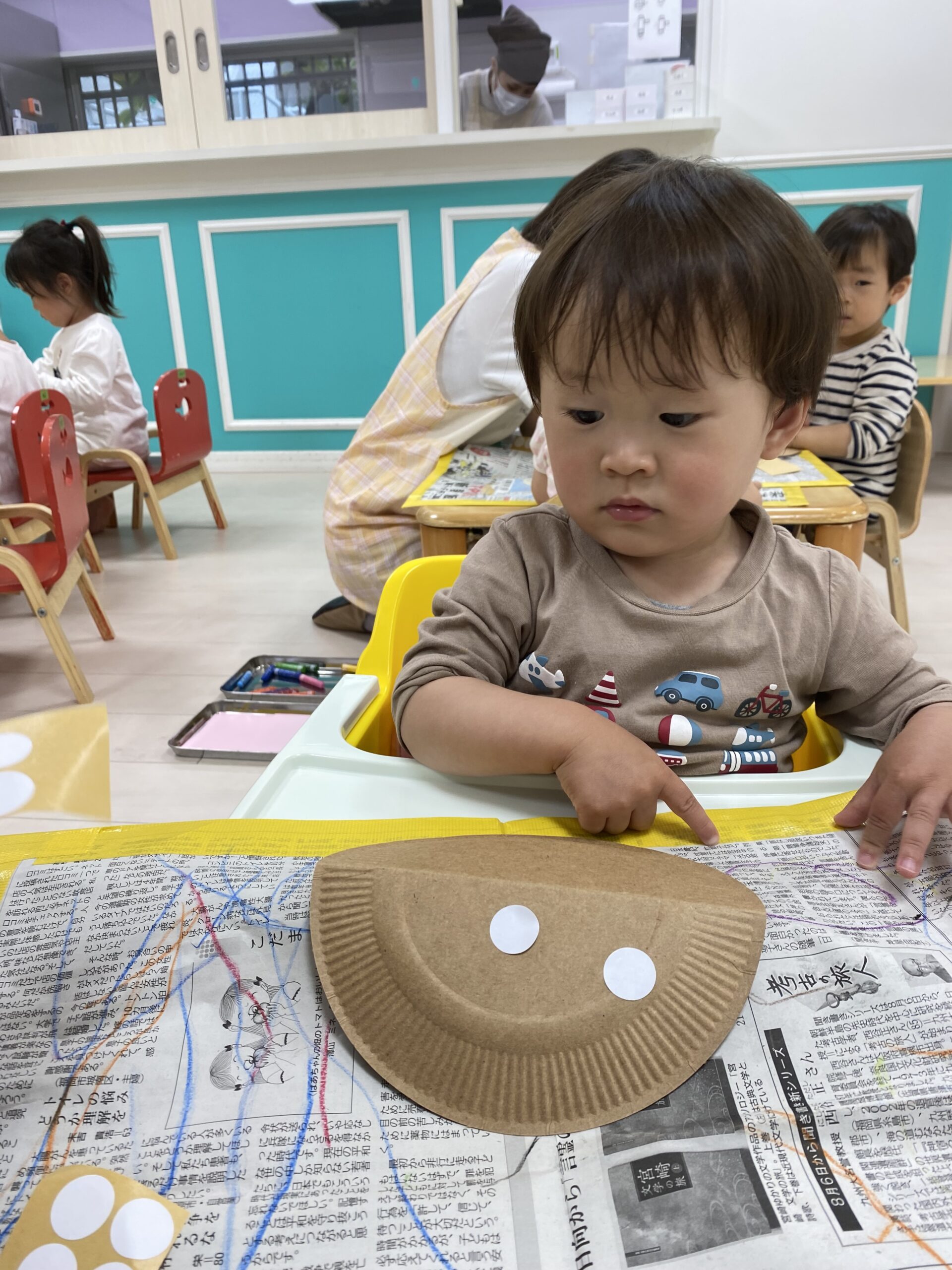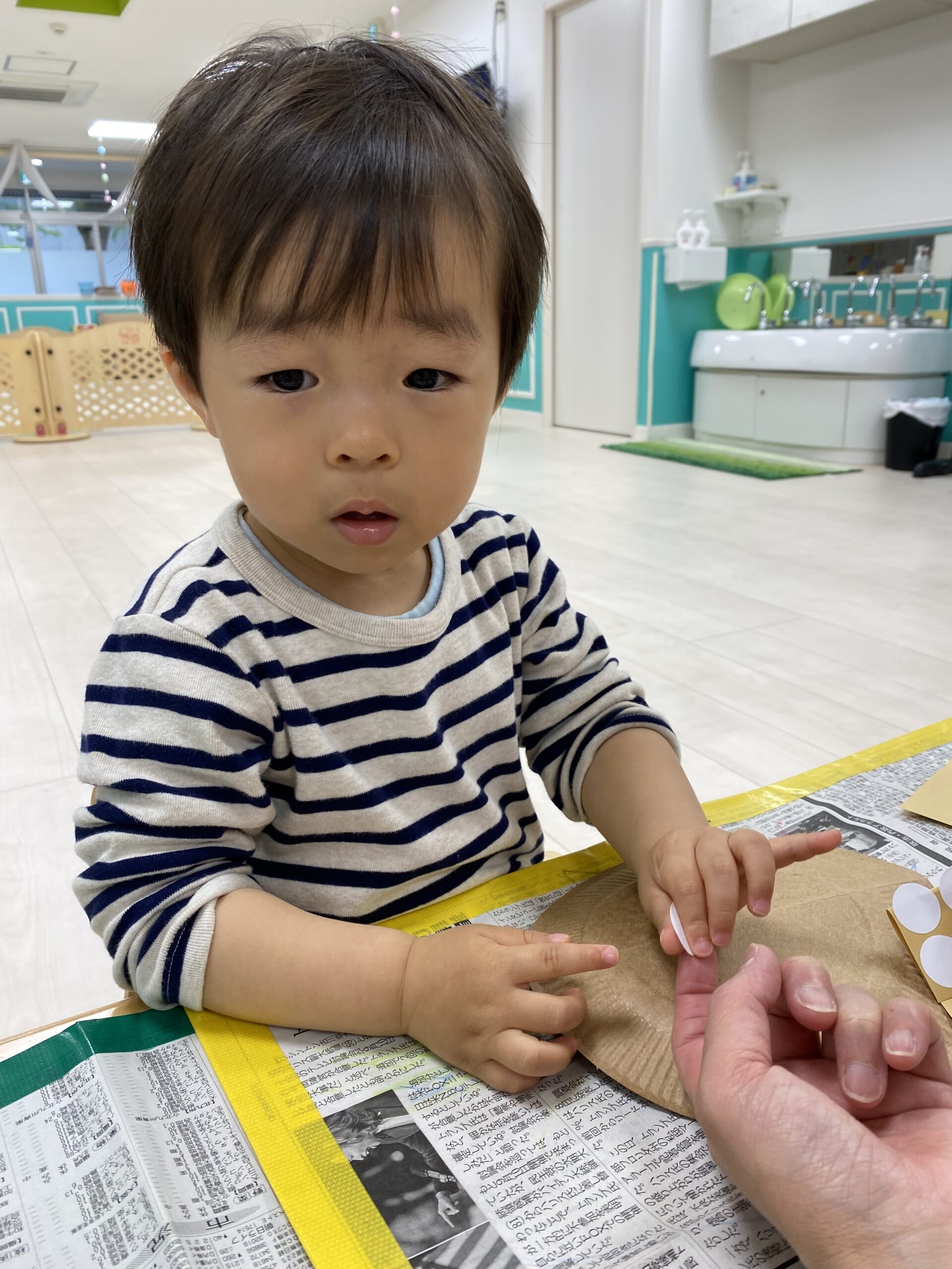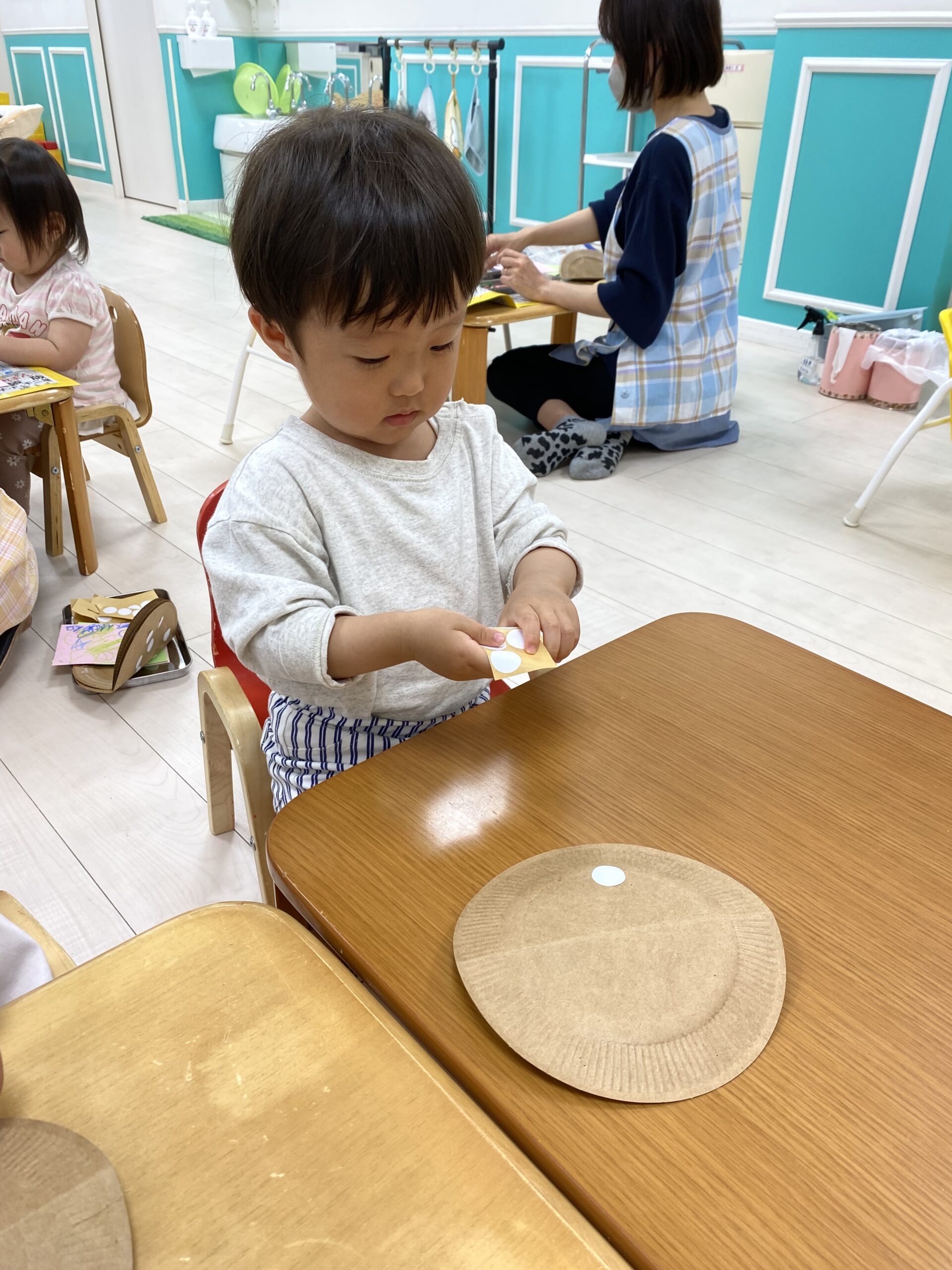 保育士と一緒にシール貼りをしました☺️✨