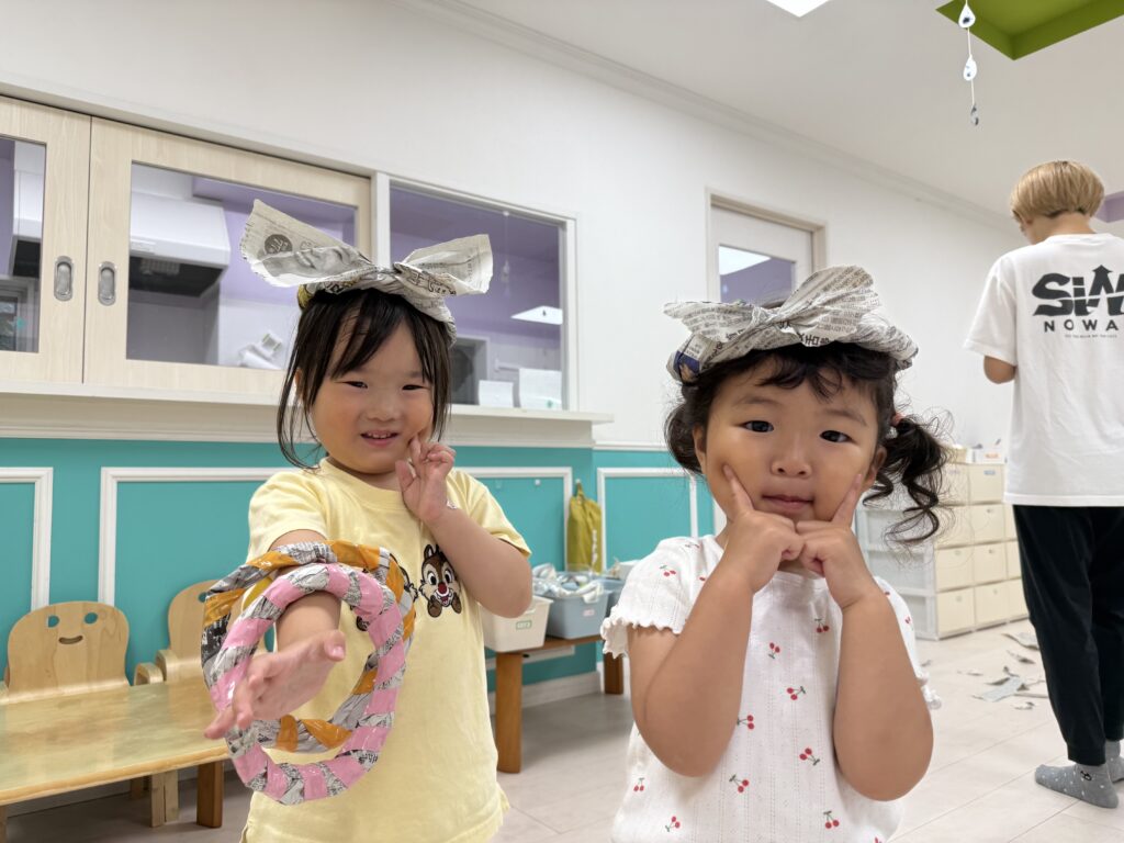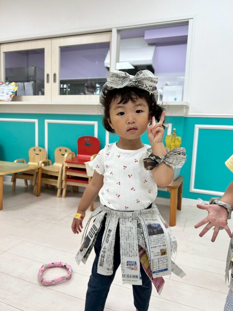 新聞紙で可愛くおめかししていたお友達♡