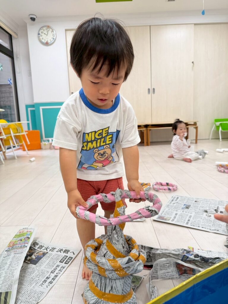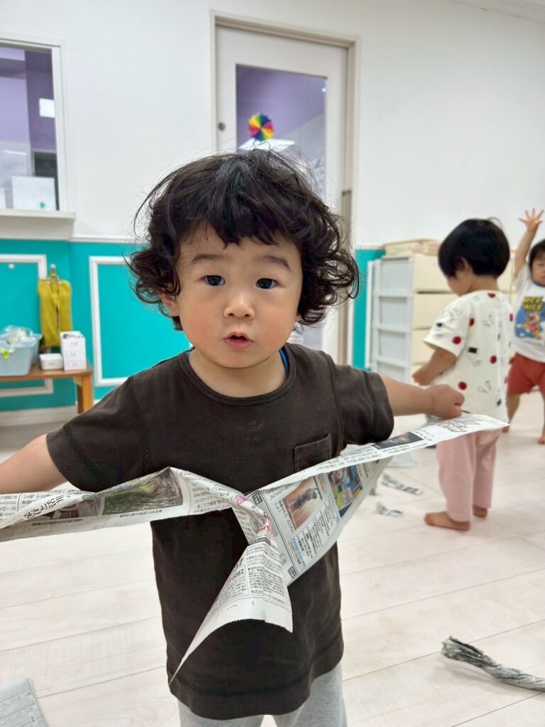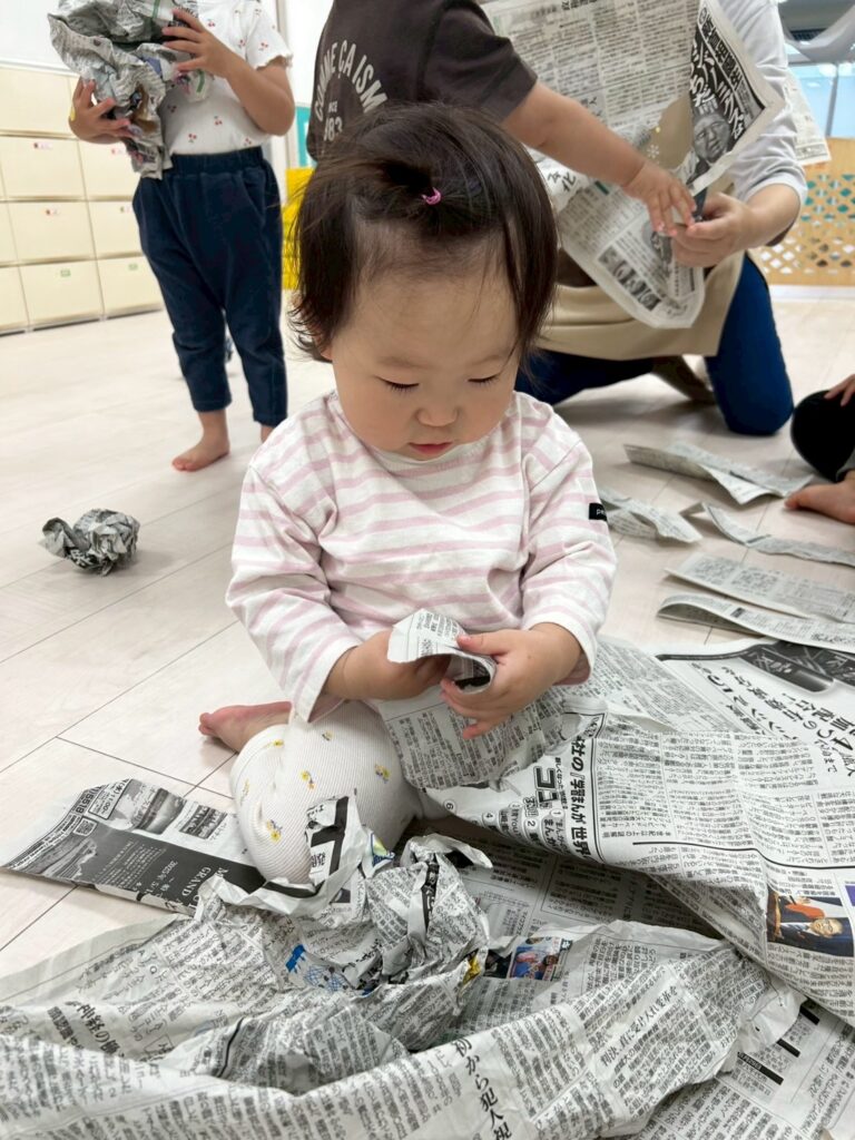 ビリビリ破いたり、ボールを作ったり、ぐちゃぐちゃにしてみたり…感触や音を楽しみましたよ🤗✨