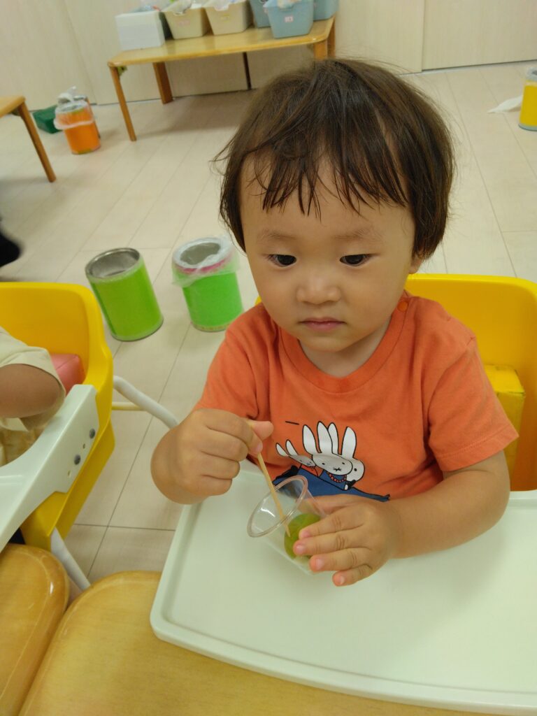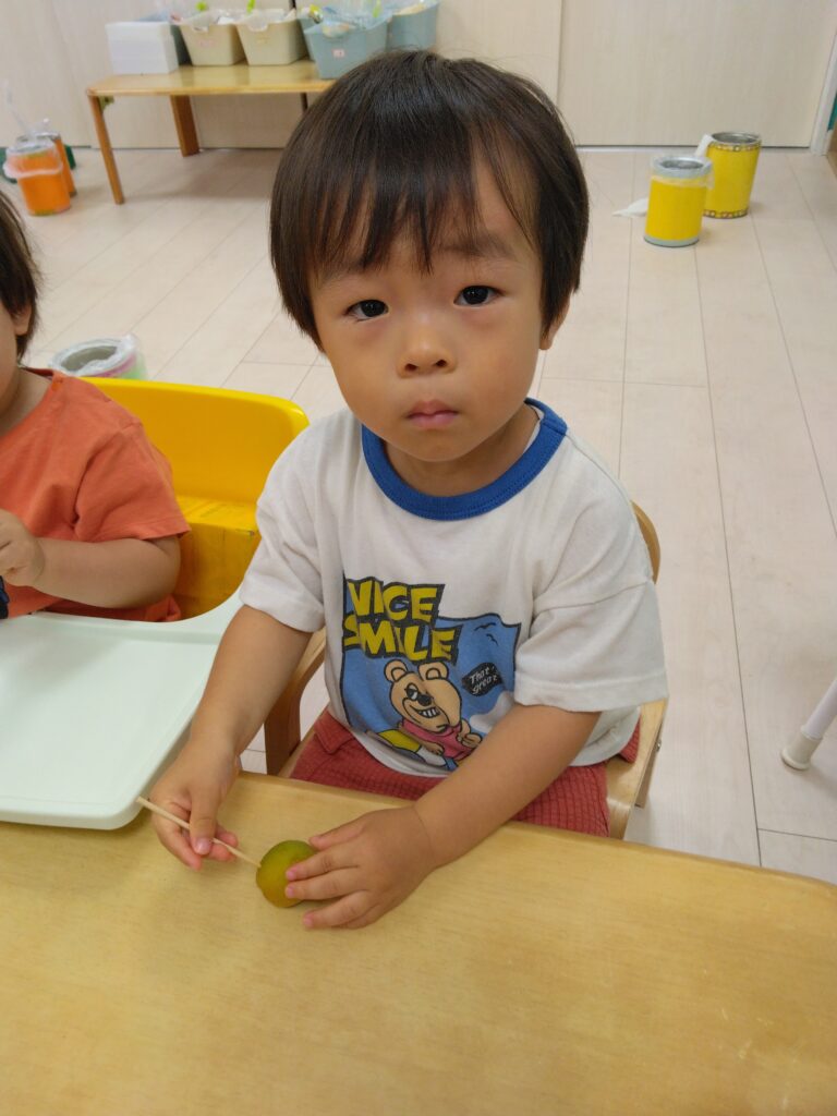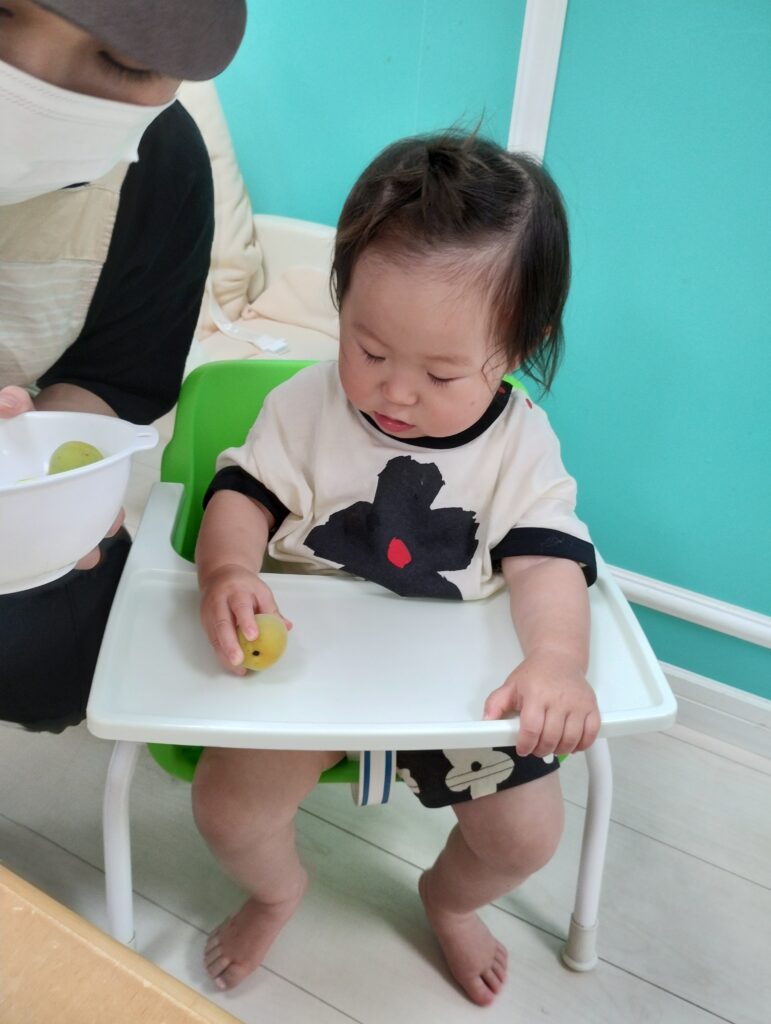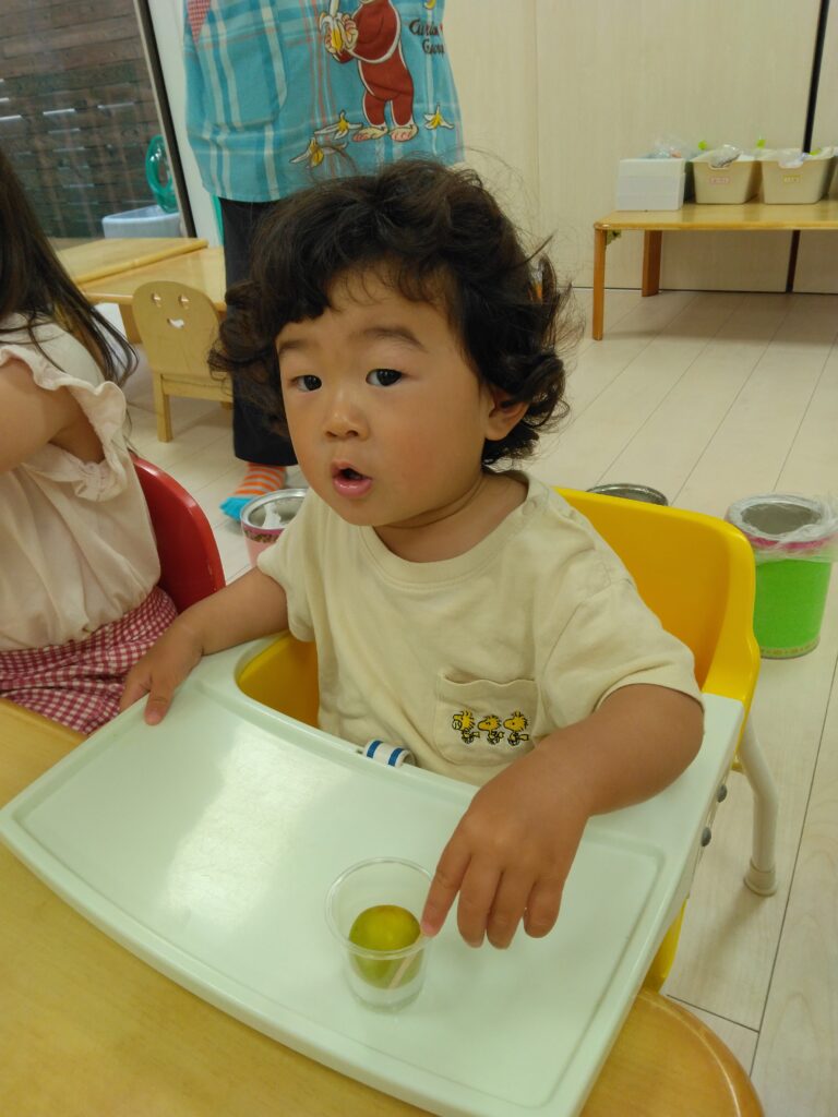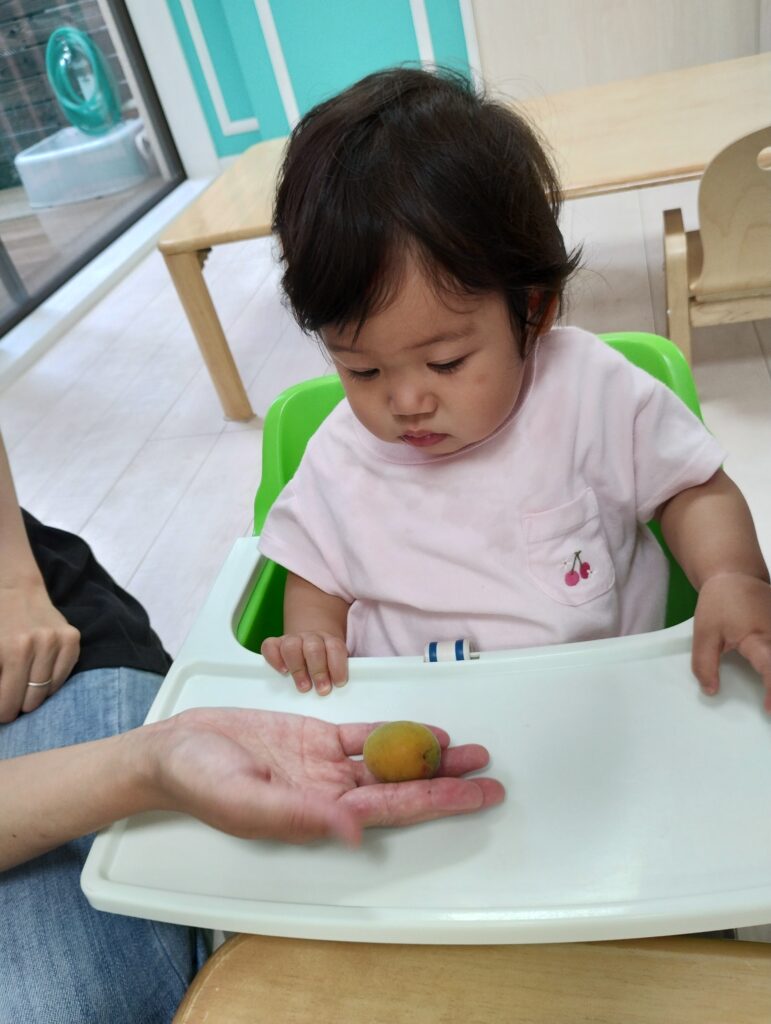 小さなお友達は、梅を転がしたり握ってみたり感触を楽しみましたよ♫