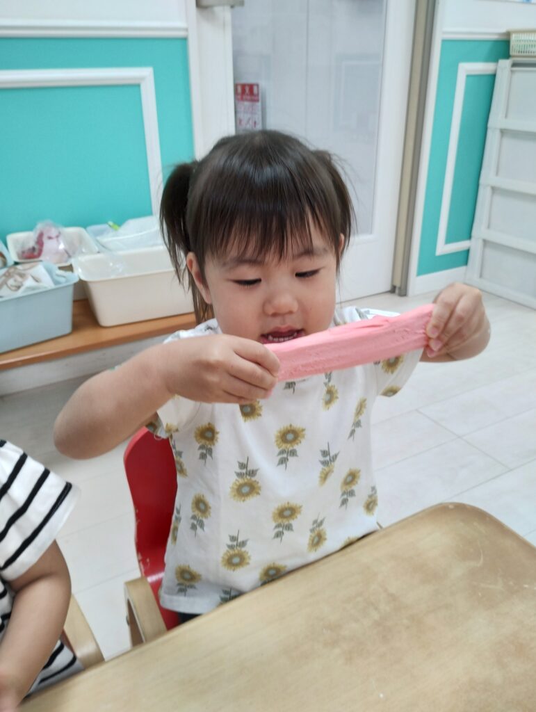 伸ばしてみたり、型どってみたり、皆それぞれ好きなように触って楽しみましたよ☺️♫