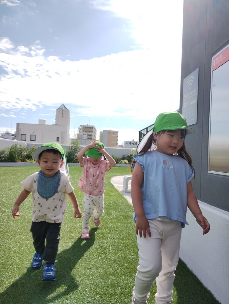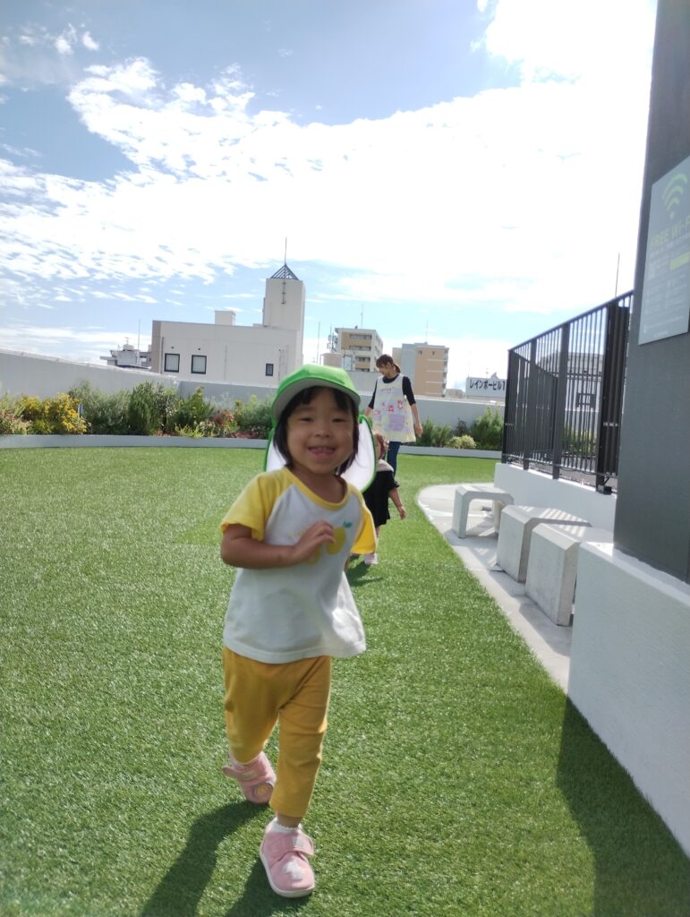 屋上に着くと、「よーいどん!」の合図で芝生を元気いっぱい走り出す子どもたち🏃💨