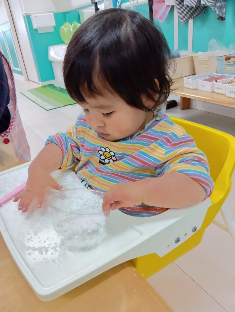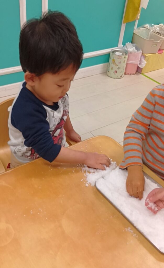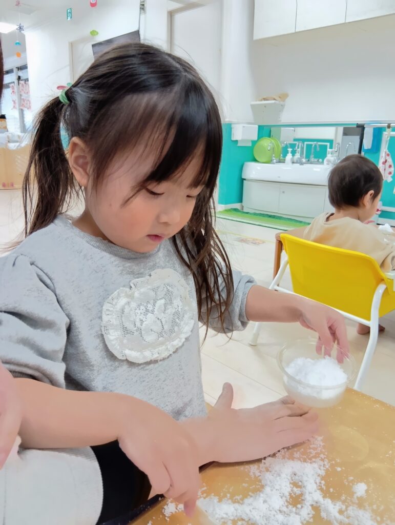 今日は、この冬ならではの雪に見立てた感触あそびをしました⭐️