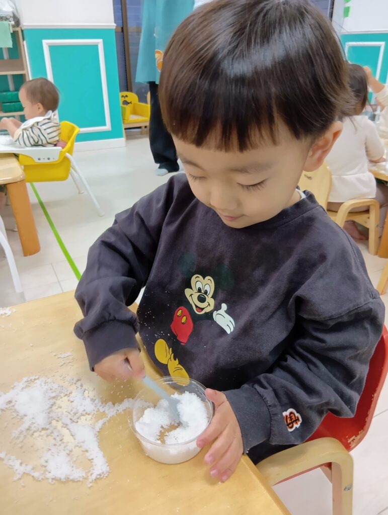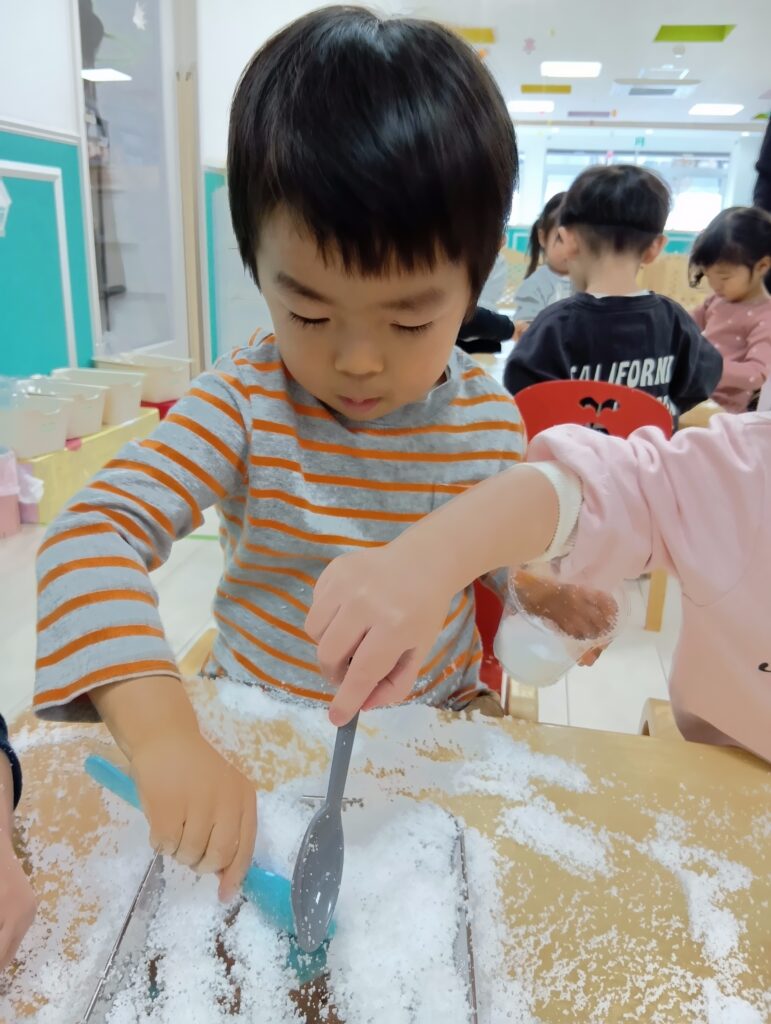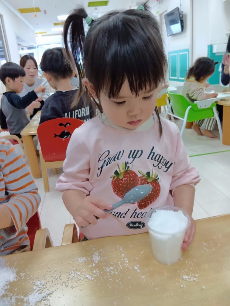 手で直接触ったり、スプーンにすくって思い思い楽しんでいましたよ☺️!!