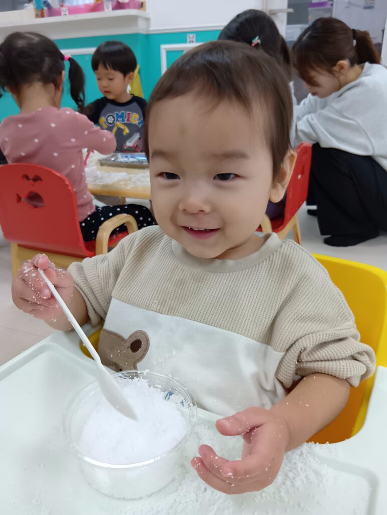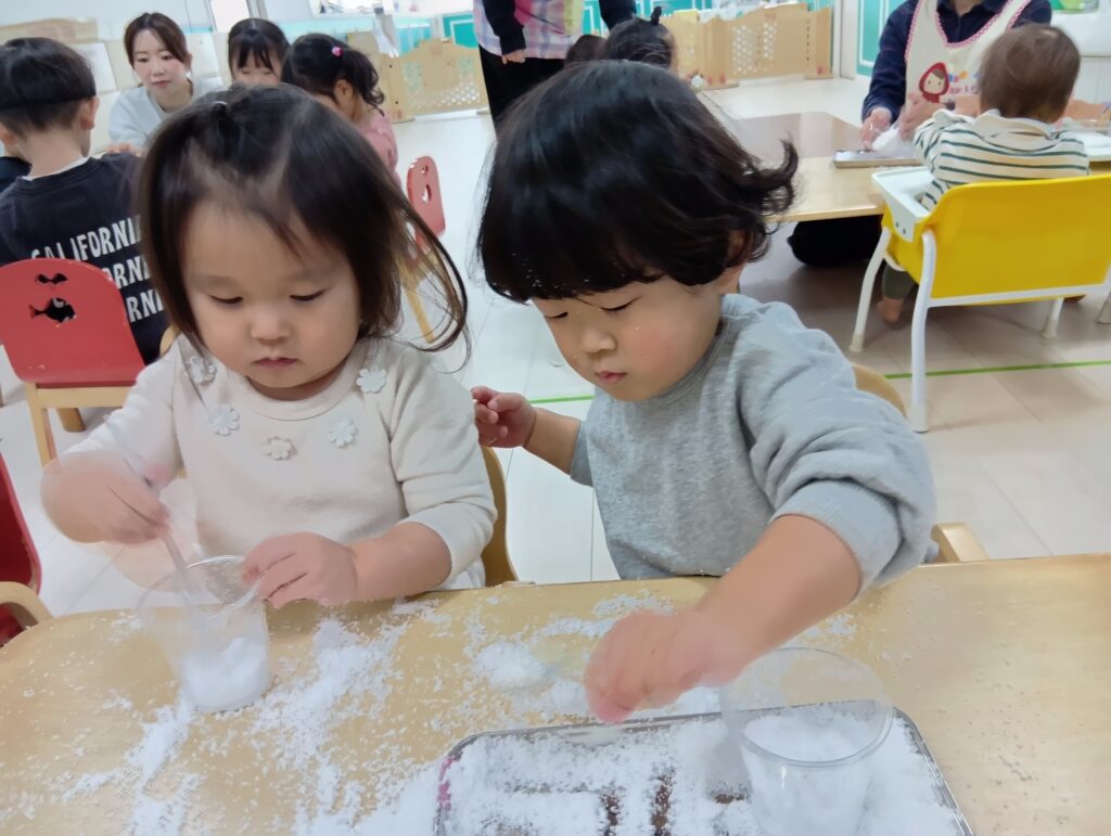 真っ白の粉末が、水と混ぜると本物そっくりのふわふわした雪に大変身😳✨️