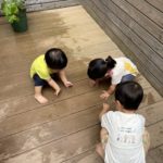 暑かったので足に水をかけて~気持ちいいね~✨足型ペッタン!!楽しみました!!