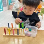 手づくりおもちゃで、手先を使った遊びがたくさんできます!好きな遊びを好きなだけする事によって集中力がついてきますね!