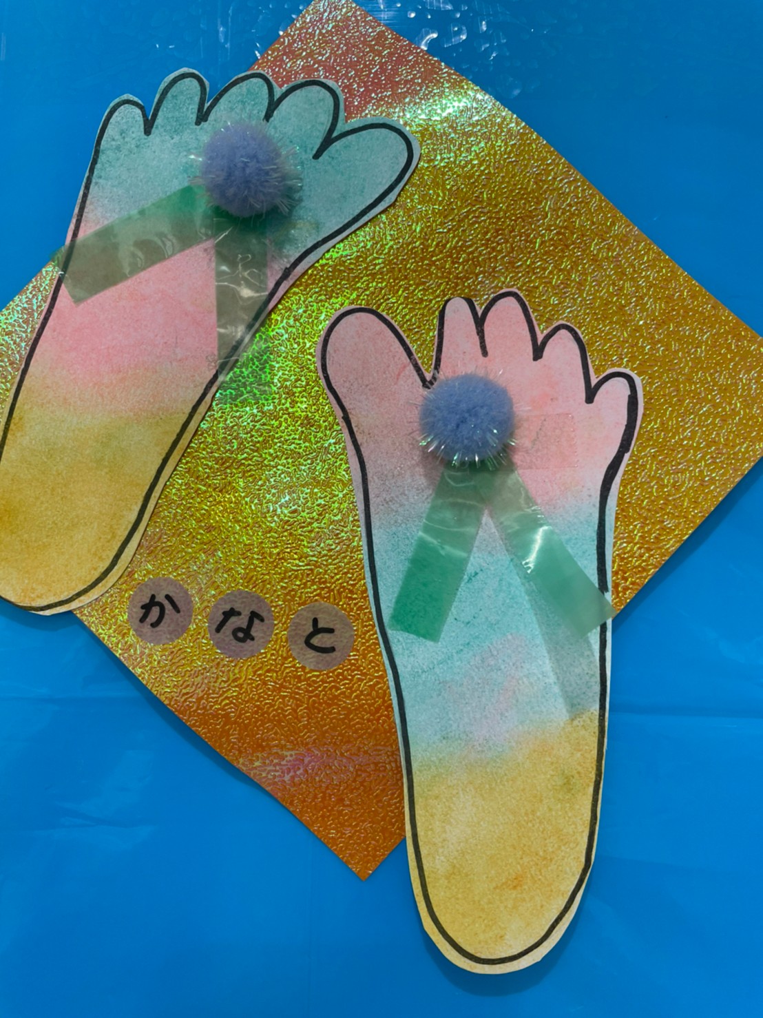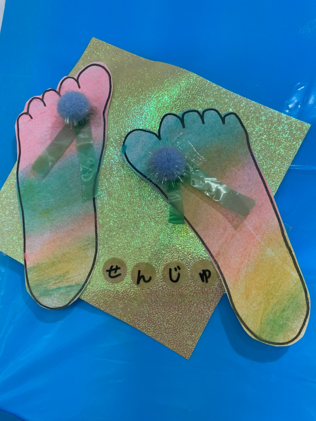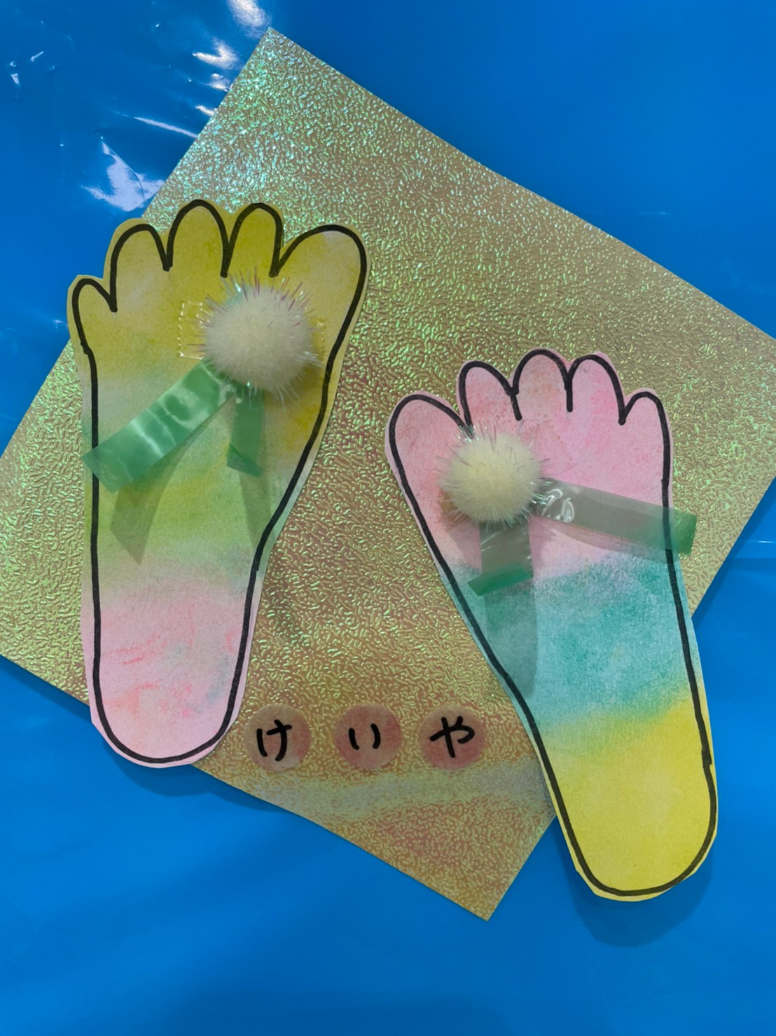 ビーチサンダルの出来上がりです🏖足型可愛いですよね!!👣👣👣👣(壁面飾りが終わったら製作帳にとじます❣️)