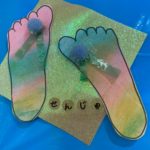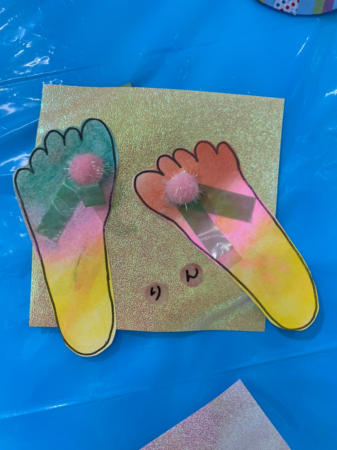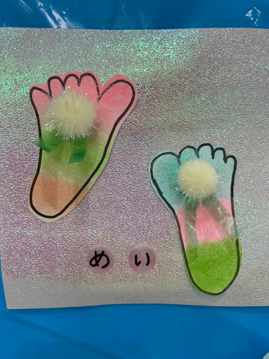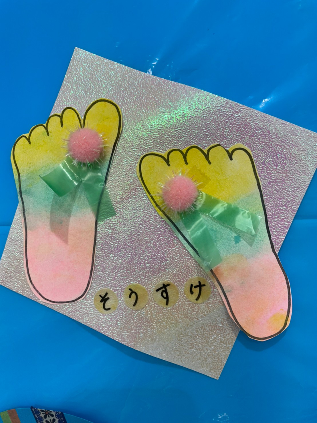 ビーチサンダルの出来上がりです🏖足型可愛いですよね!!👣👣👣👣(壁面飾りが終わったら製作帳にとじます❣️)
