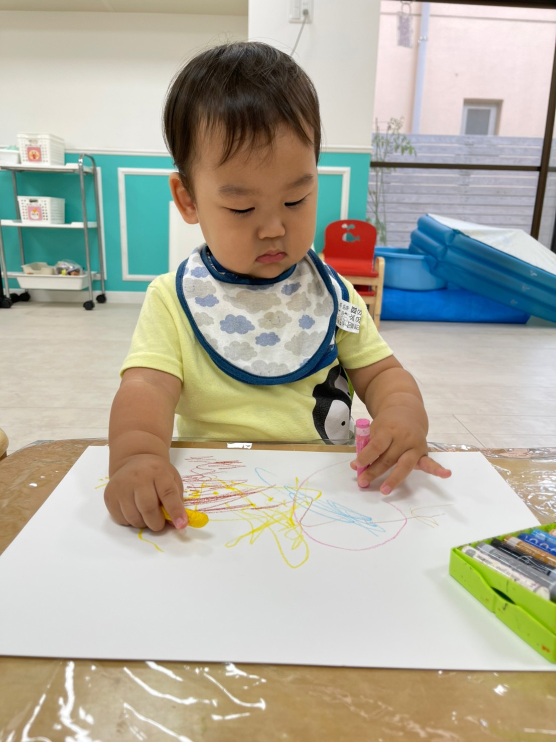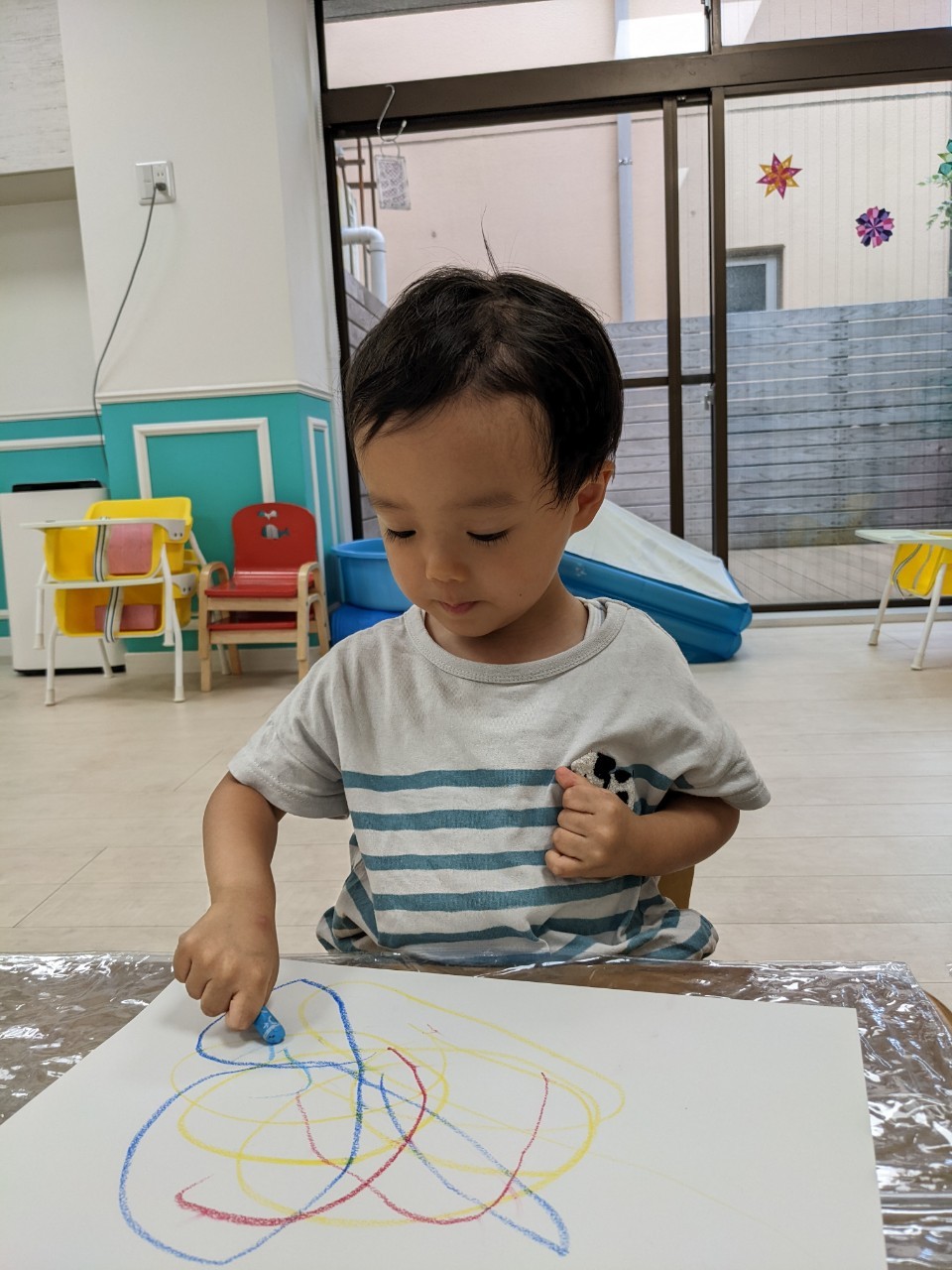 今日は、室内でゆっくり過ごしました☺️お絵描うきを楽しんでいます🖍✨どんな色がすき?🎶の歌を楽しくうたってます。