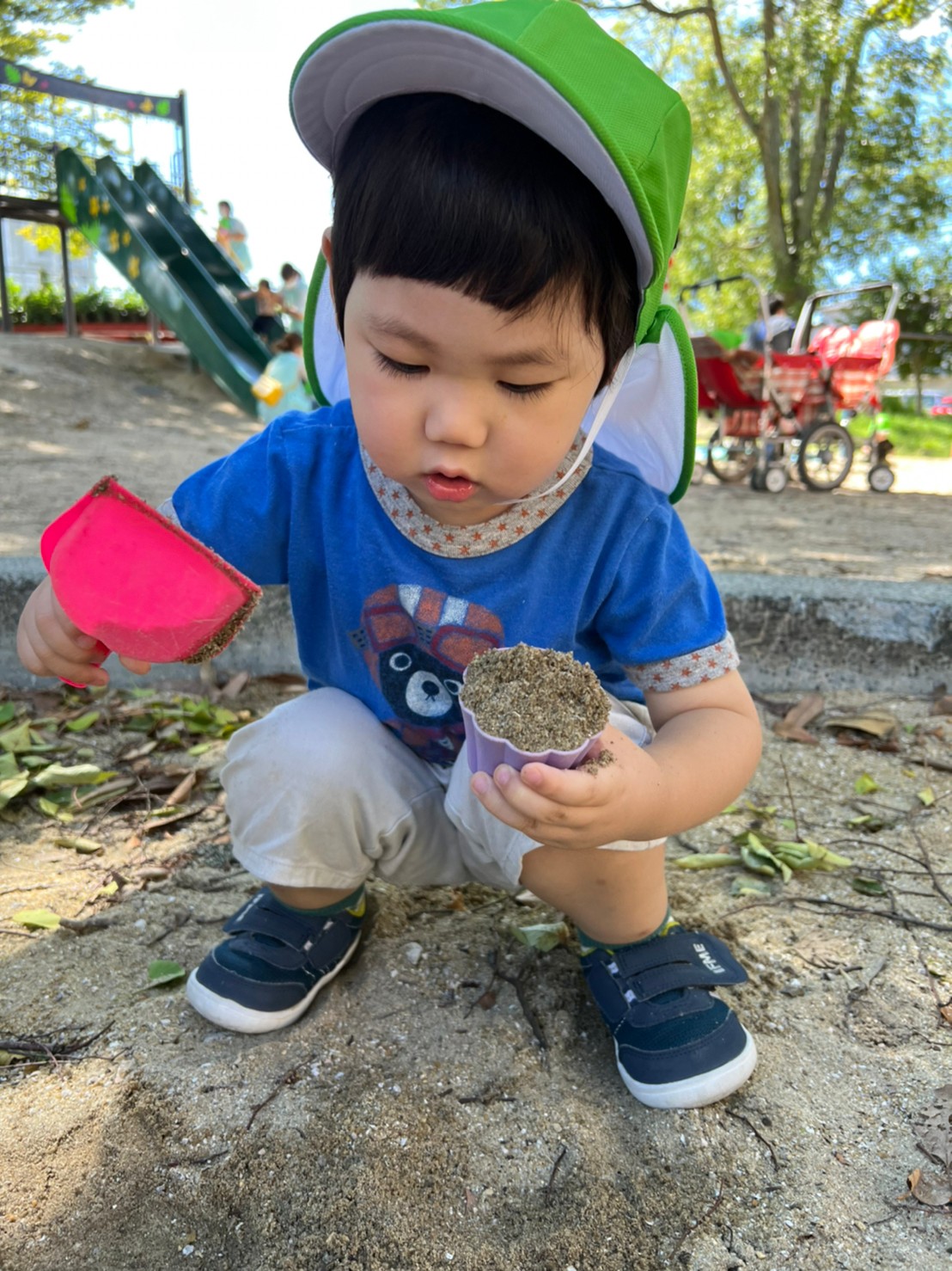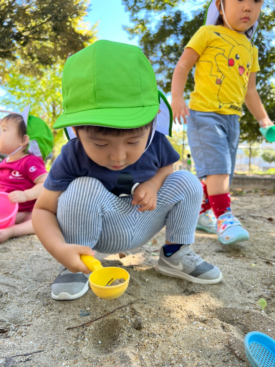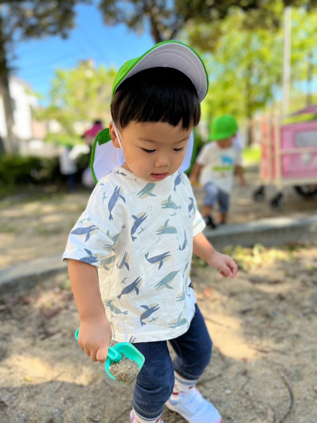 塩原西公園にいきました!他の園のお友達もいたので、砂場で遊びました!