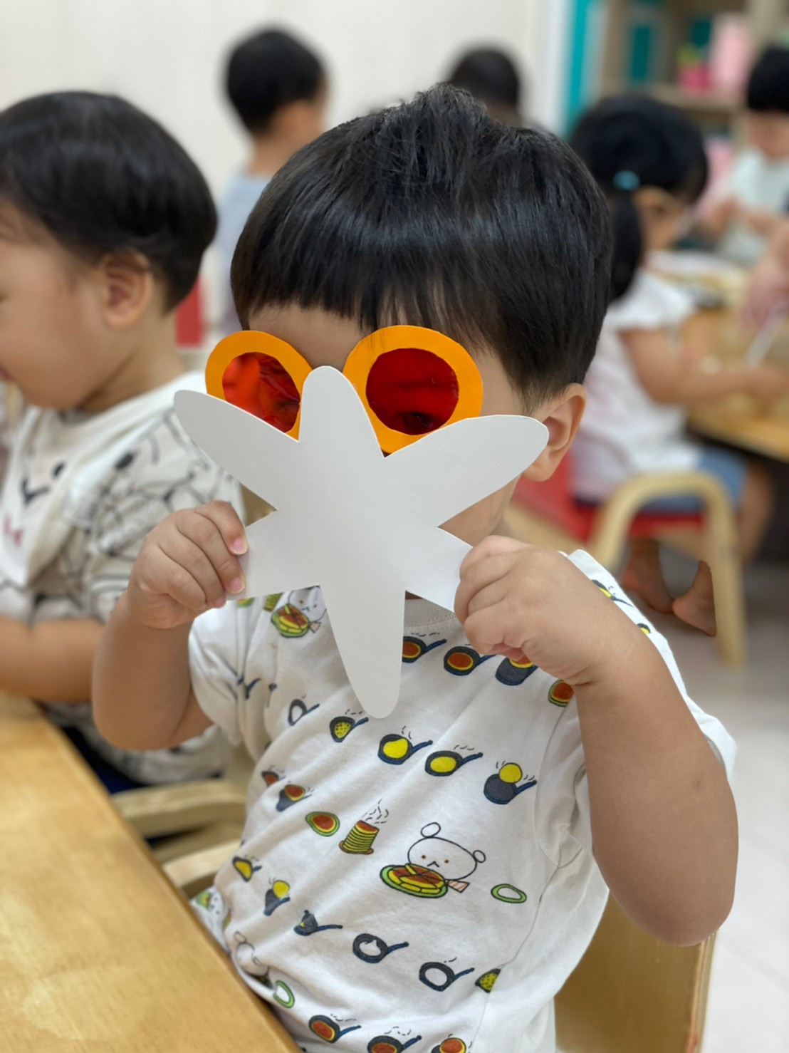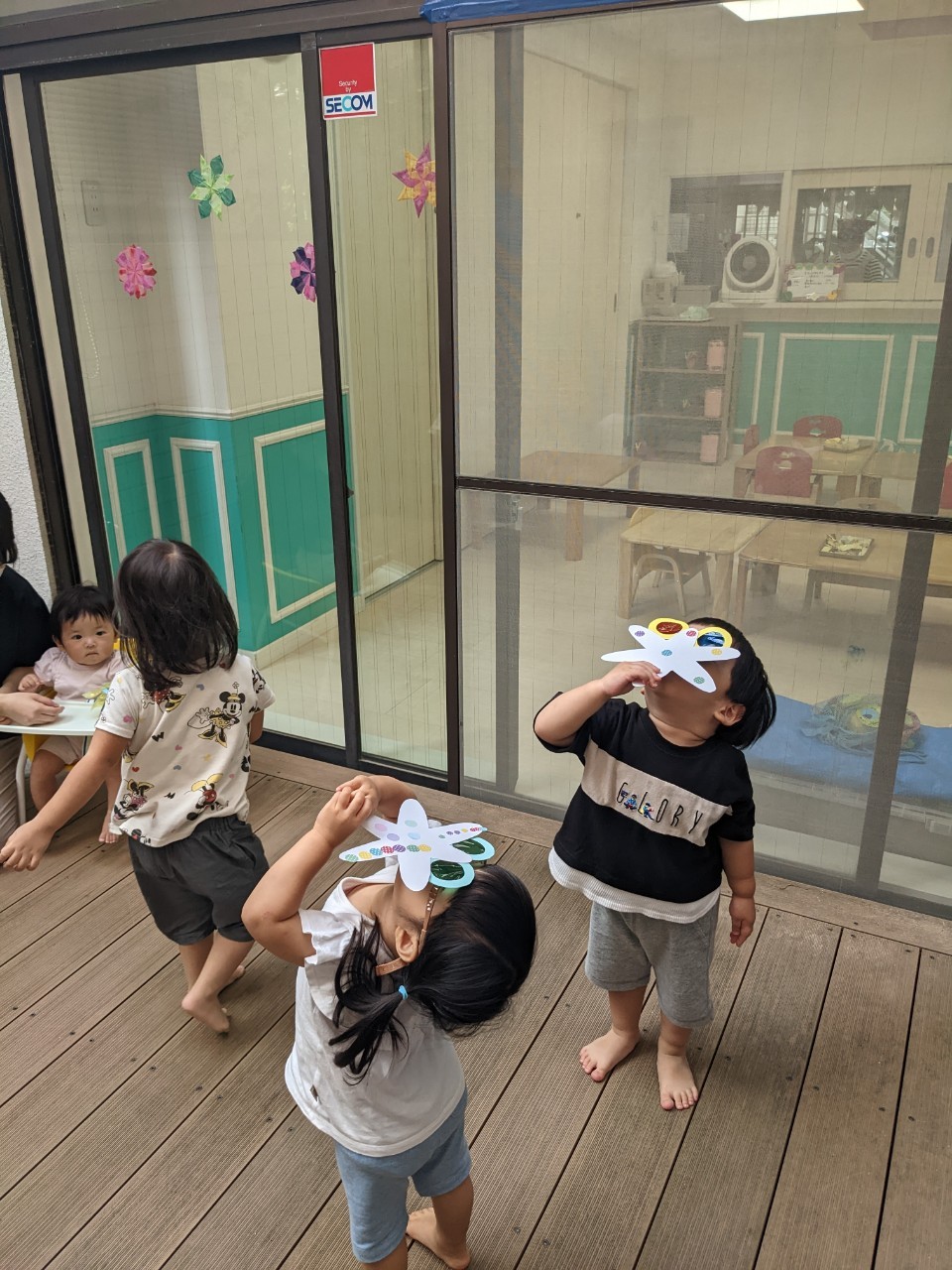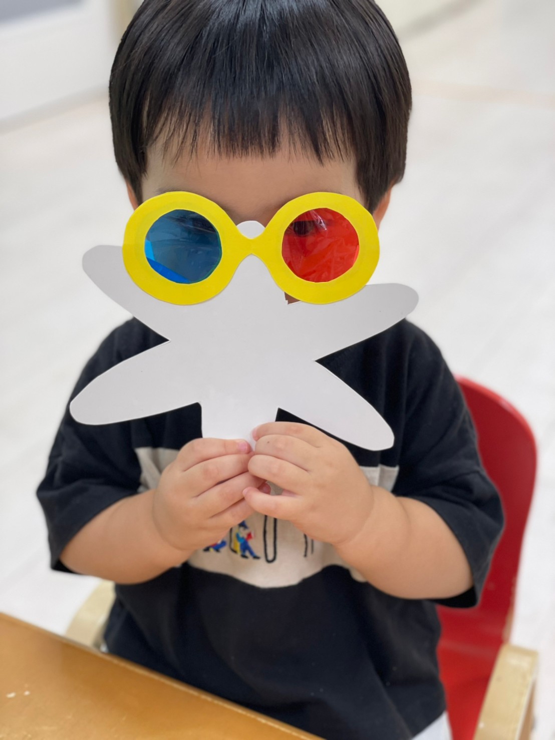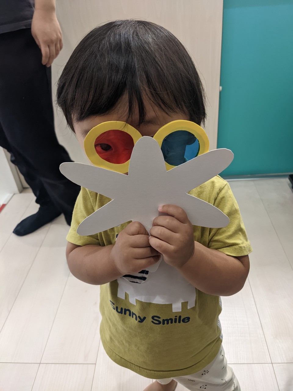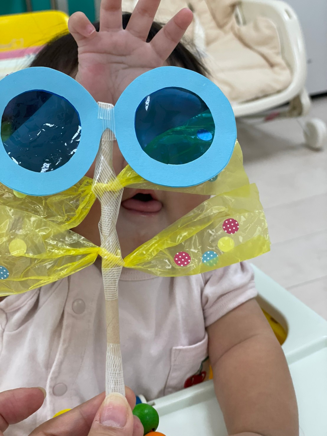 外にでて、色眼鏡で外を覗きましたよ👀何色に見えるかな~😆みんなかわいい🤭