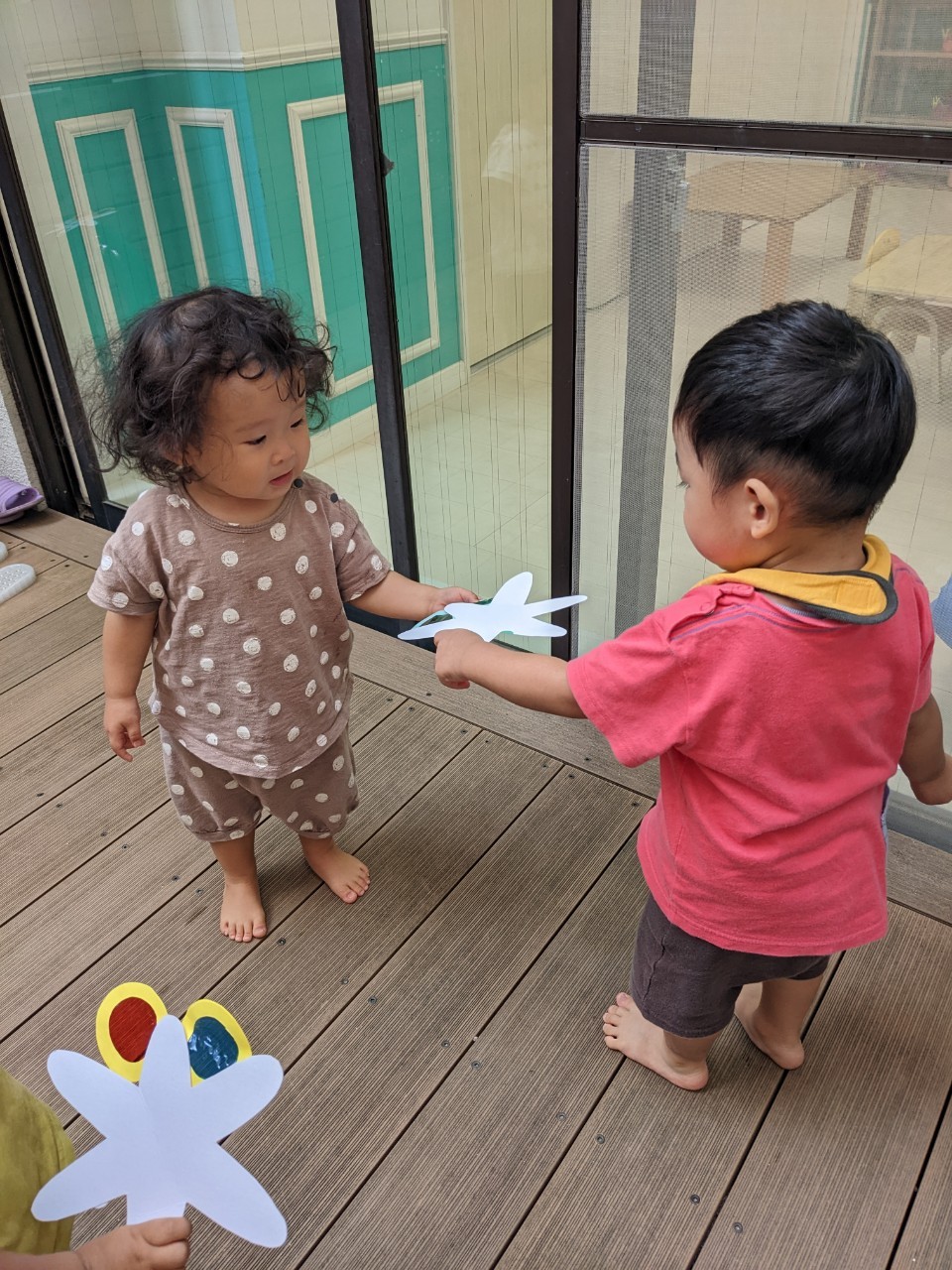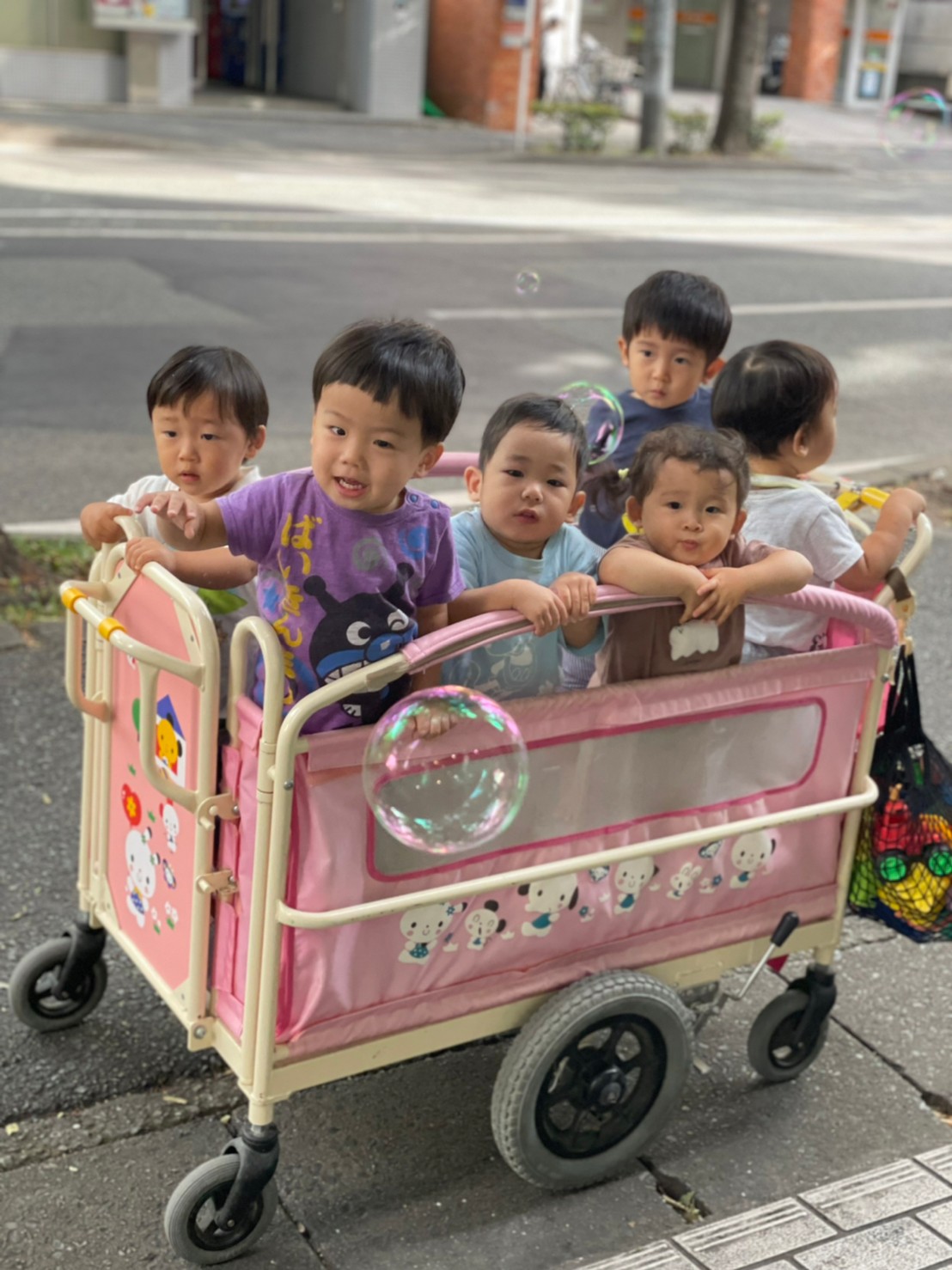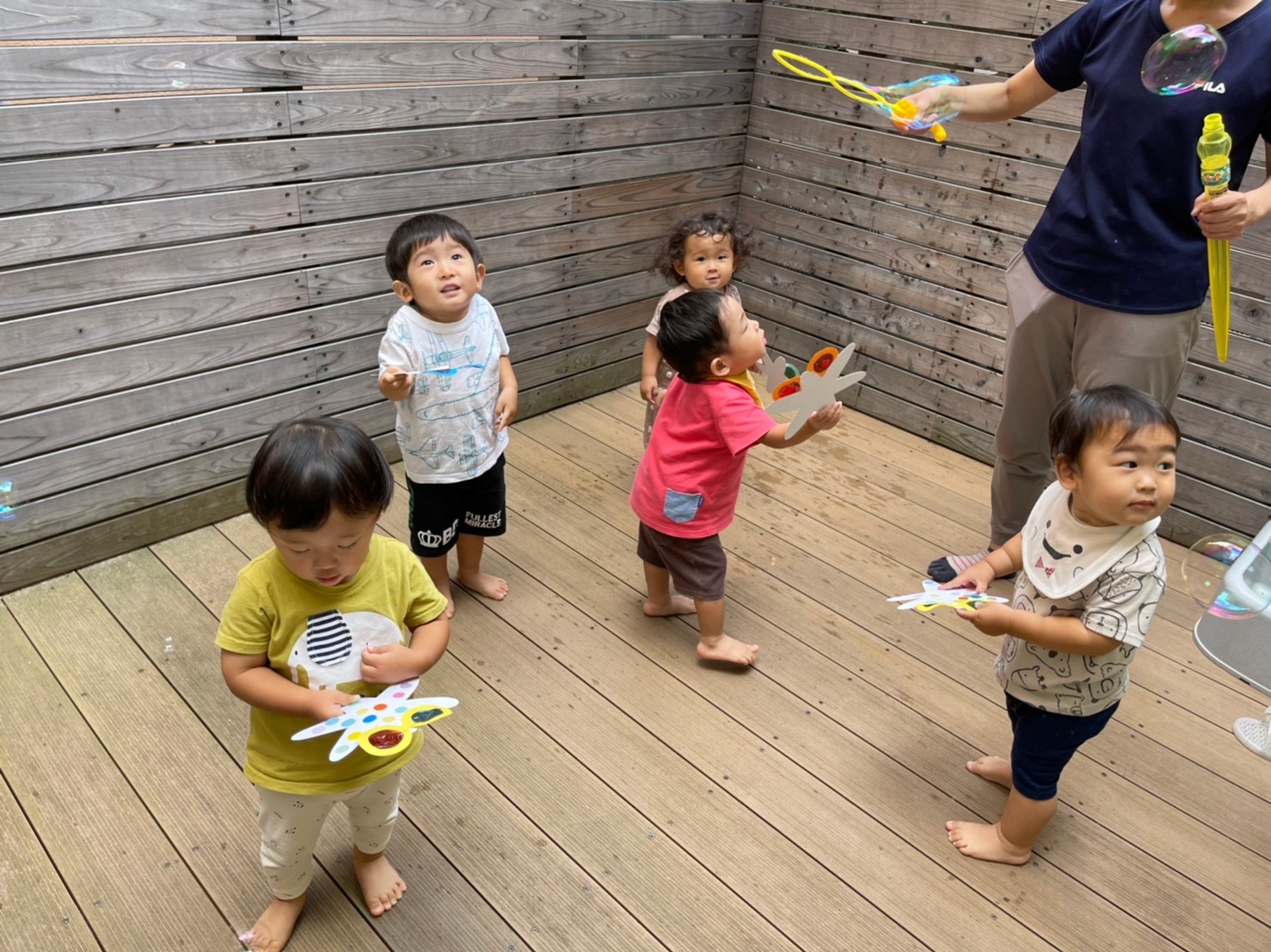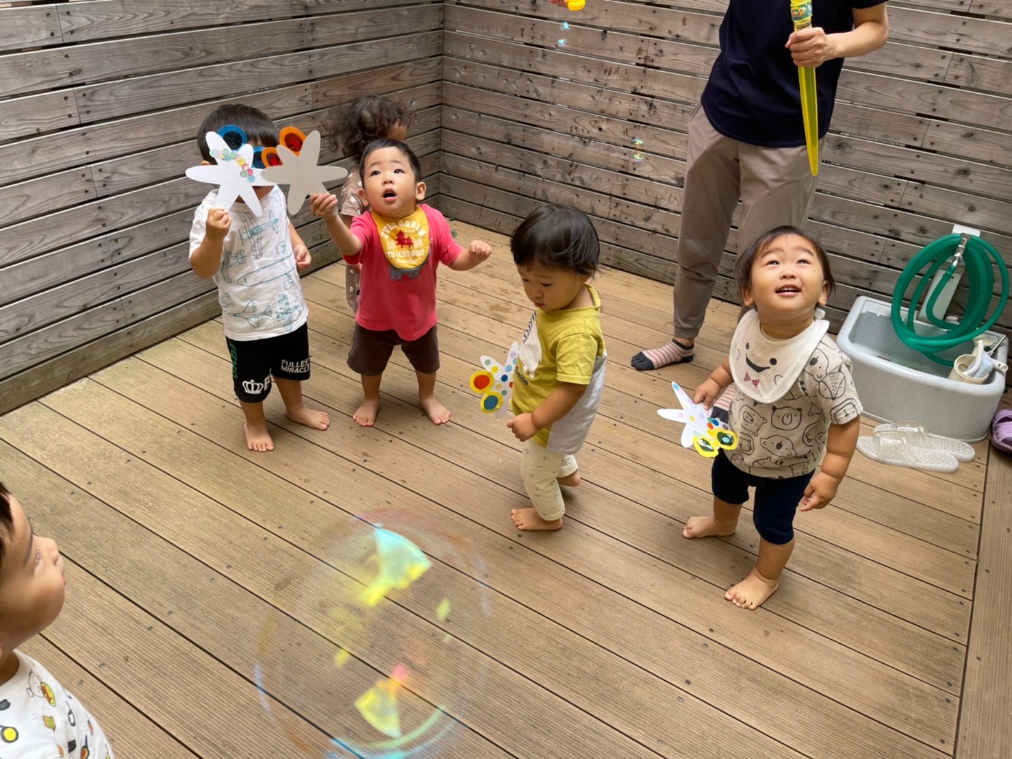 夕方、外気浴をしました✨シャボン玉楽しいね~❣️