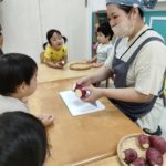 月曜日に芋掘りごっこをしたので本物のさつまいもに触れて嬉しそうな子どもたちでした😊