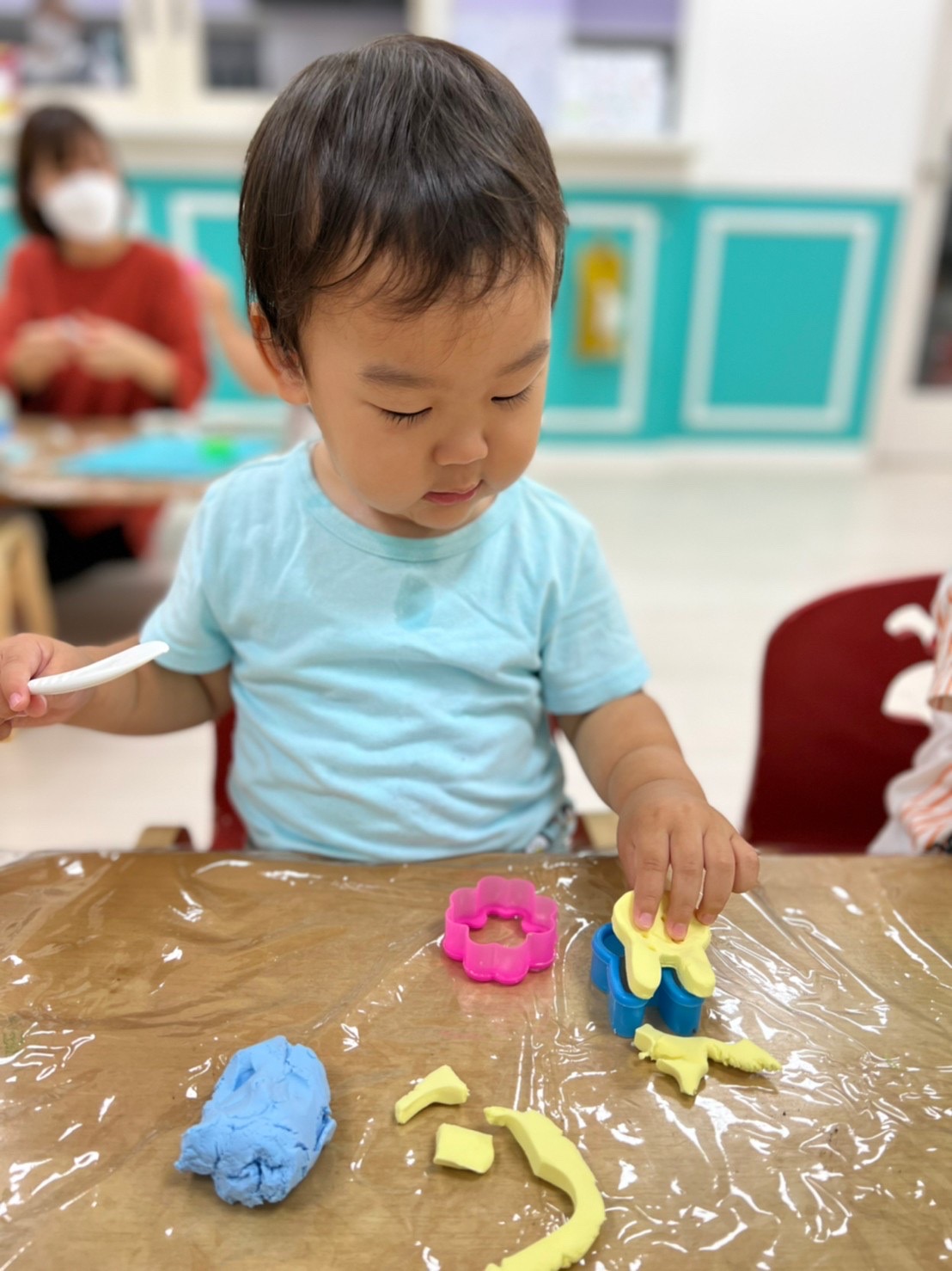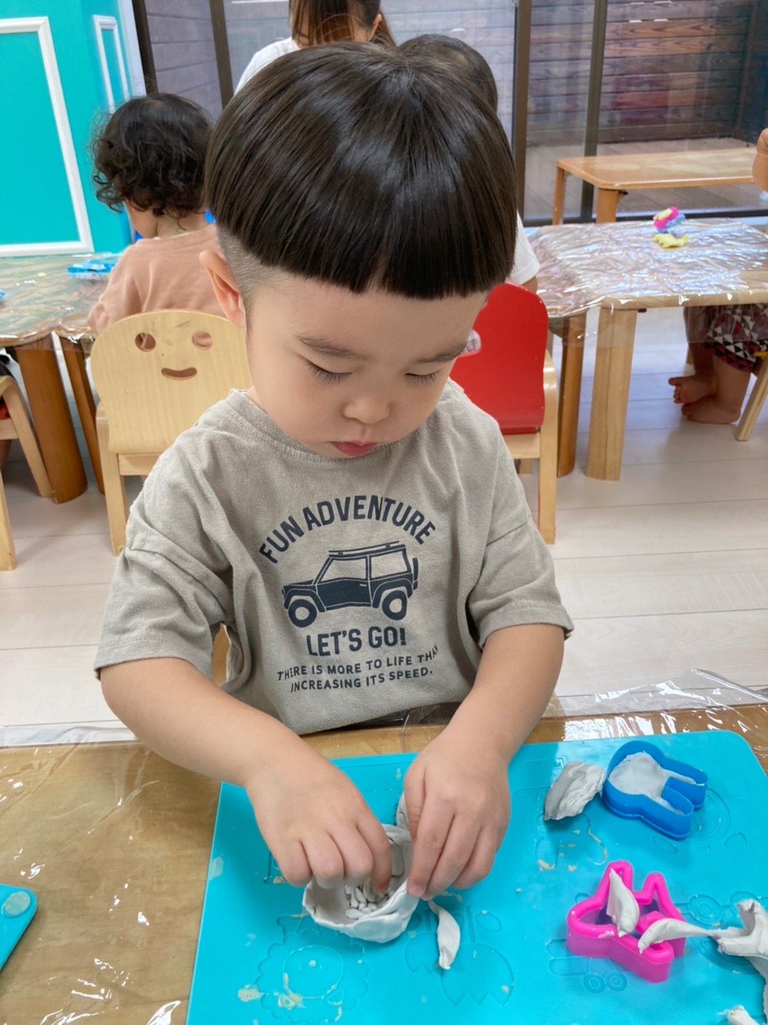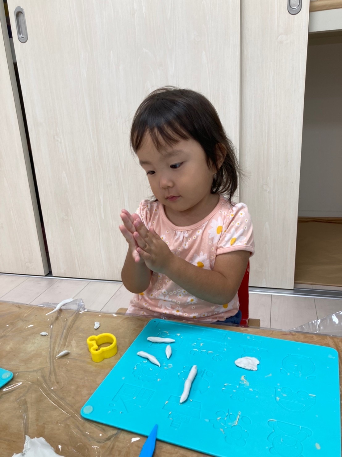 型や粘土ベラを使い粘土遊びを楽しみました😊