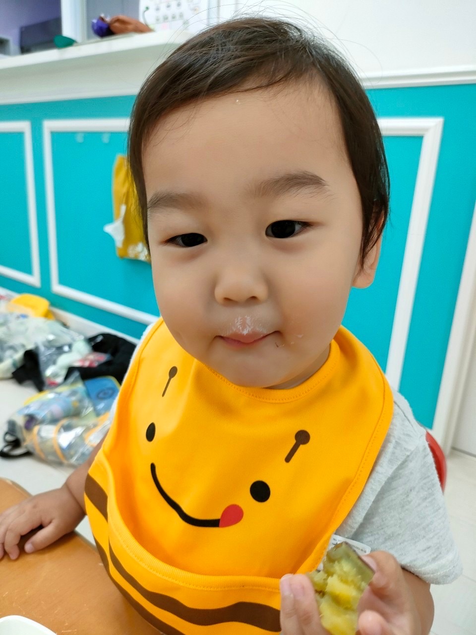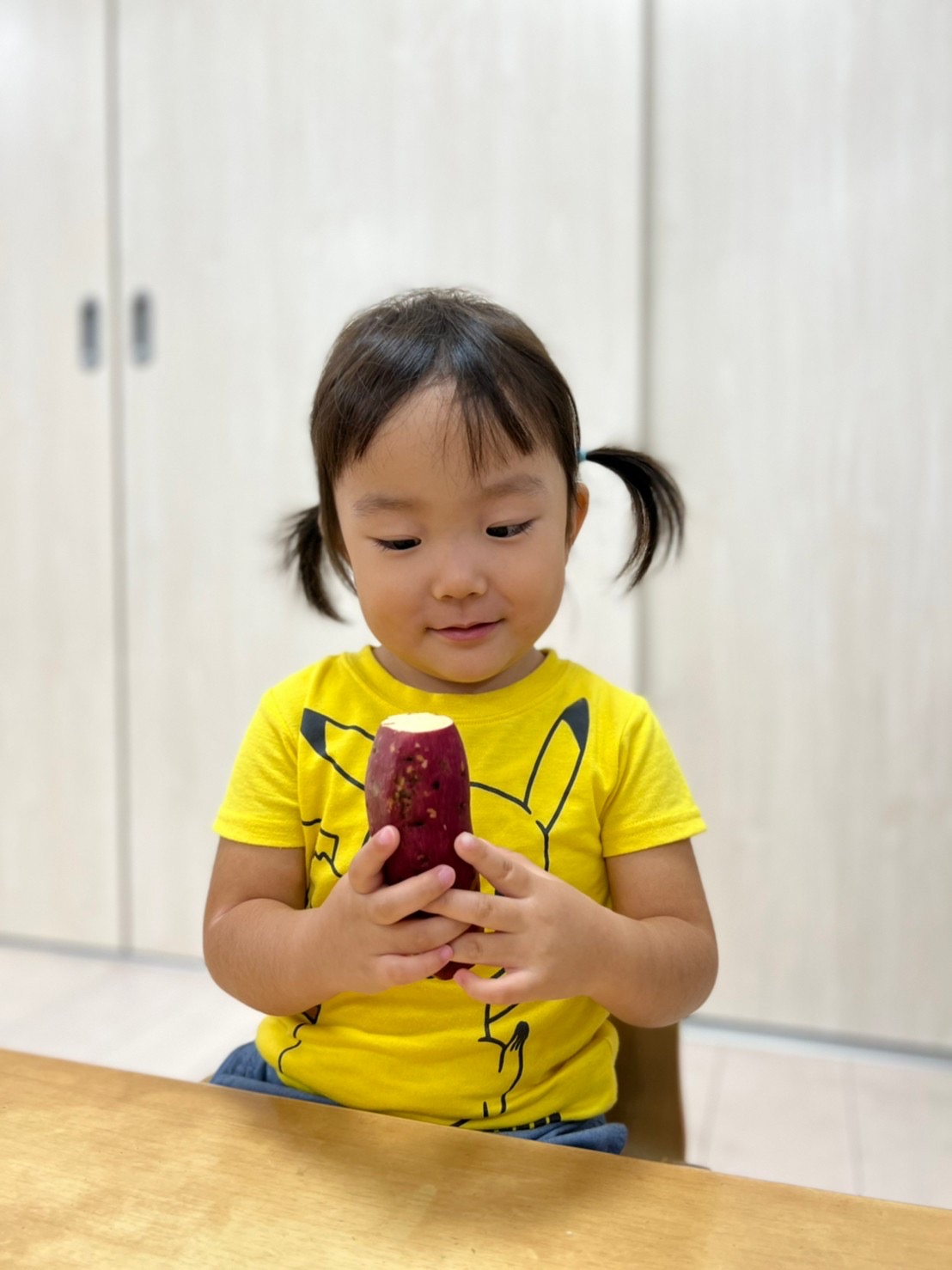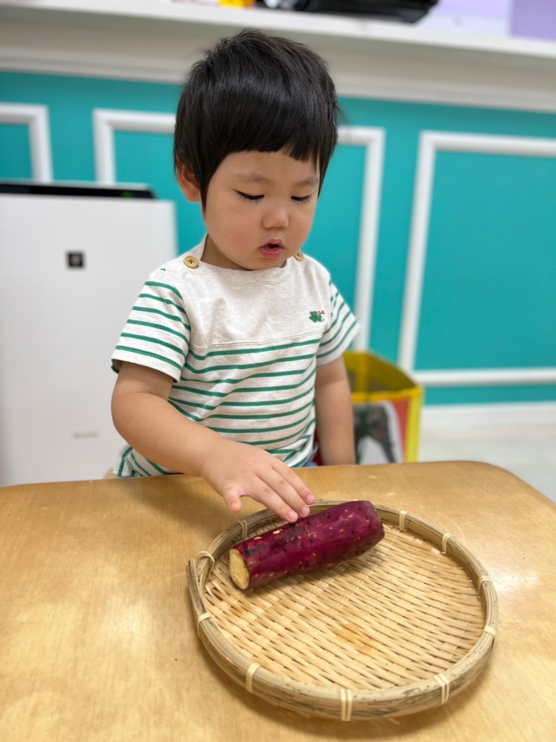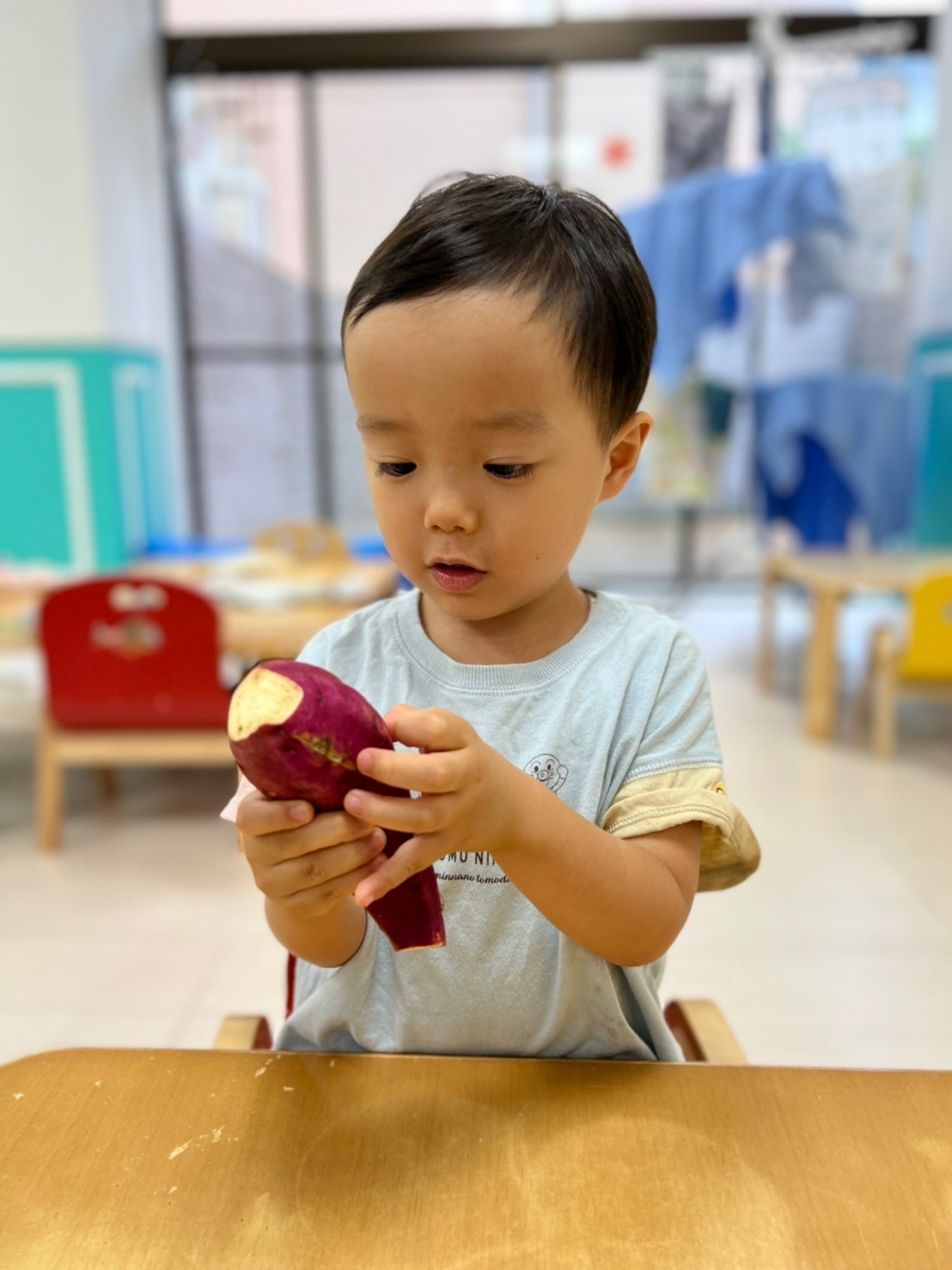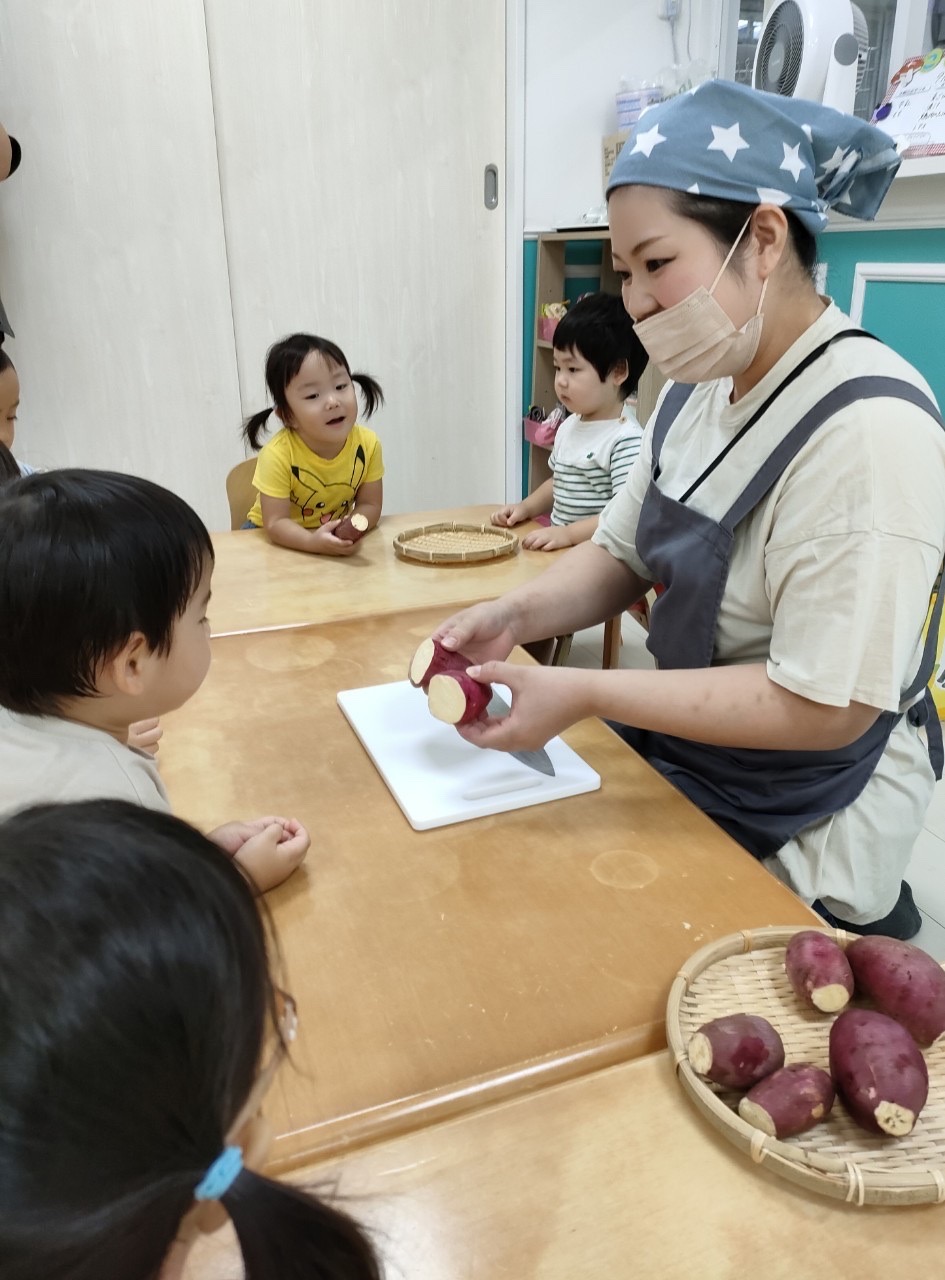 月曜日に芋掘りごっこをしたので本物のさつまいもに触れて嬉しそうな子どもたちでした😊