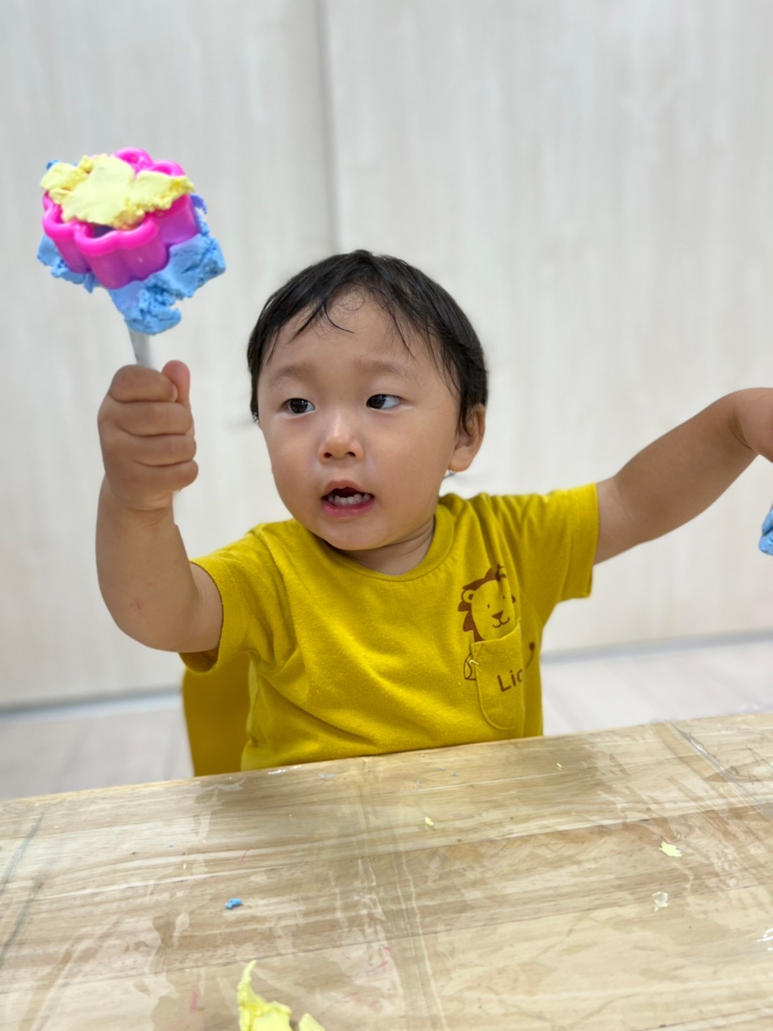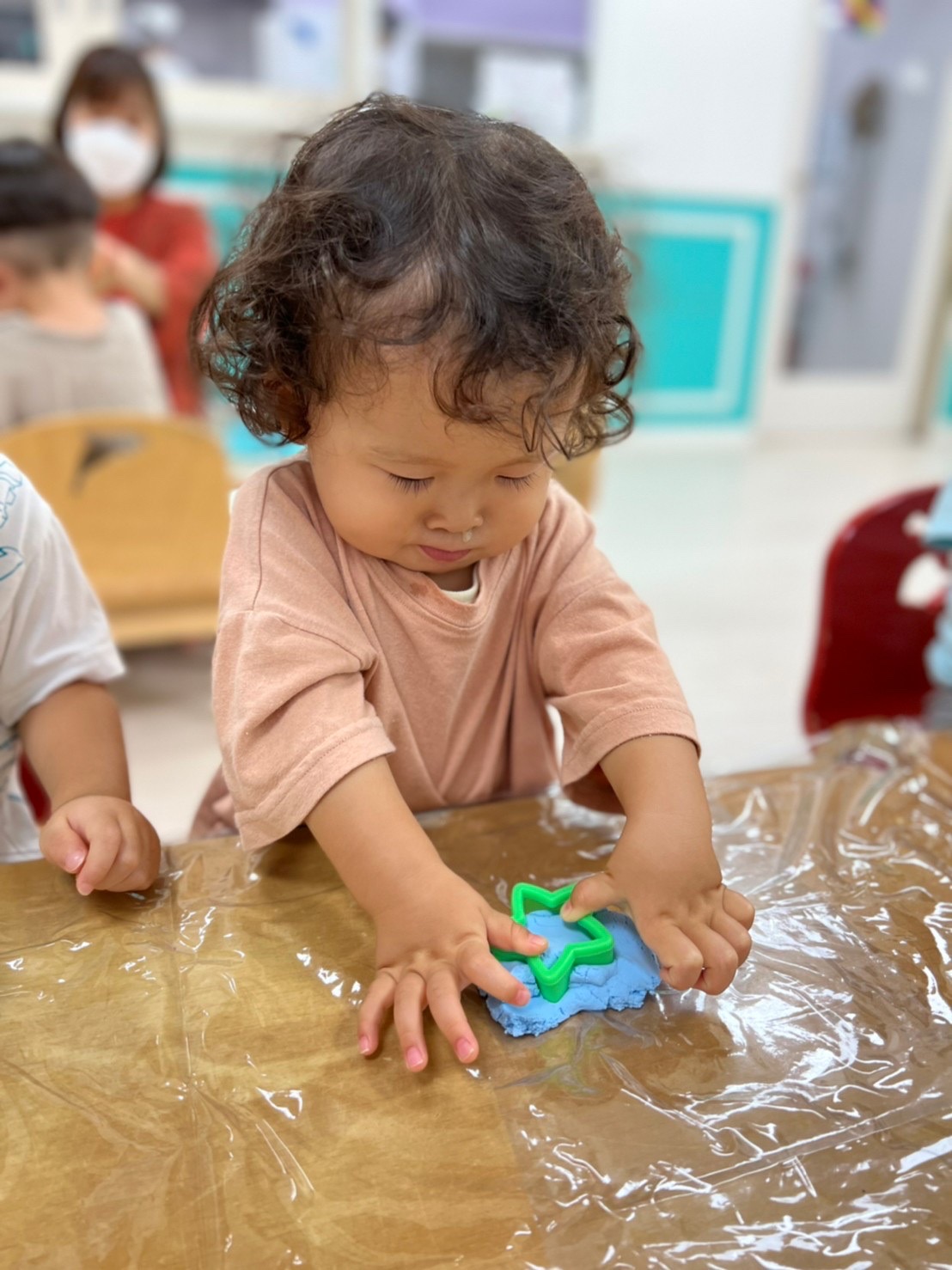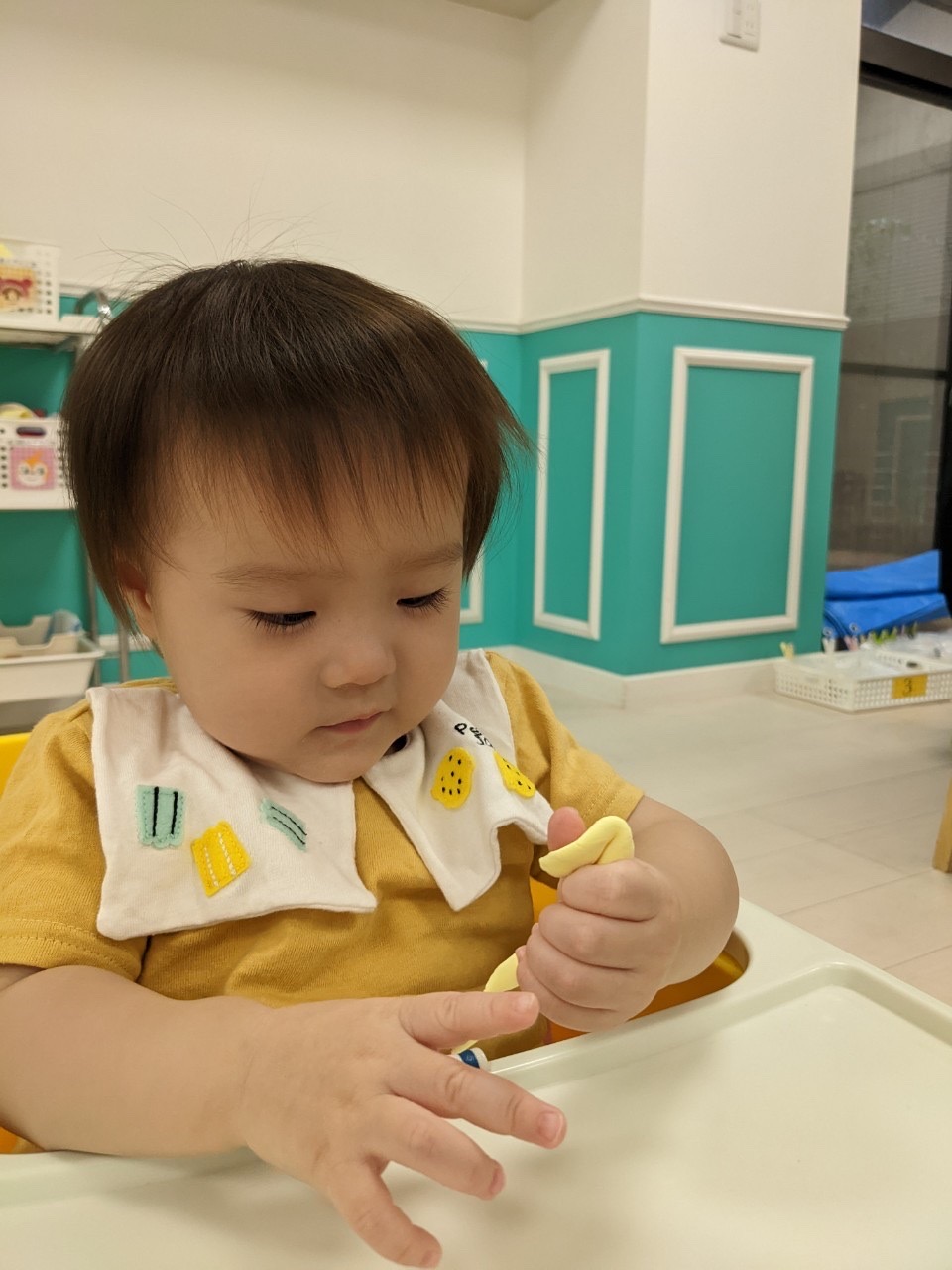 粘土を触って感触を楽しんでいましたよ😳
