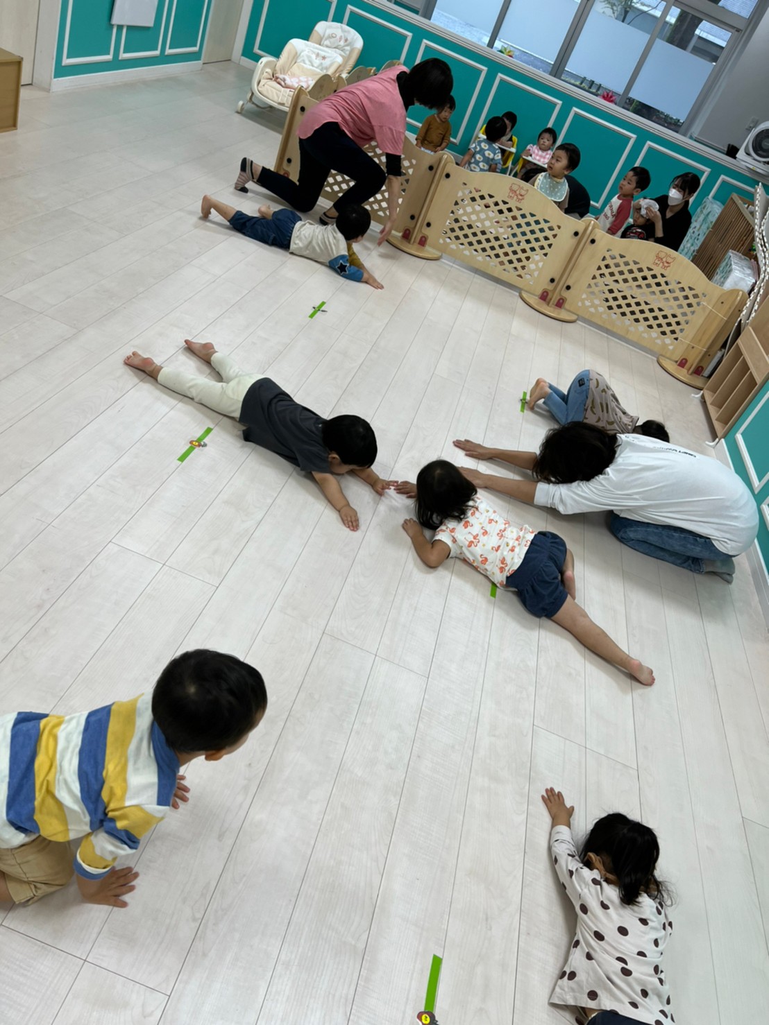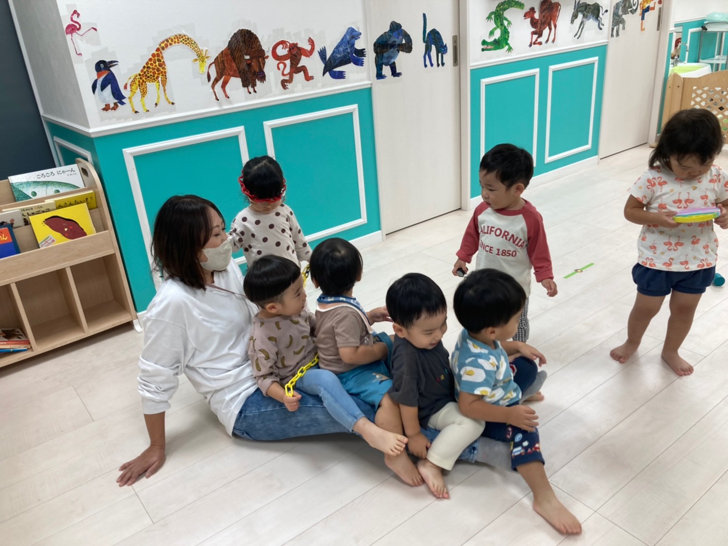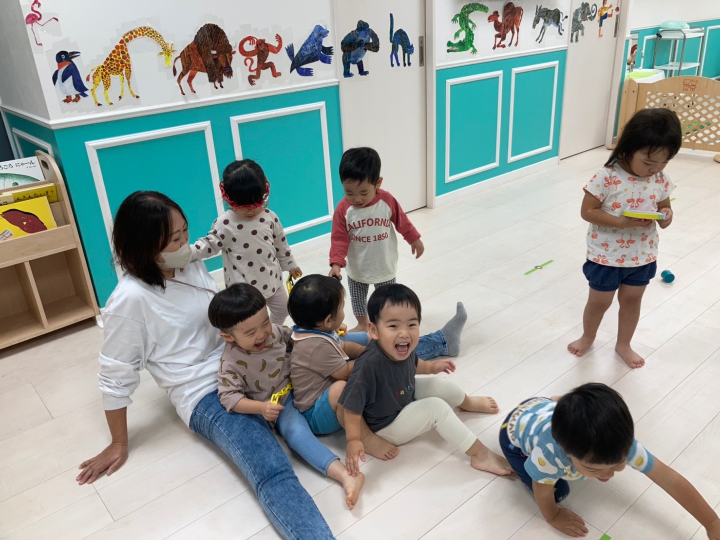 朝の時間……先生とふれあい遊びをして、大笑い~😂
