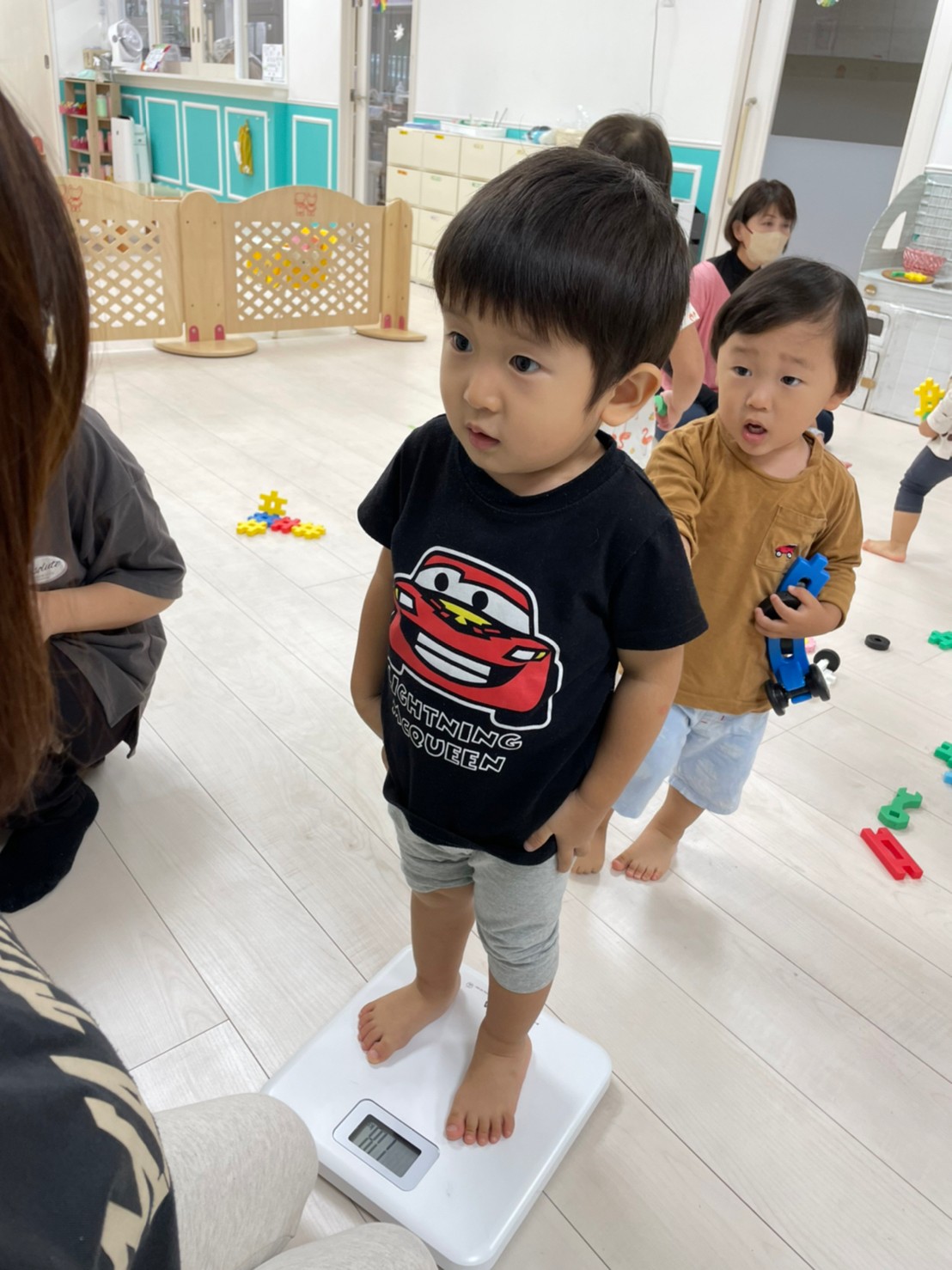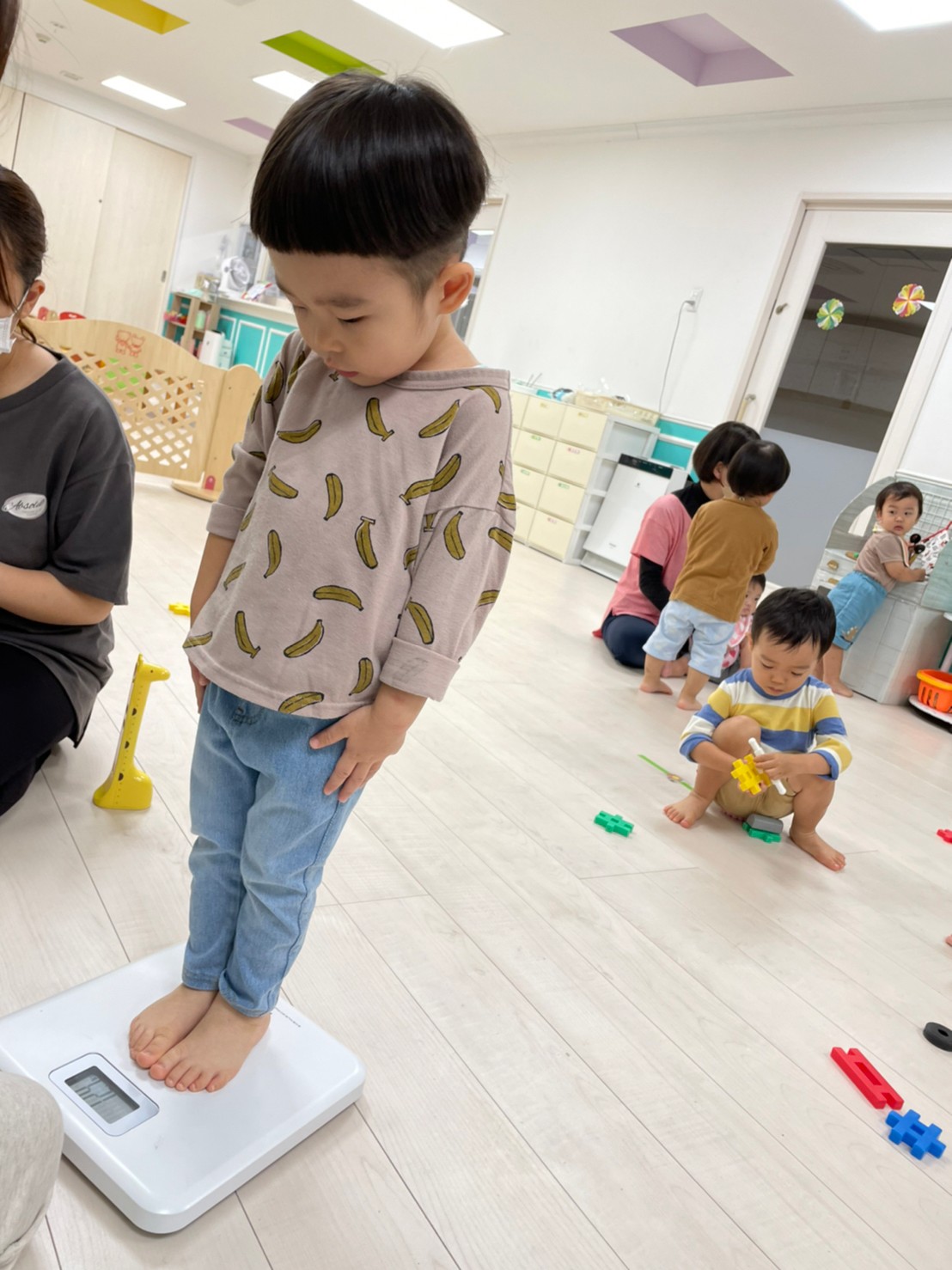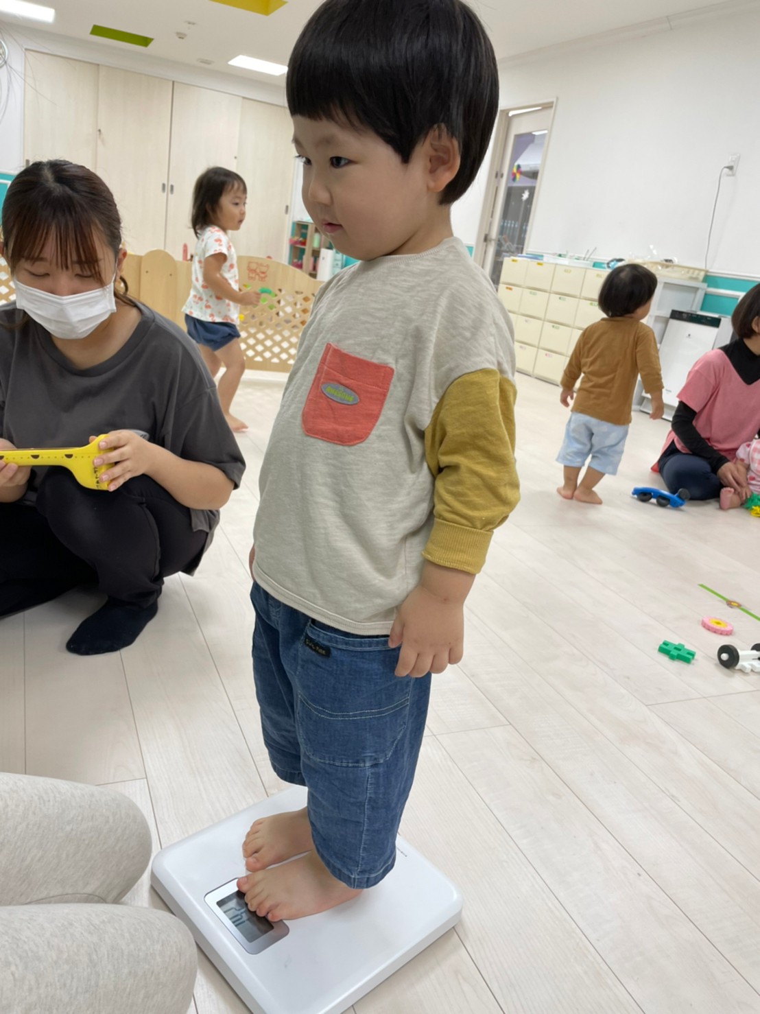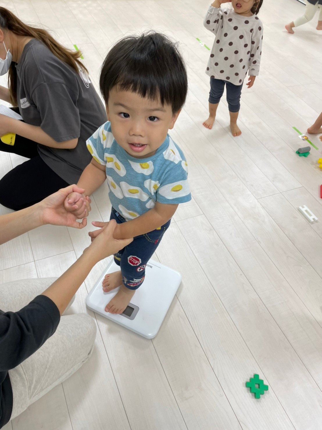 今日は、身体測定をしました!10月は頭囲と胸囲もはかりました。すくすく成長してますね☺️