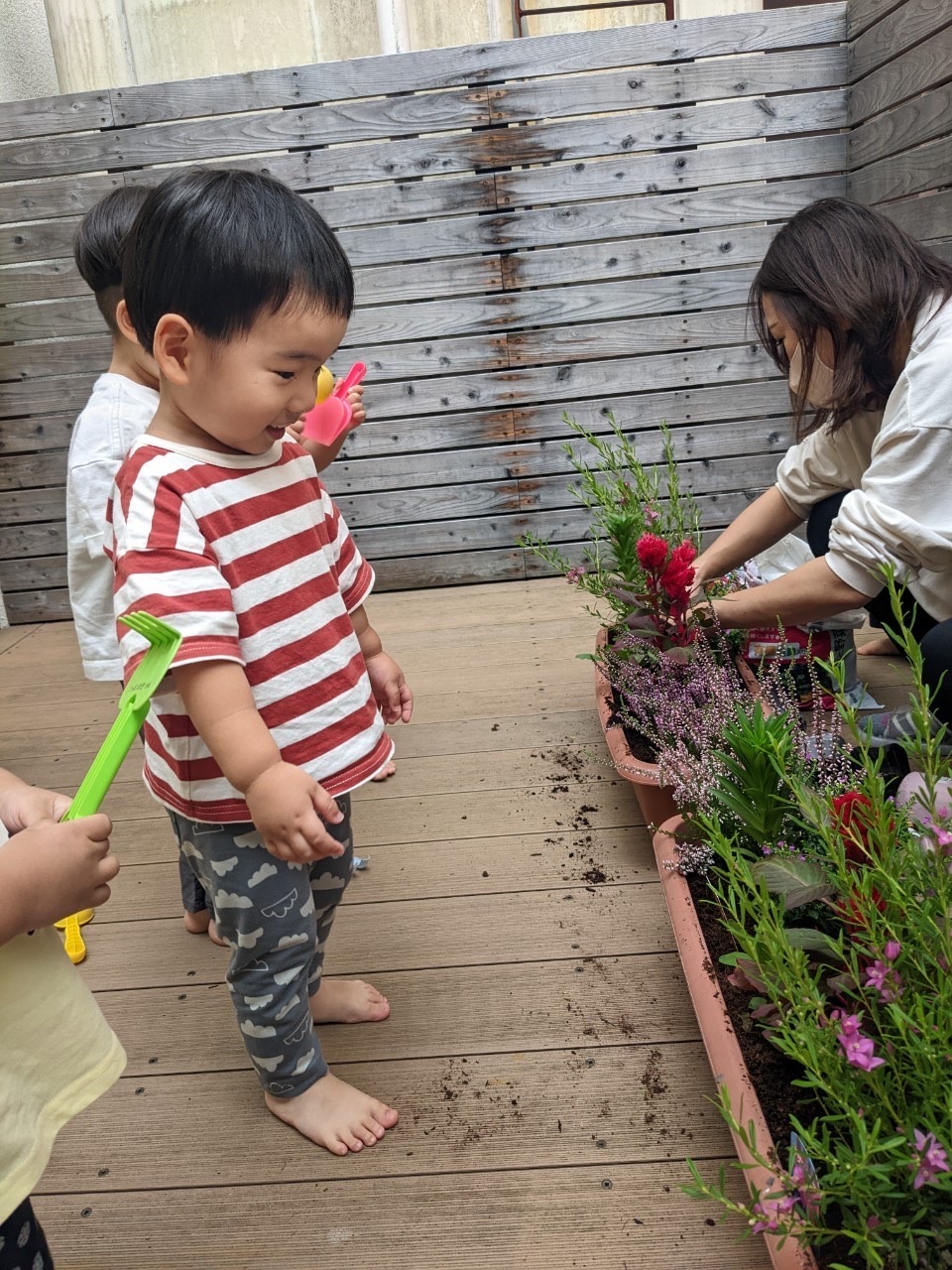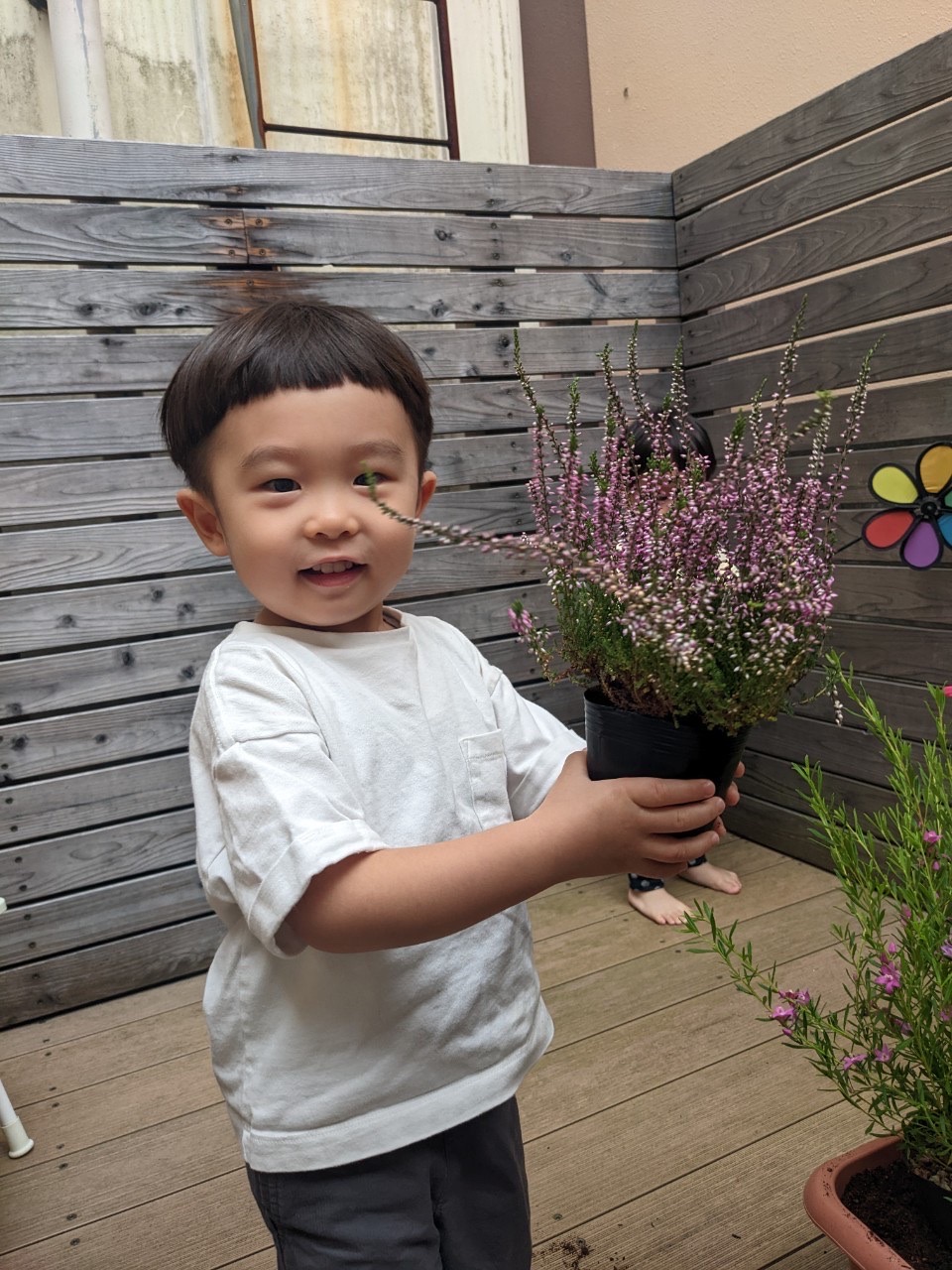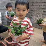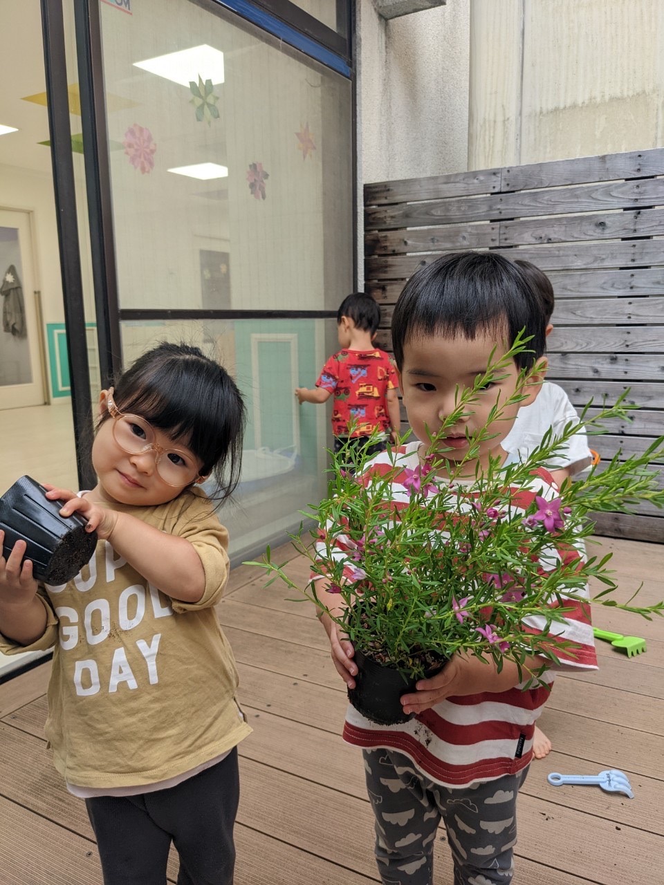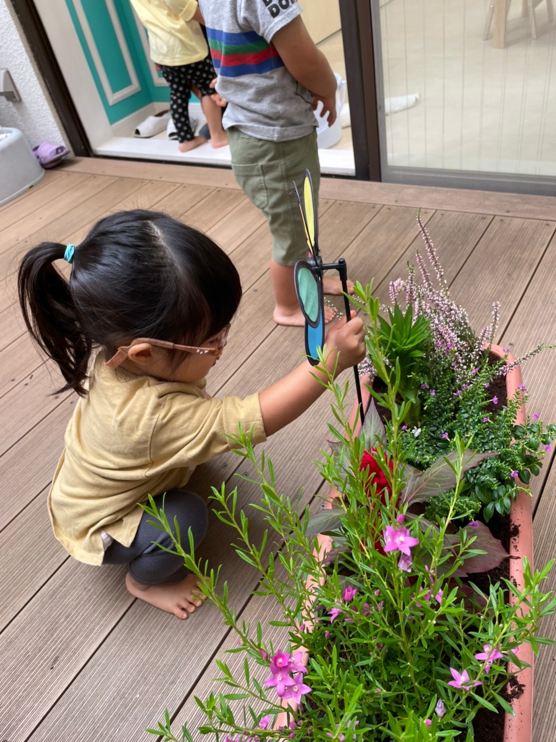 夕方、テラスで、プランターにお花を植えました🌼*・水やり頑張ろうね⸜🌷︎⸝‍