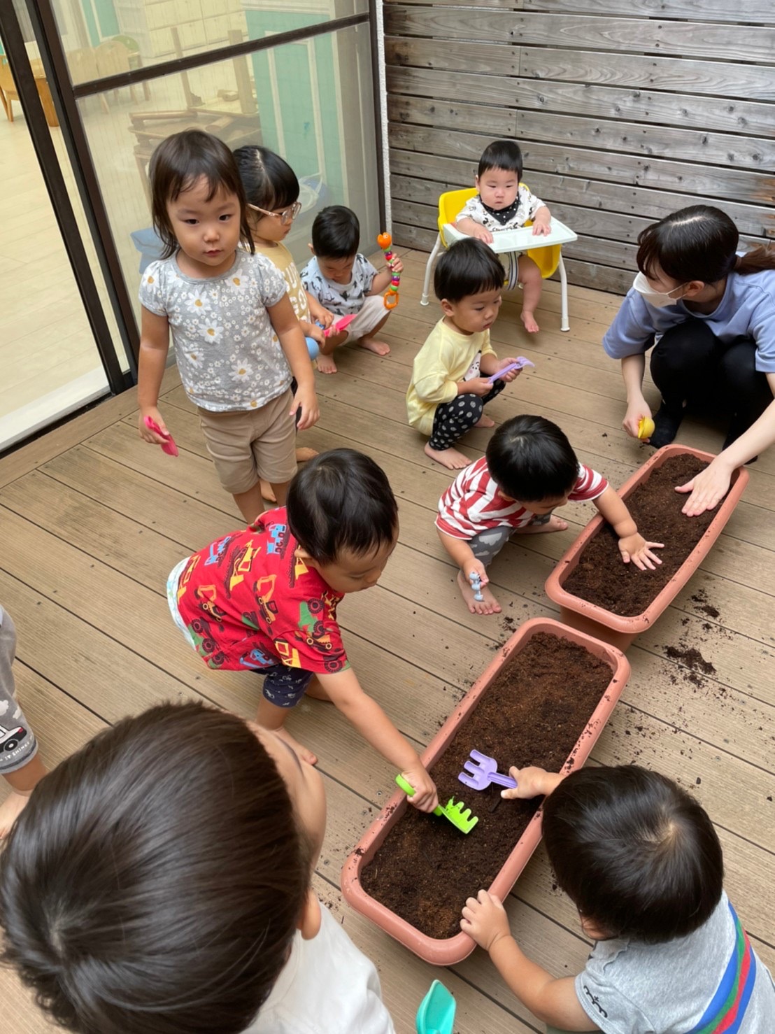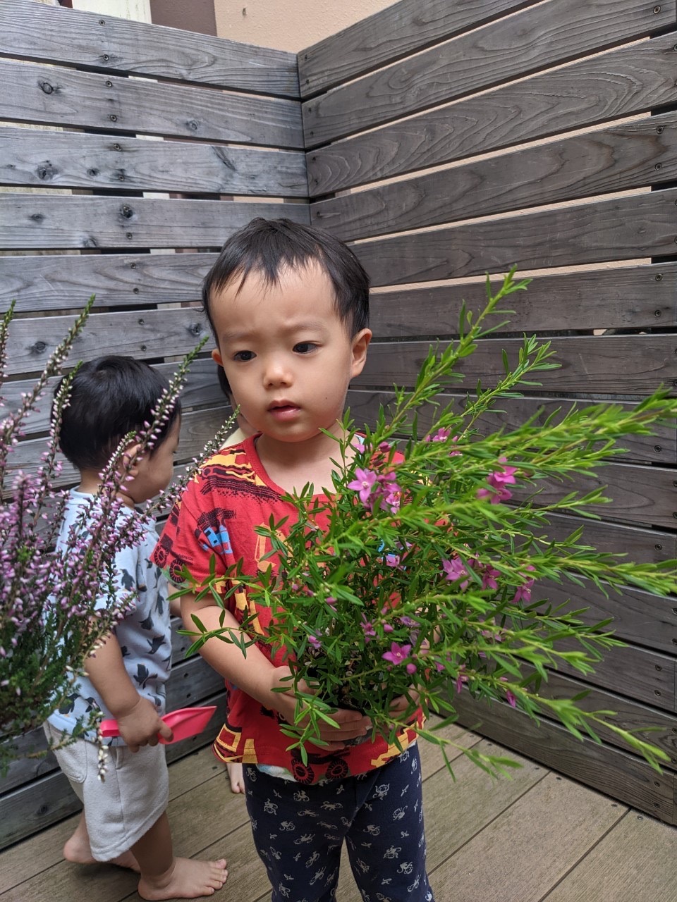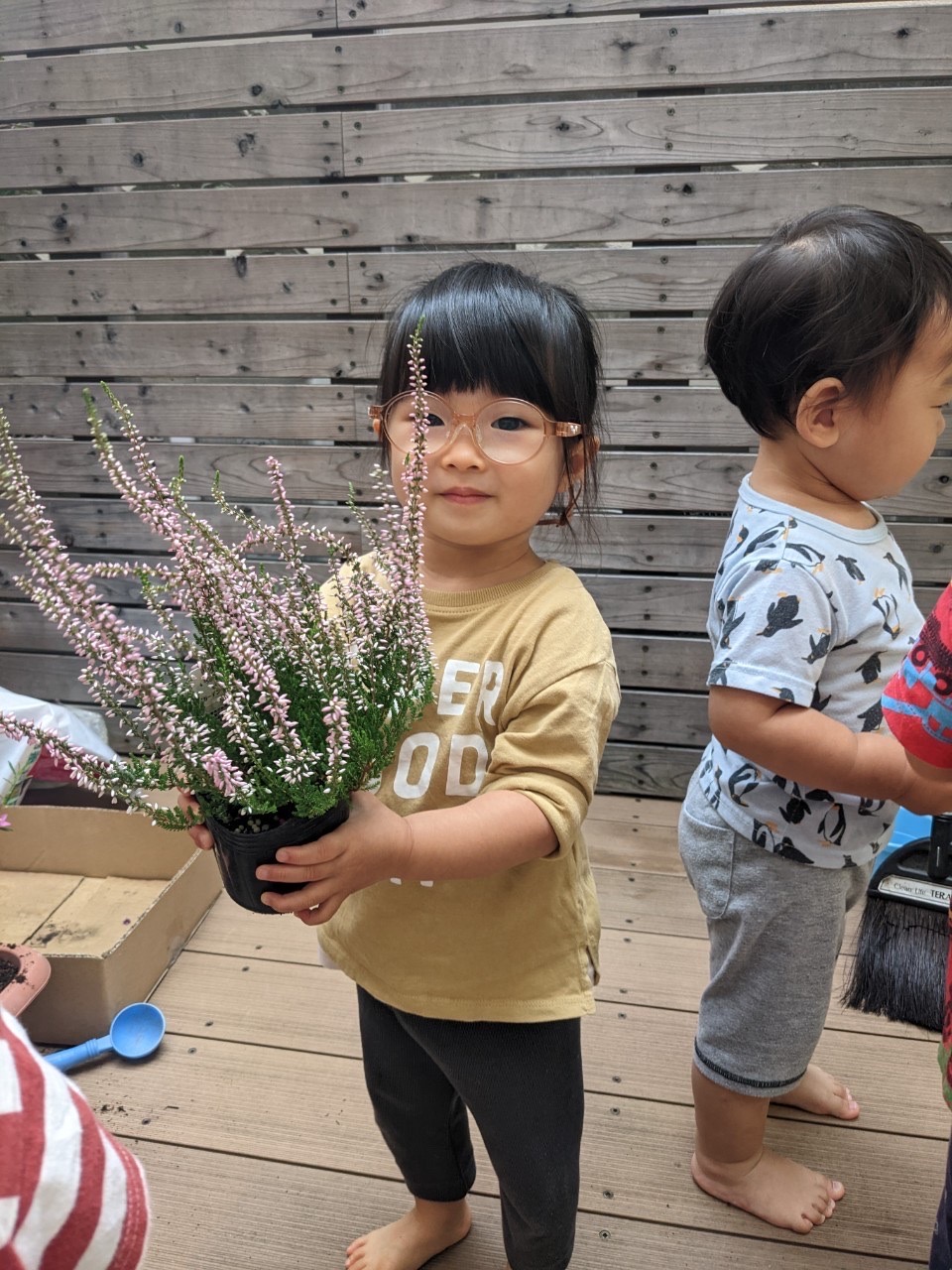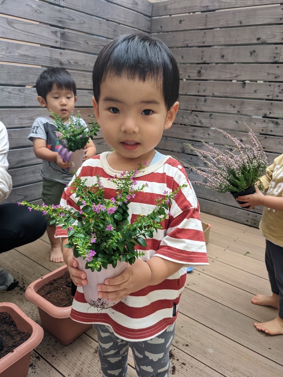 夕方、テラスで、プランターにお花を植えました🌼*・水やり頑張ろうね⸜🌷︎⸝‍
