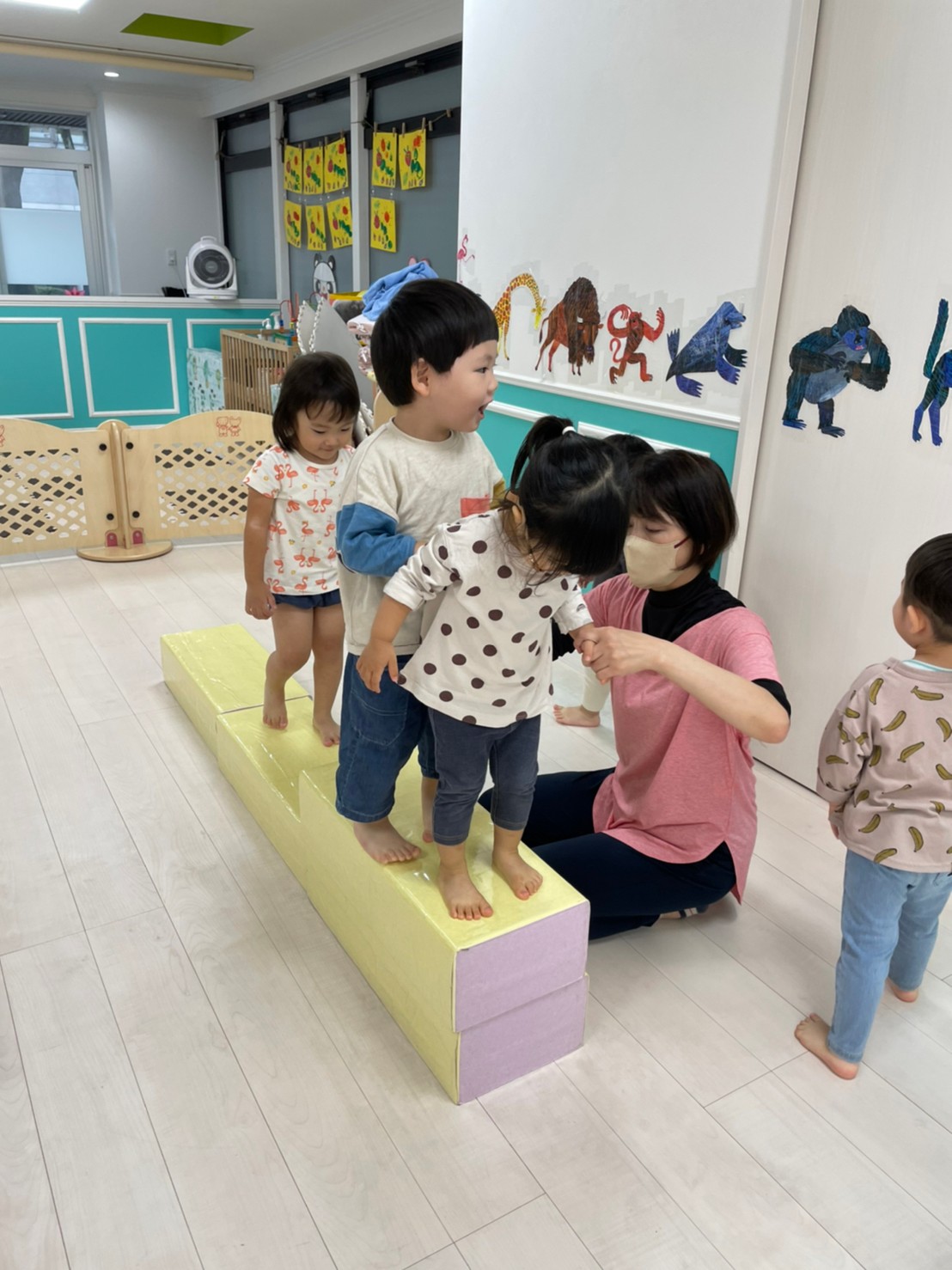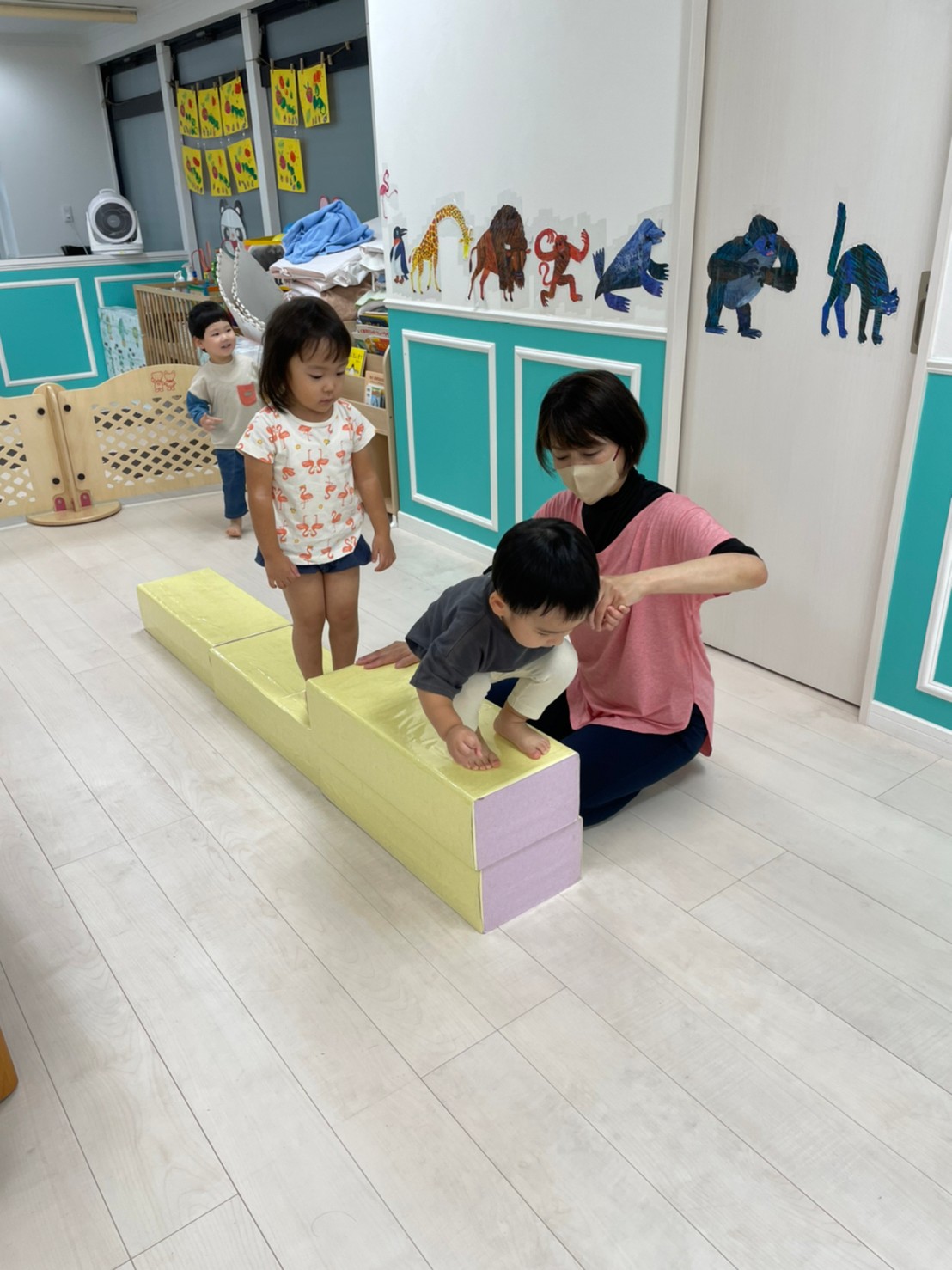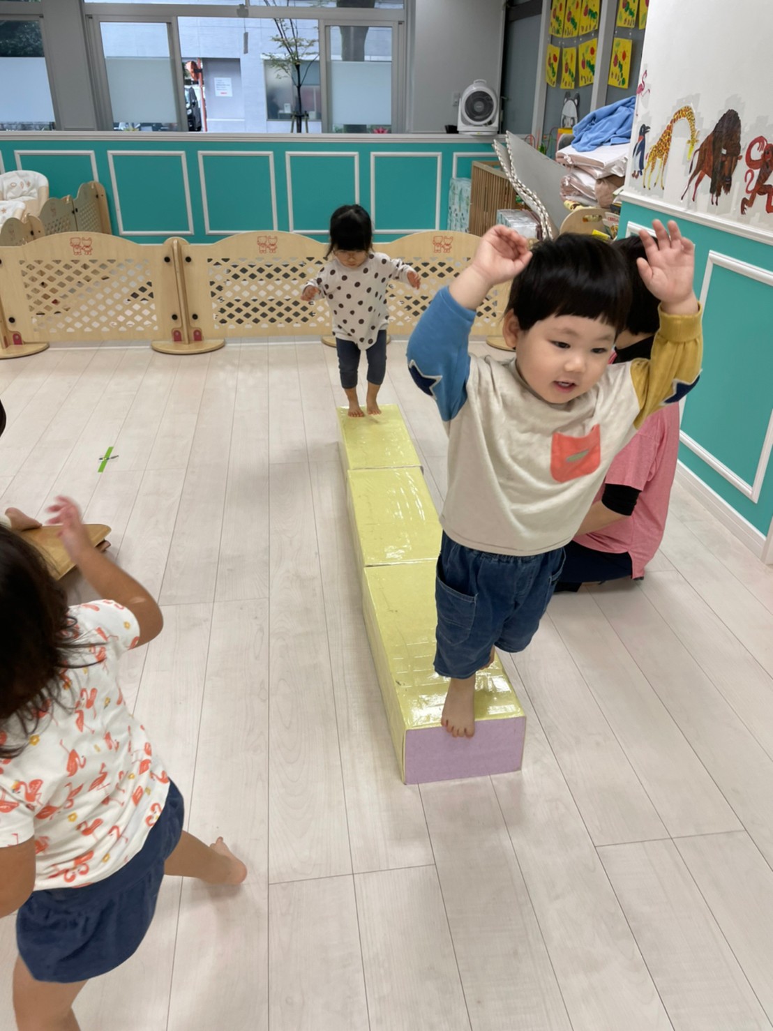 パンダ組さんは、運動遊びをしましたよ!平均台を高くして、最後はジャンプ!!
