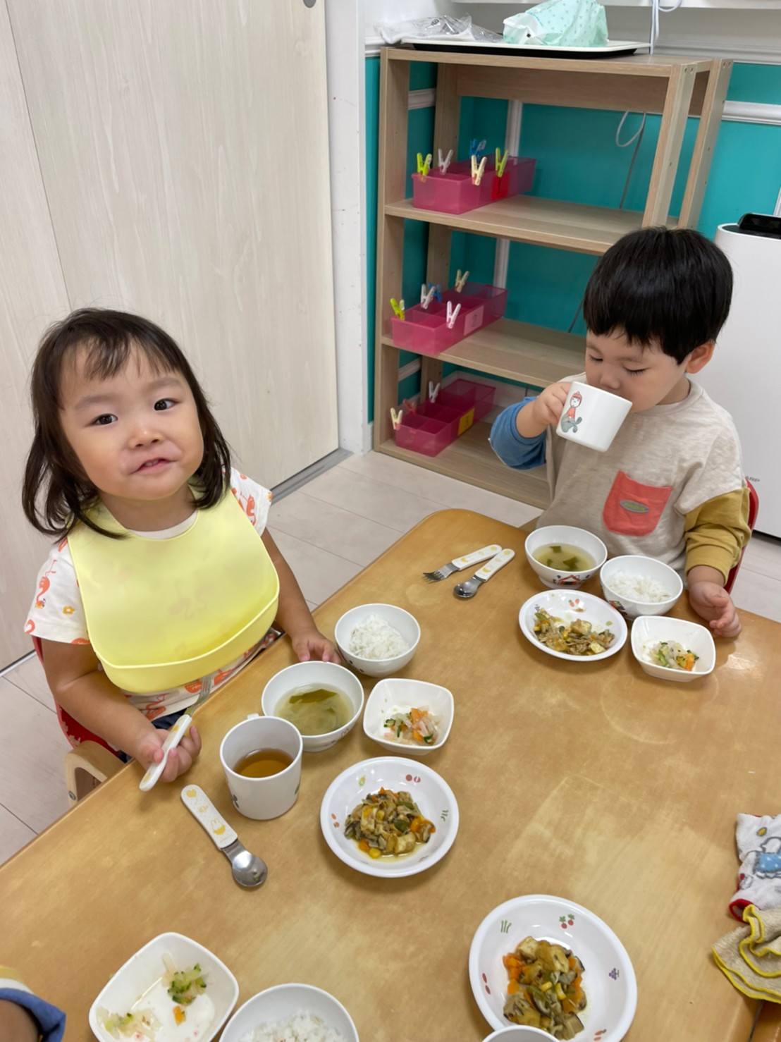 給食の時間……美味しいね~💕😋