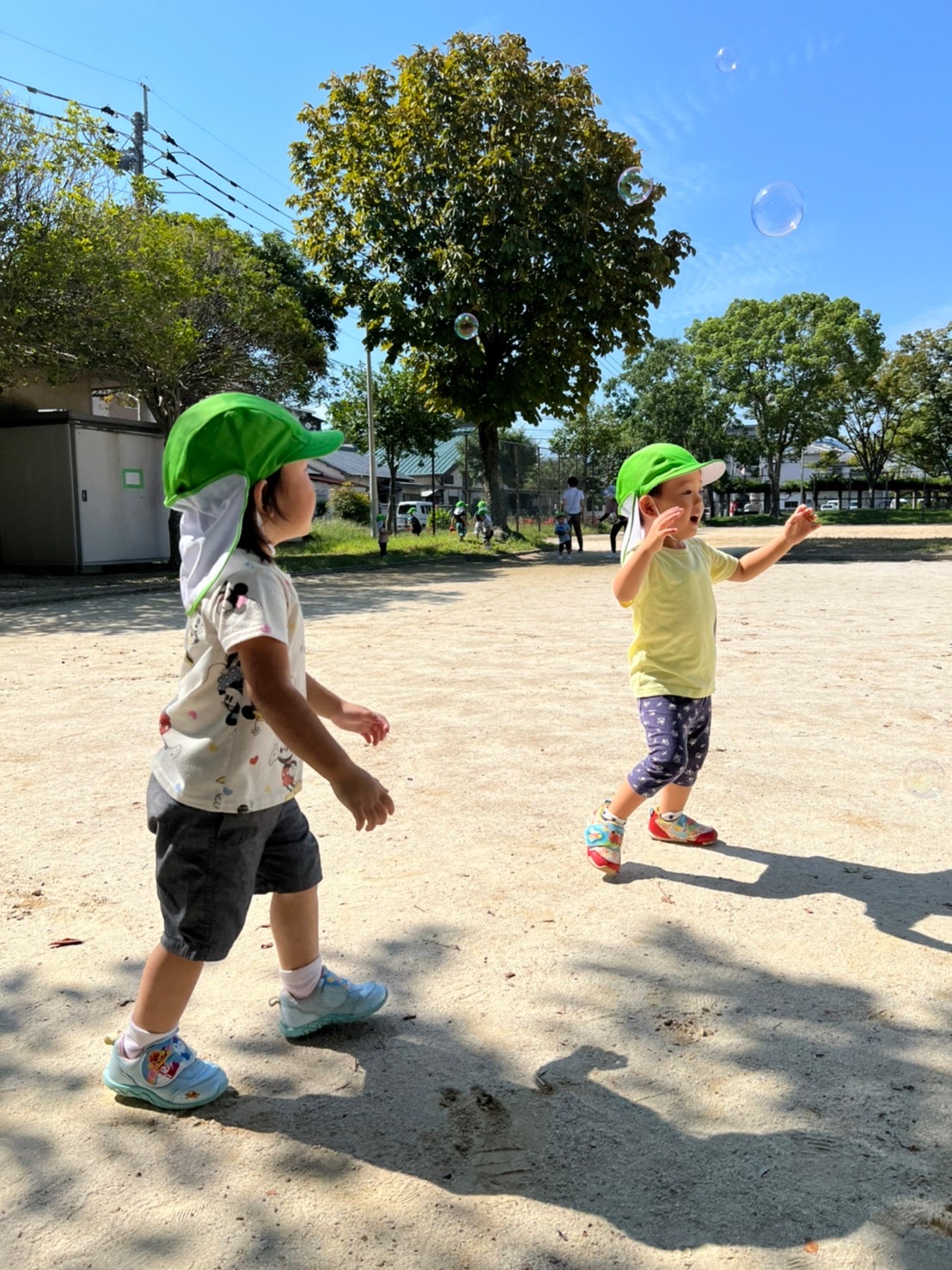 シャボン玉をして戸外遊びを楽しみました😊