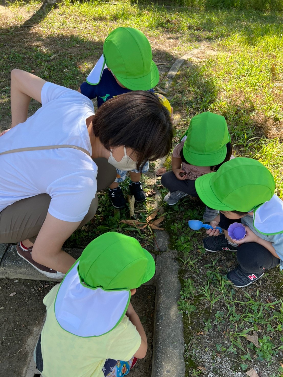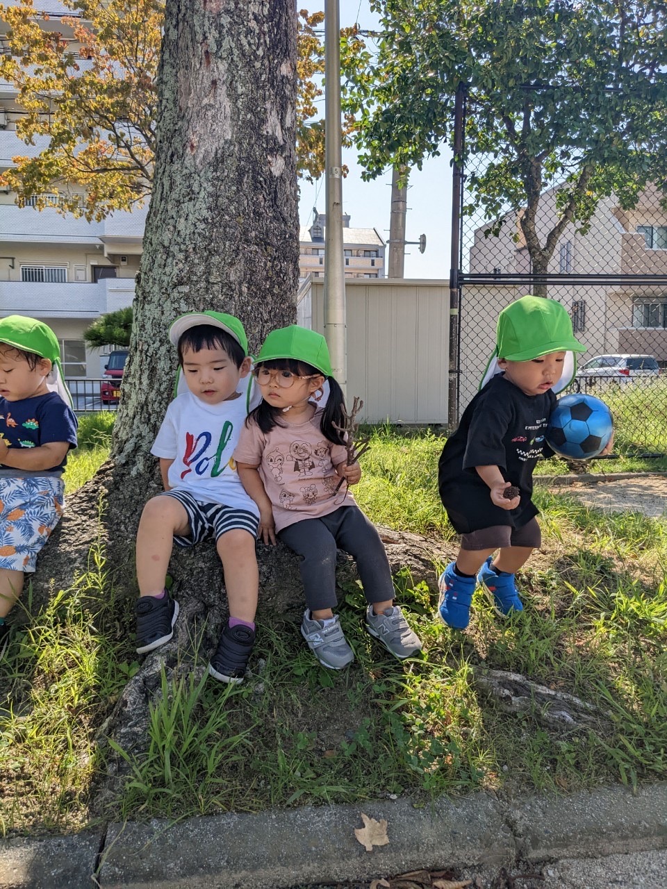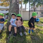 沢山動いて疲れたお友だちは木の近くに座って休憩していました😌