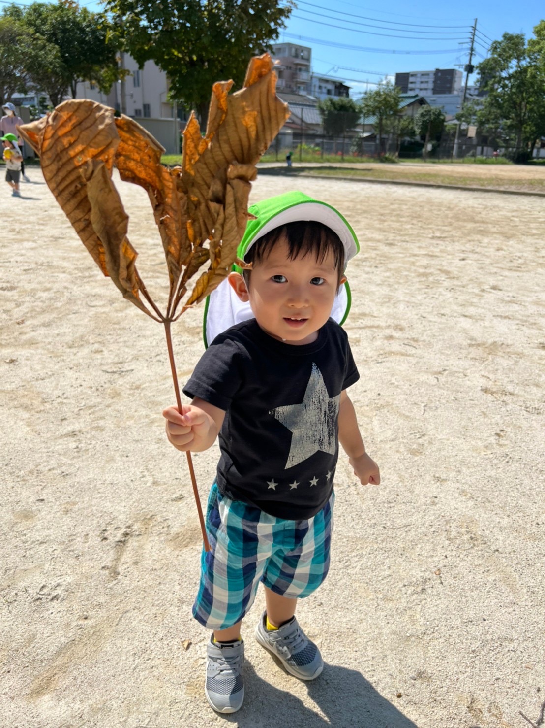 公園には、栗や大きな葉っぱもありました!