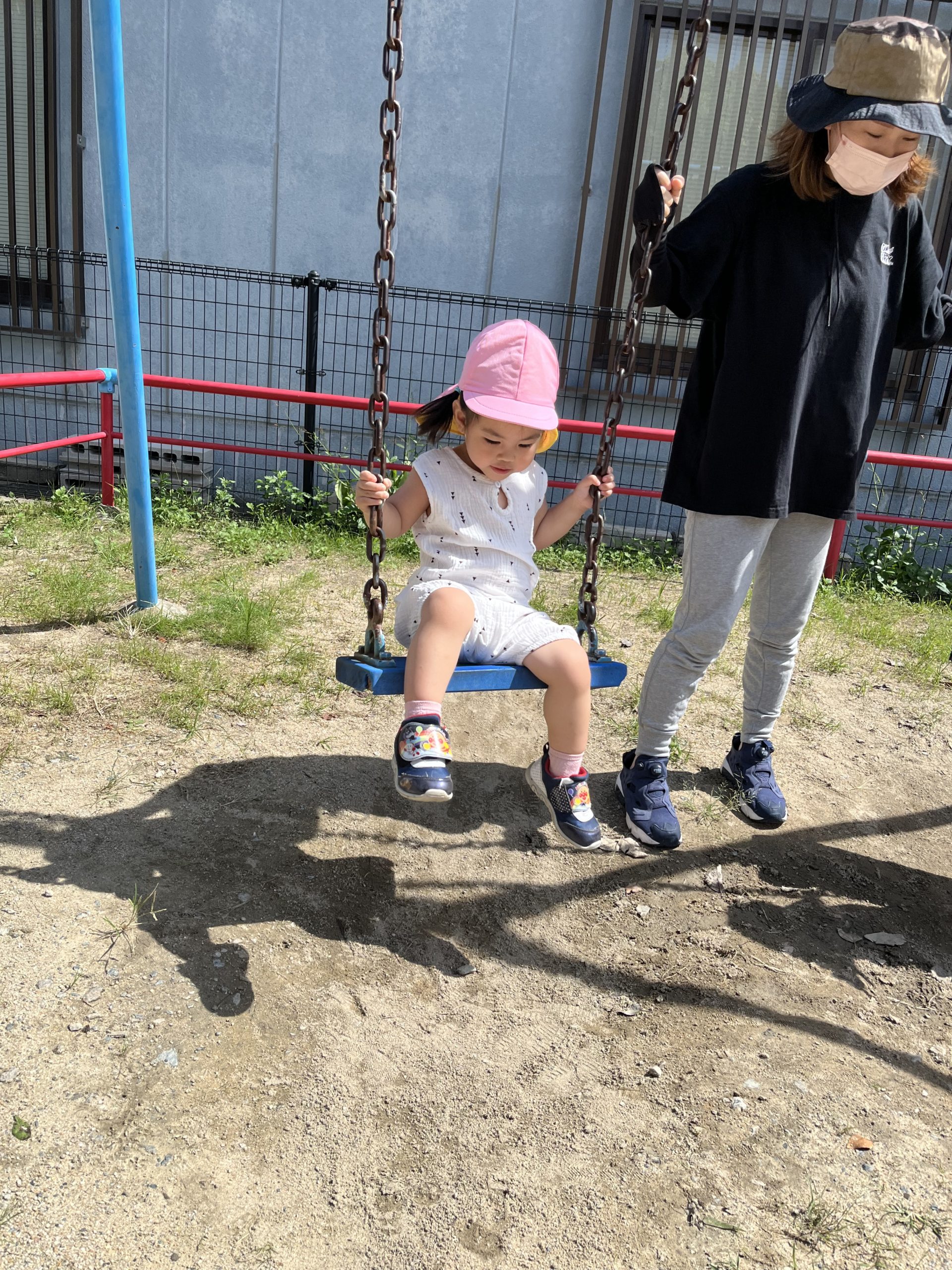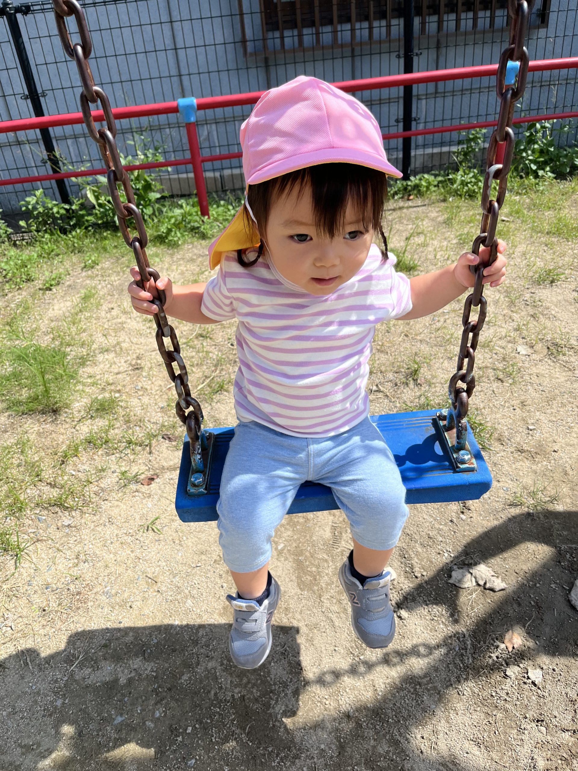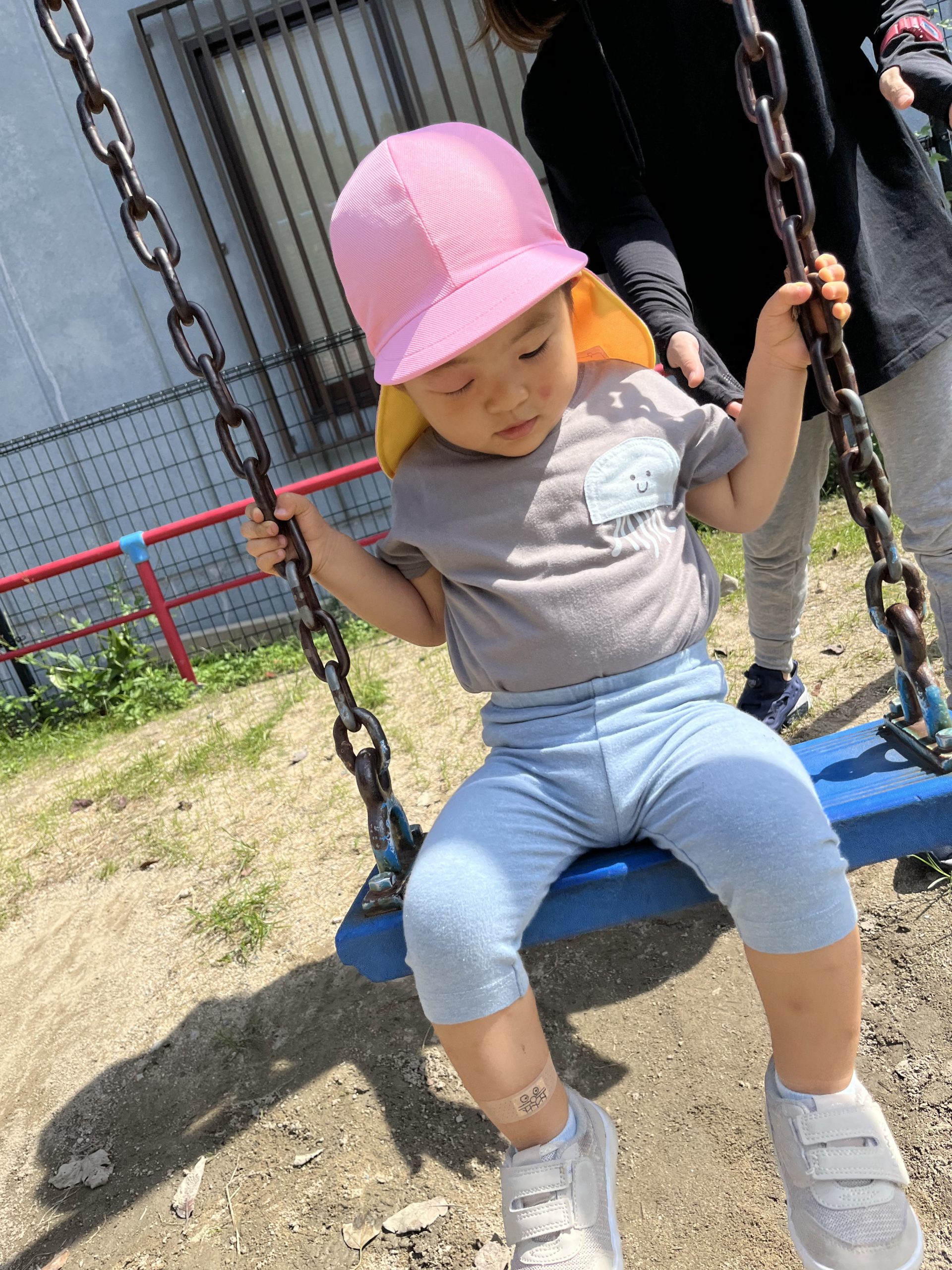 ぶらんこにも乗ったよ😊💓お友達が来ると順番をしっかり守って乗っていましたよ