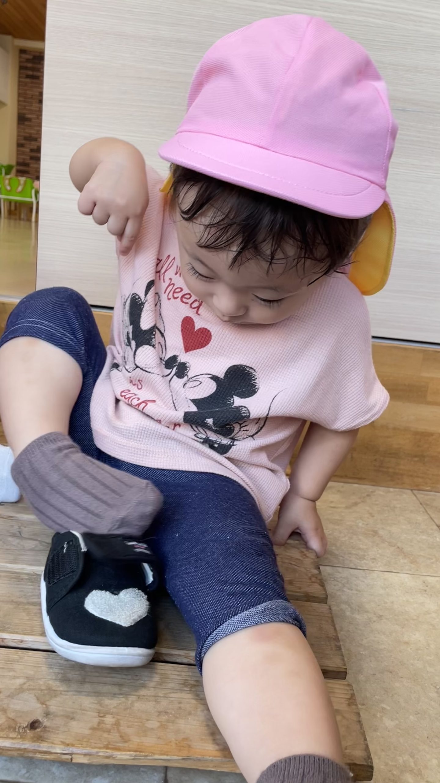 自分で靴に挑戦!!!頑張って履いてますよ😊