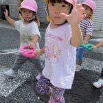横断歩道をしっかり手を挙げて渡っていましたよ!!