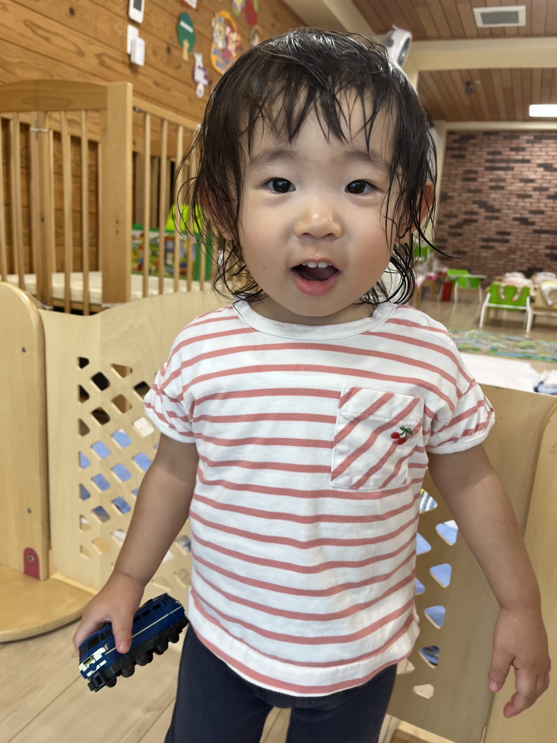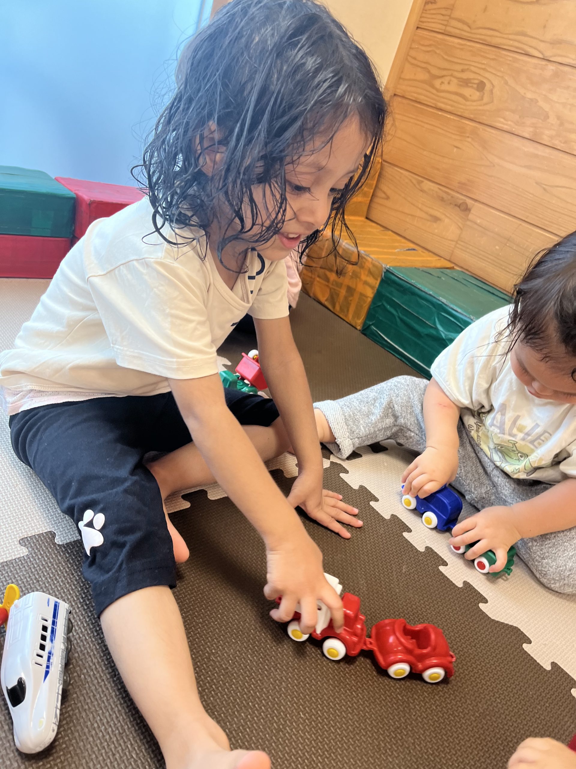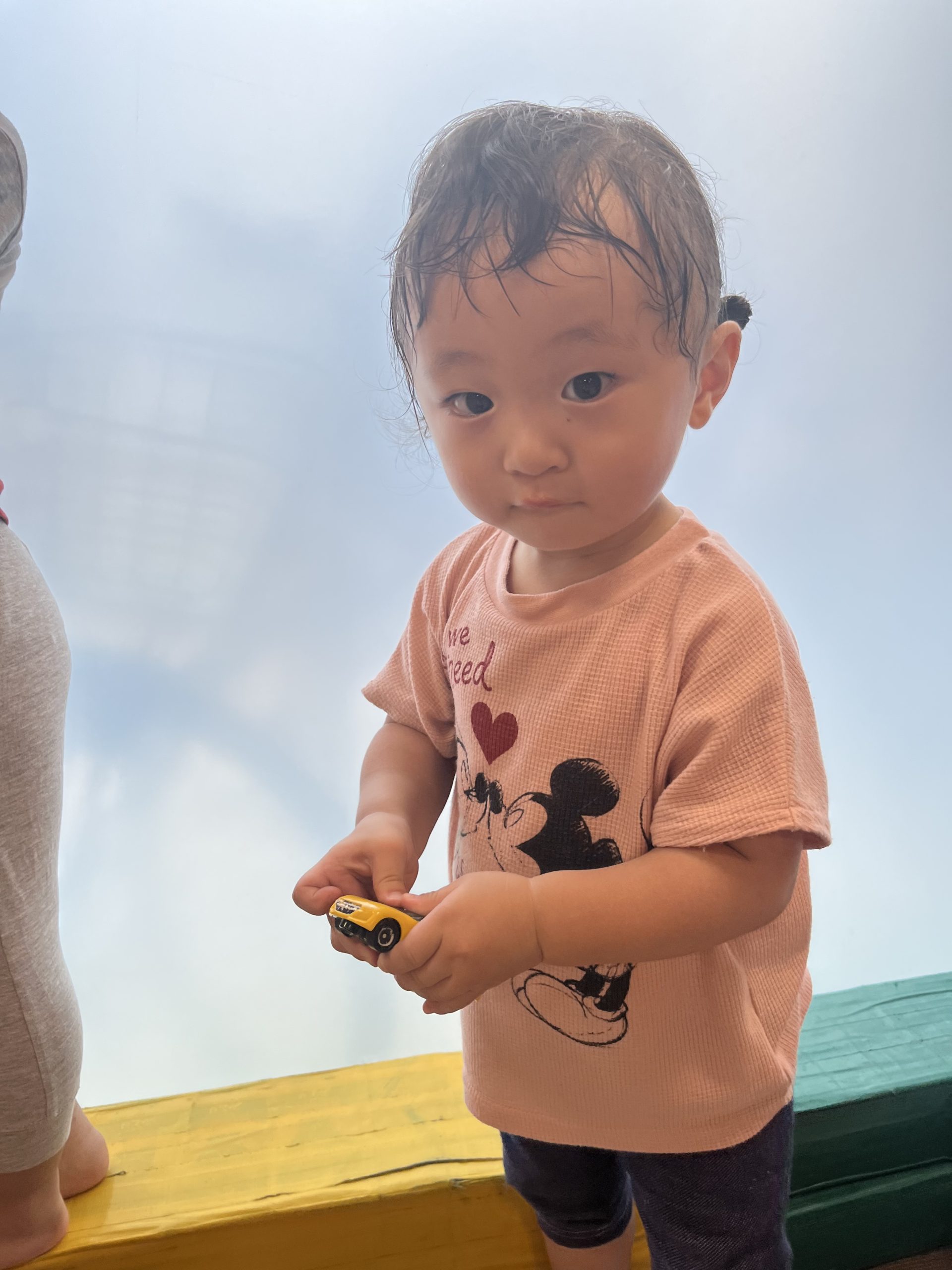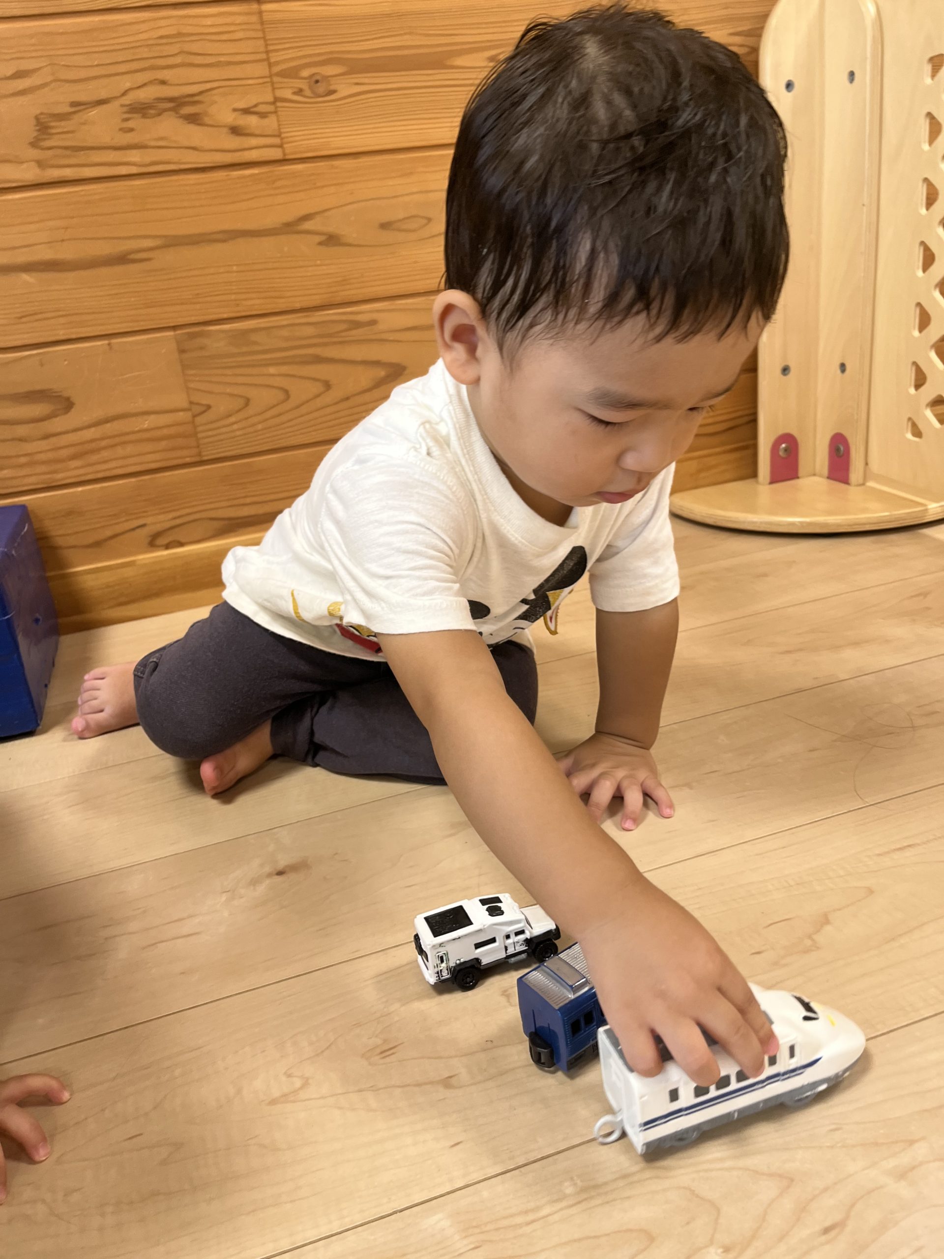 暑かったのでシャワーを浴びている間、車や新幹線で遊びました☺️❣️